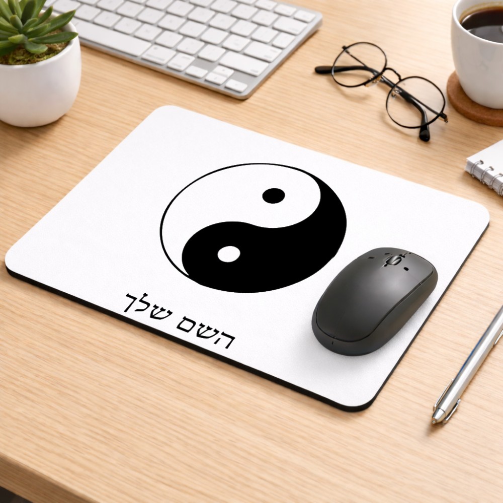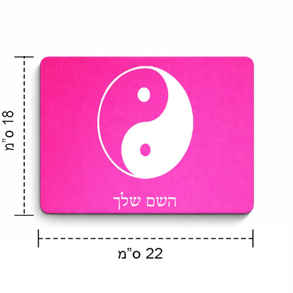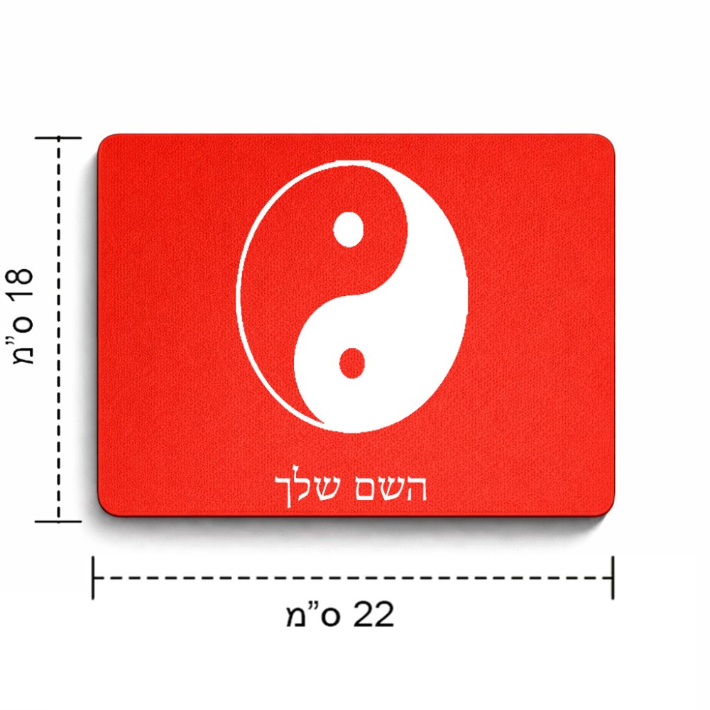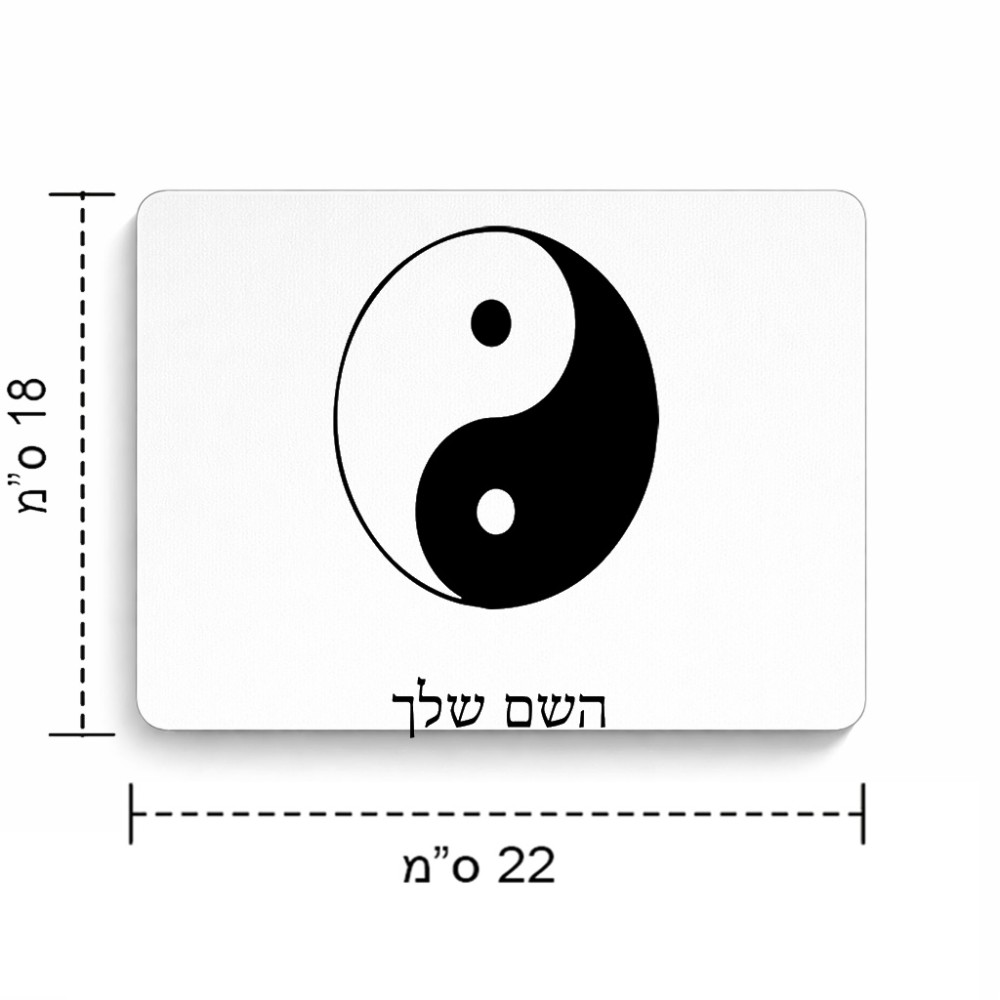 פד לעכבר בעיצוב אישי עם השם שלך בעיצוב סמל יינג יאנג גודל הפד 22 × 18 ס"מ. את השם המבוקש ניתן לציין בהזמנה, אם לא צויין אנחנו ניצור קשר לבירור.