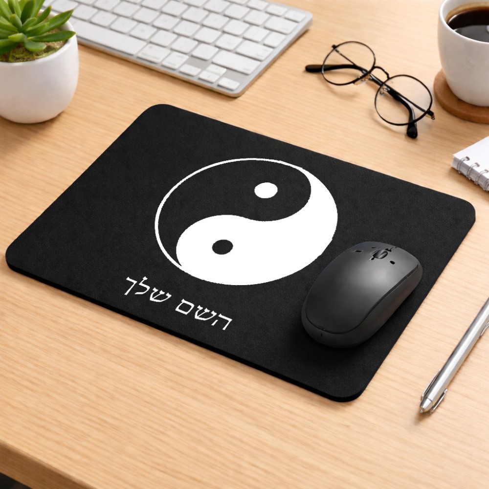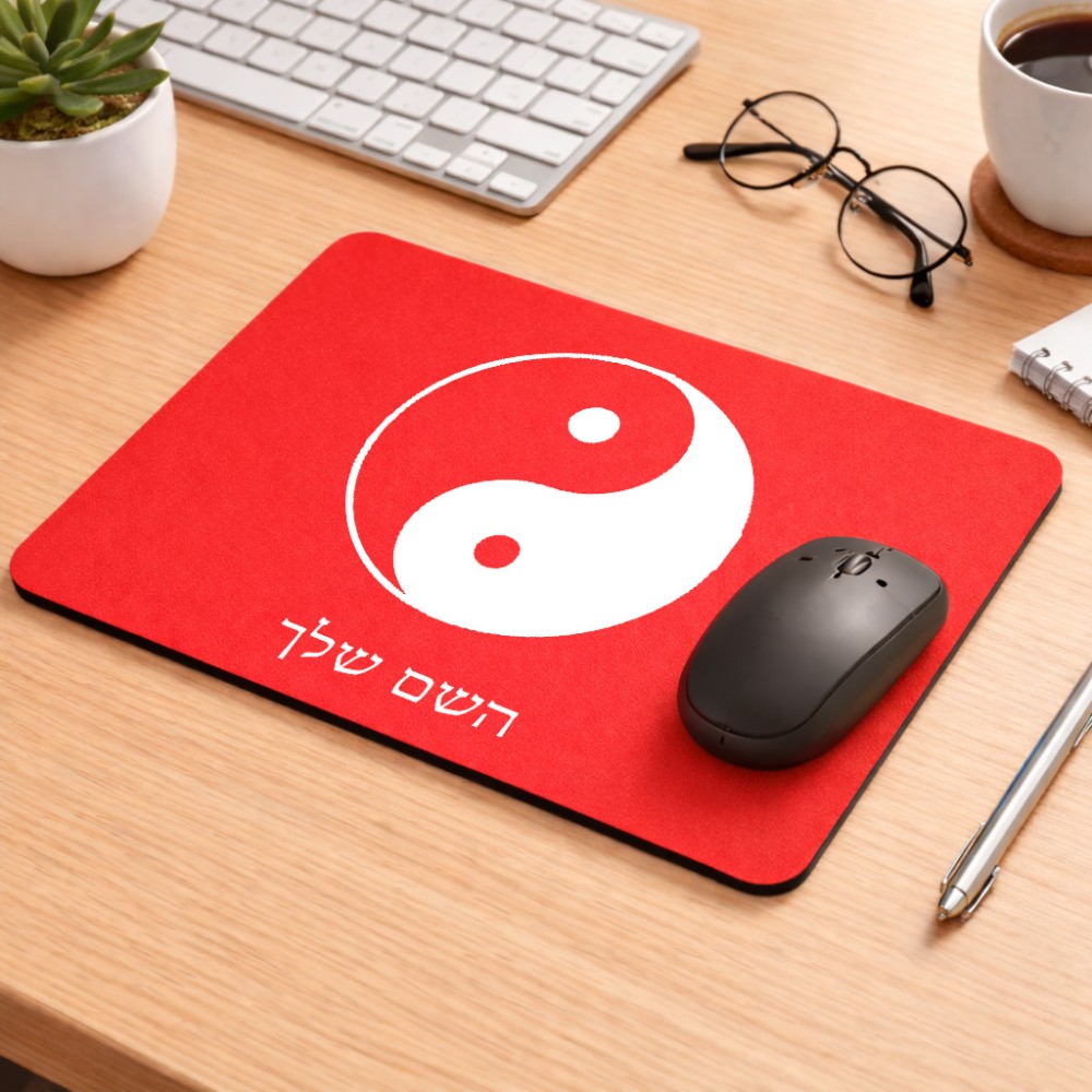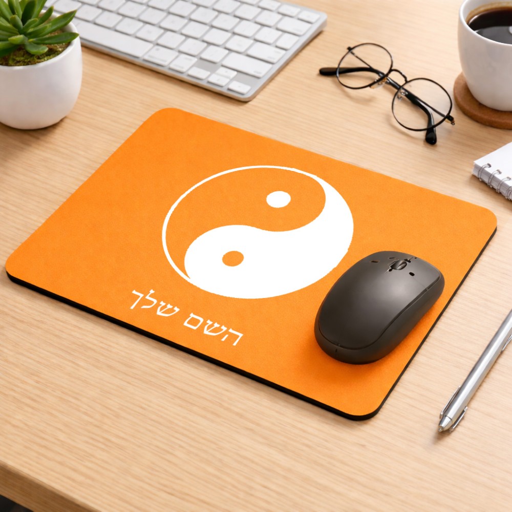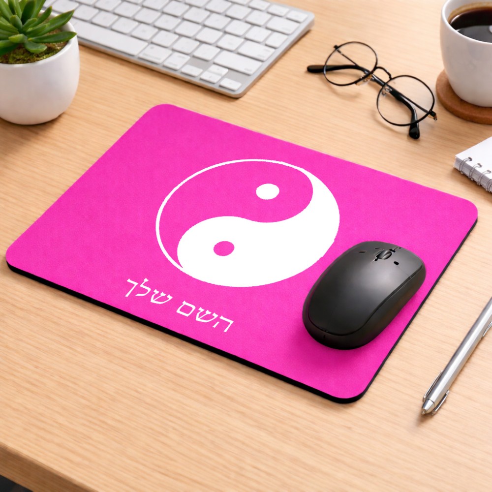 פד לעכבר בעיצוב אישי עם השם שלך בעיצוב סמל יינג יאנג גודל הפד 22 × 18 ס"מ. את השם המבוקש ניתן לציין בהזמנה, אם לא צויין אנחנו ניצור קשר לבירור.