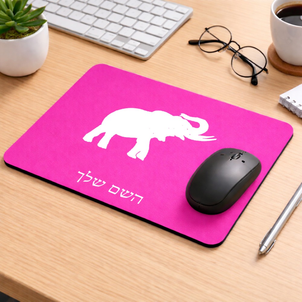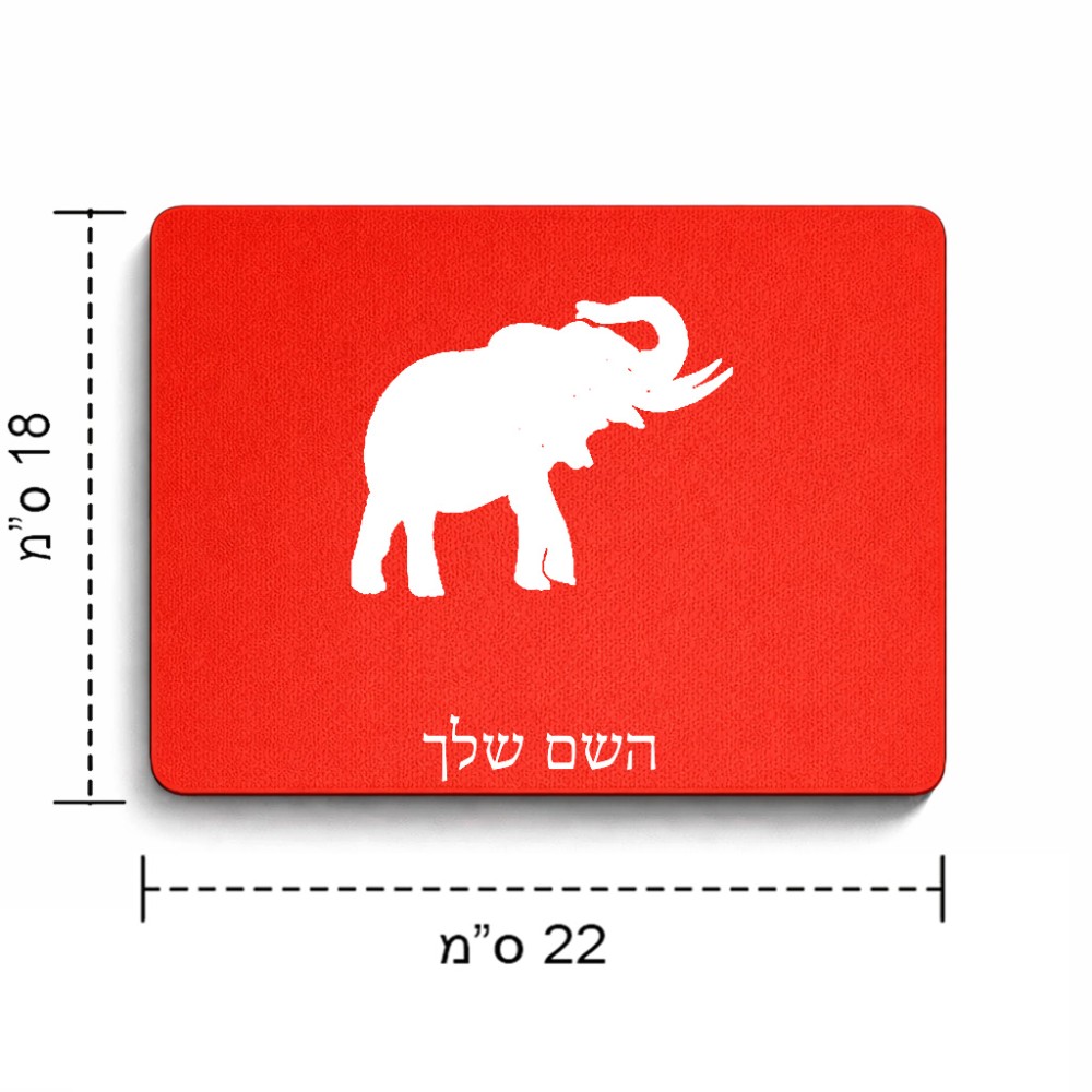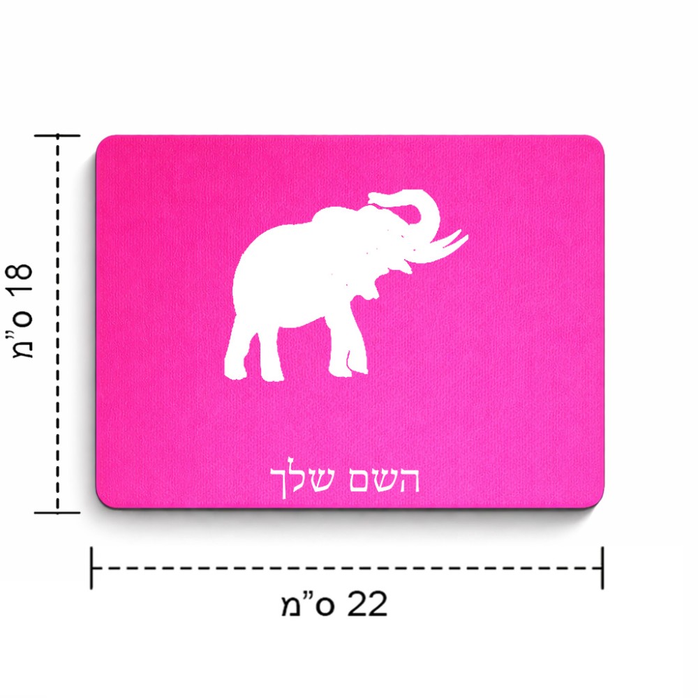 פד לעכבר בעיצוב אישי עם השם שלך בעיצוב פיל גודל הפד 22 × 18 ס"מ. את השם המבוקש ניתן לציין בהזמנה, אם לא צויין אנחנו ניצור קשר לבירור.