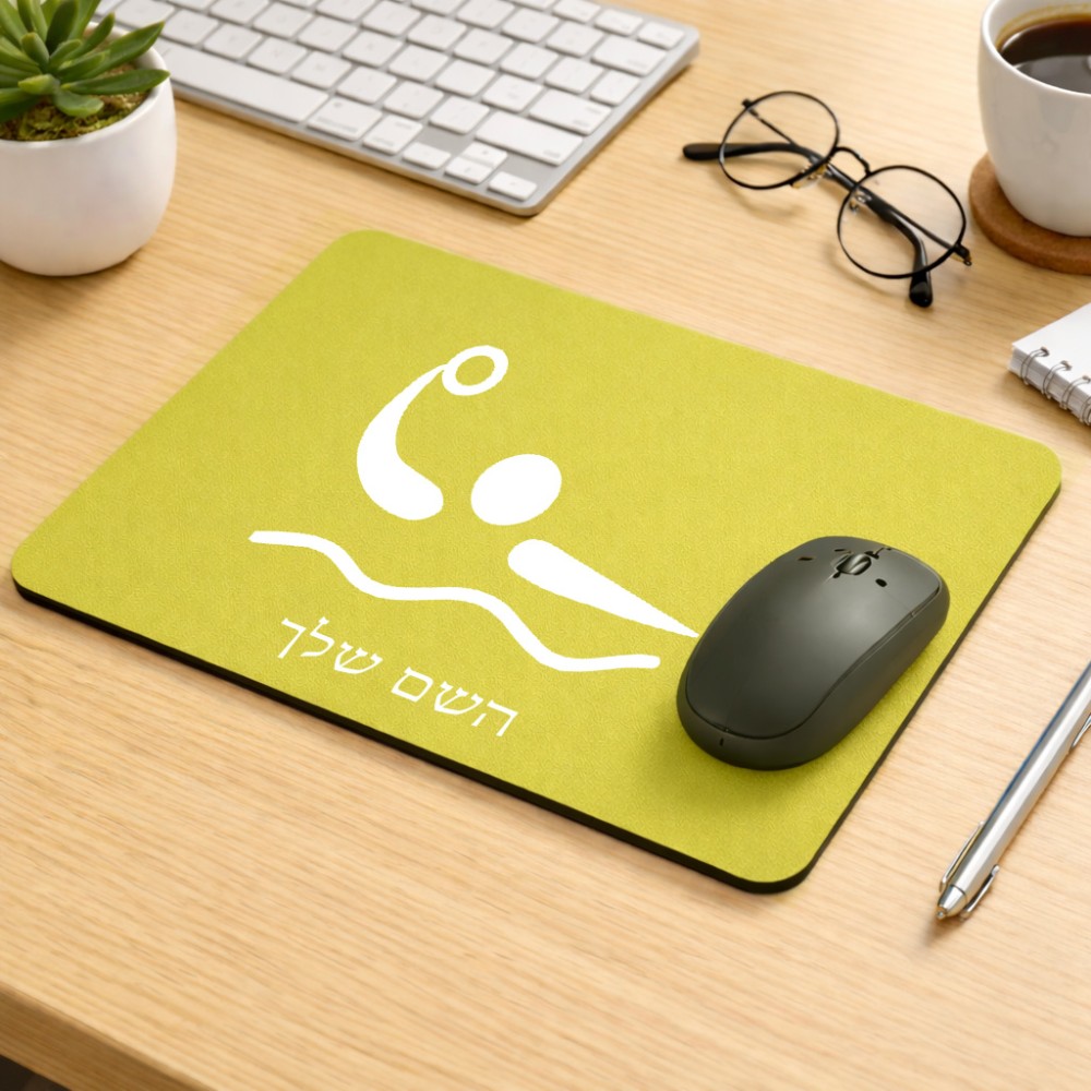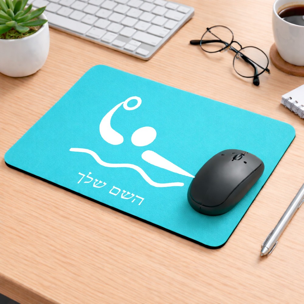 פד לעכבר בעיצוב אישי עם השם שלך בעיצוב כדור מים אולימפי גודל הפד 22 × 18 ס"מ. את השם המבוקש ניתן לציין בהזמנה, אם לא צויין אנחנו ניצור קשר לבירור.