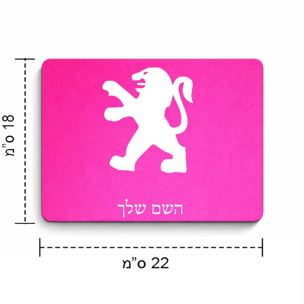 פד לעכבר בעיצוב אישי עם השם שלך בעיצוב פיג'ו גודל הפד 22 × 18 ס"מ. את השם המבוקש ניתן לציין בהזמנה, אם לא צויין אנחנו ניצור קשר לבירור.