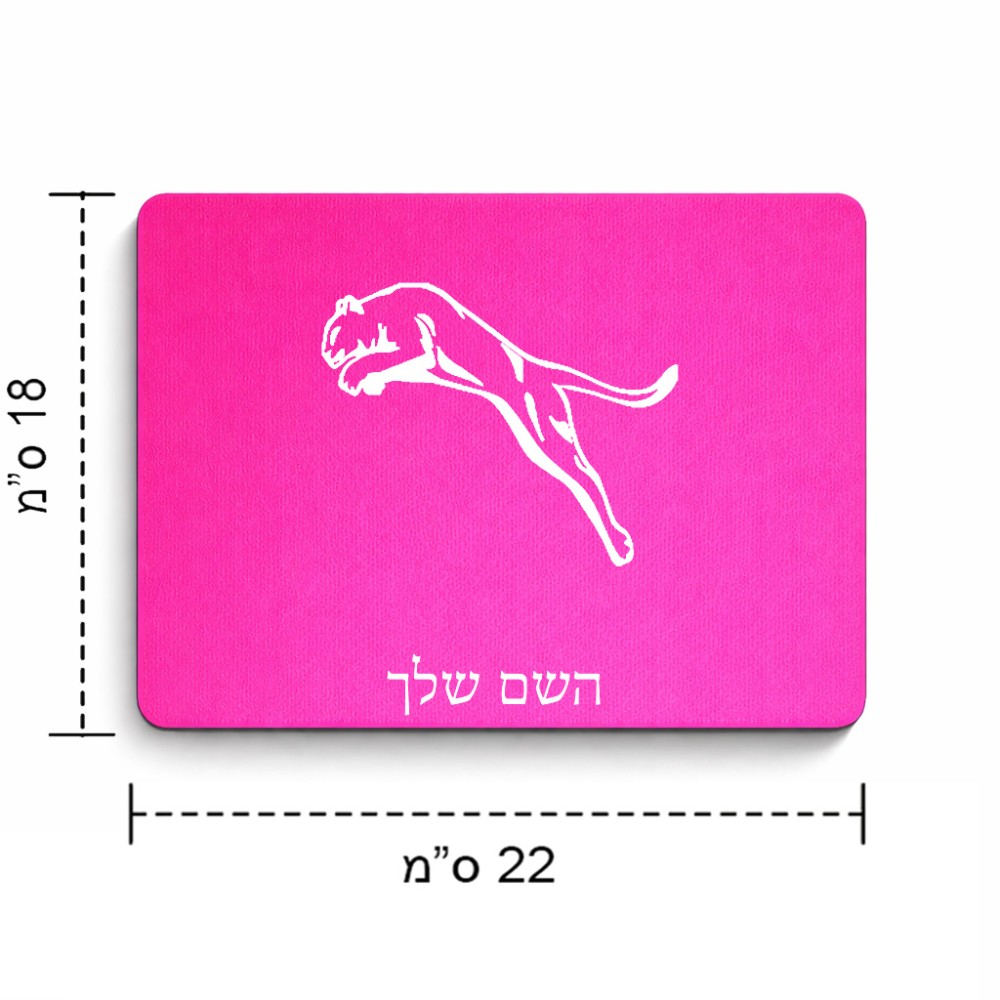 פד לעכבר בעיצוב אישי עם השם שלך בעיצוב פומה גודל הפד 22 × 18 ס"מ. את השם המבוקש ניתן לציין בהזמנה, אם לא צויין אנחנו ניצור קשר לבירור.