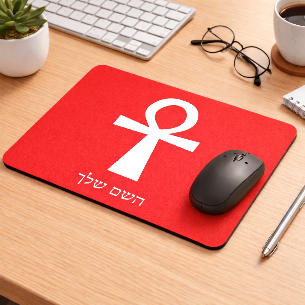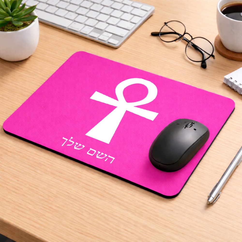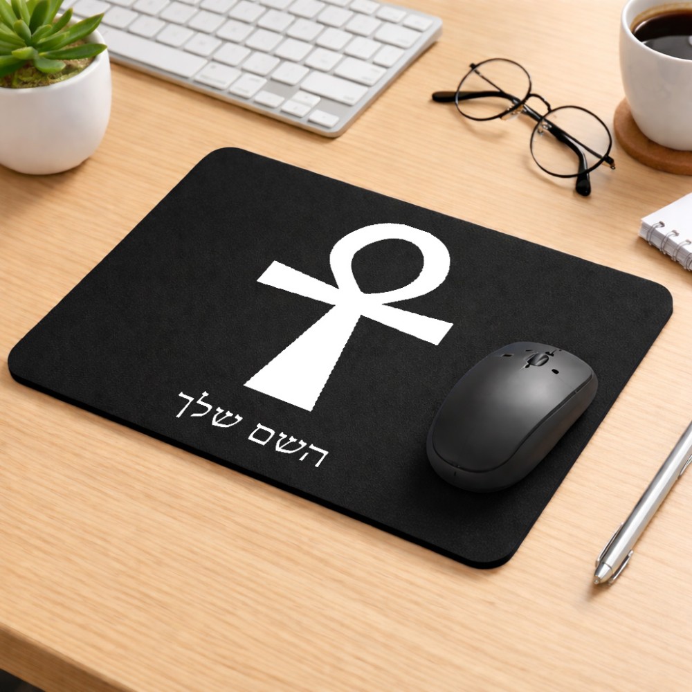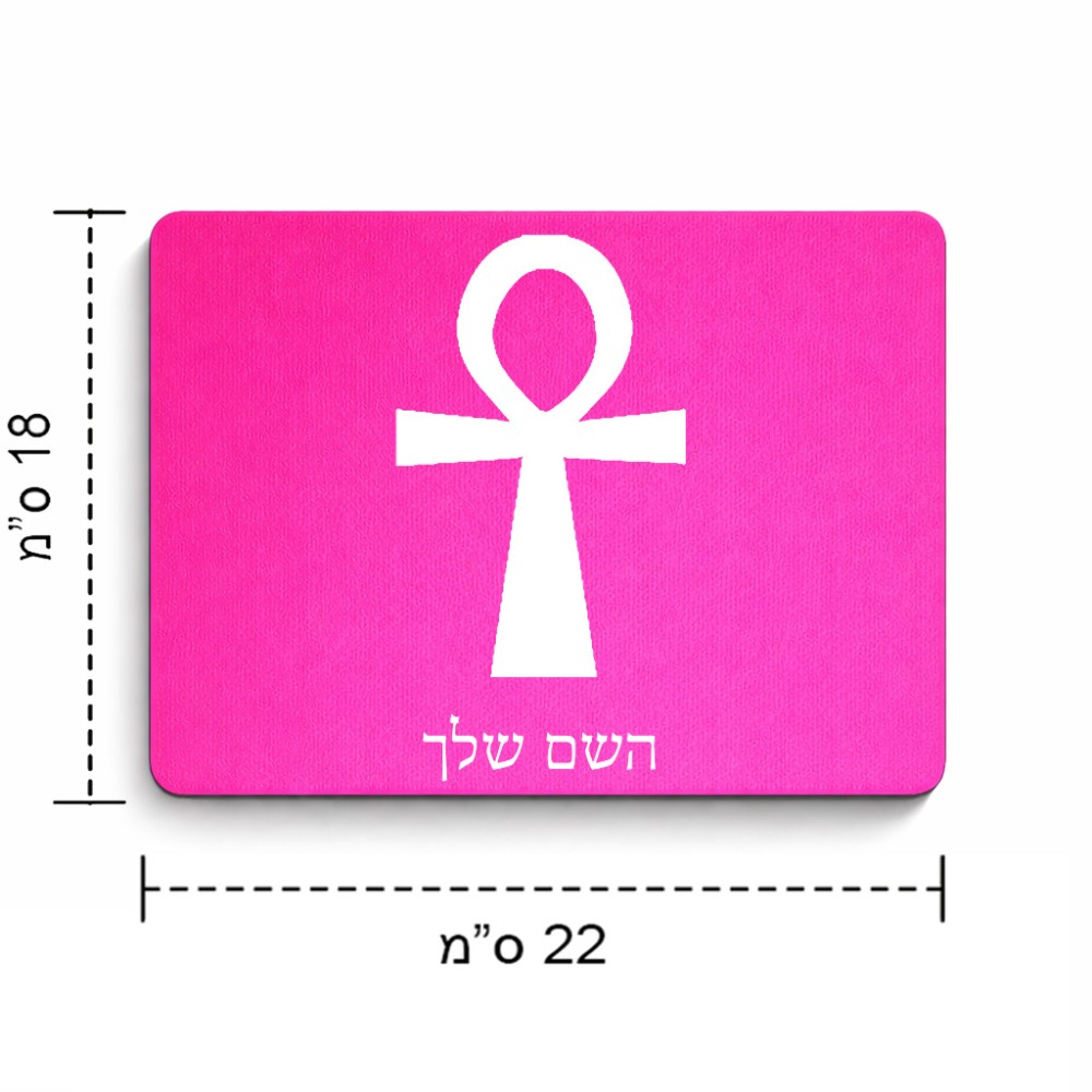 פד לעכבר בעיצוב אישי עם השם שלך בעיצוב אנק - מפתח החיים המצרי גודל הפד 22 × 18 ס"מ