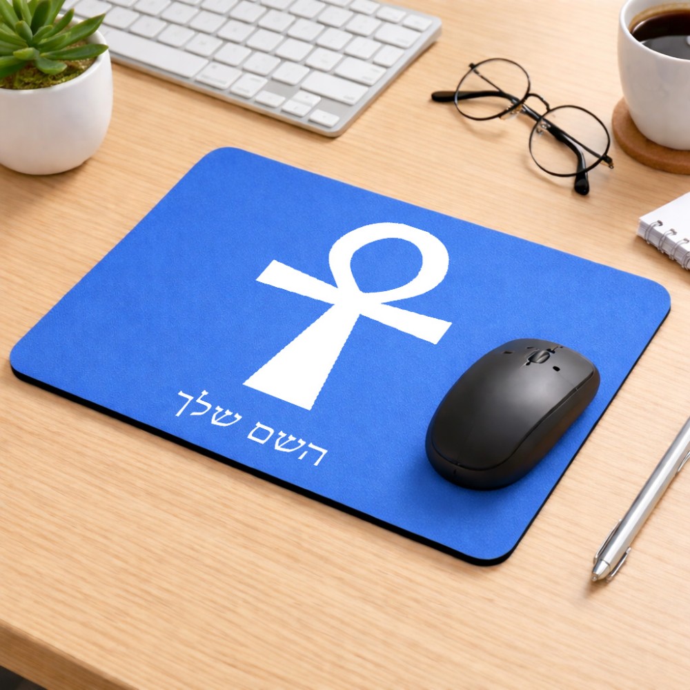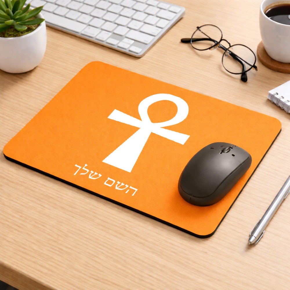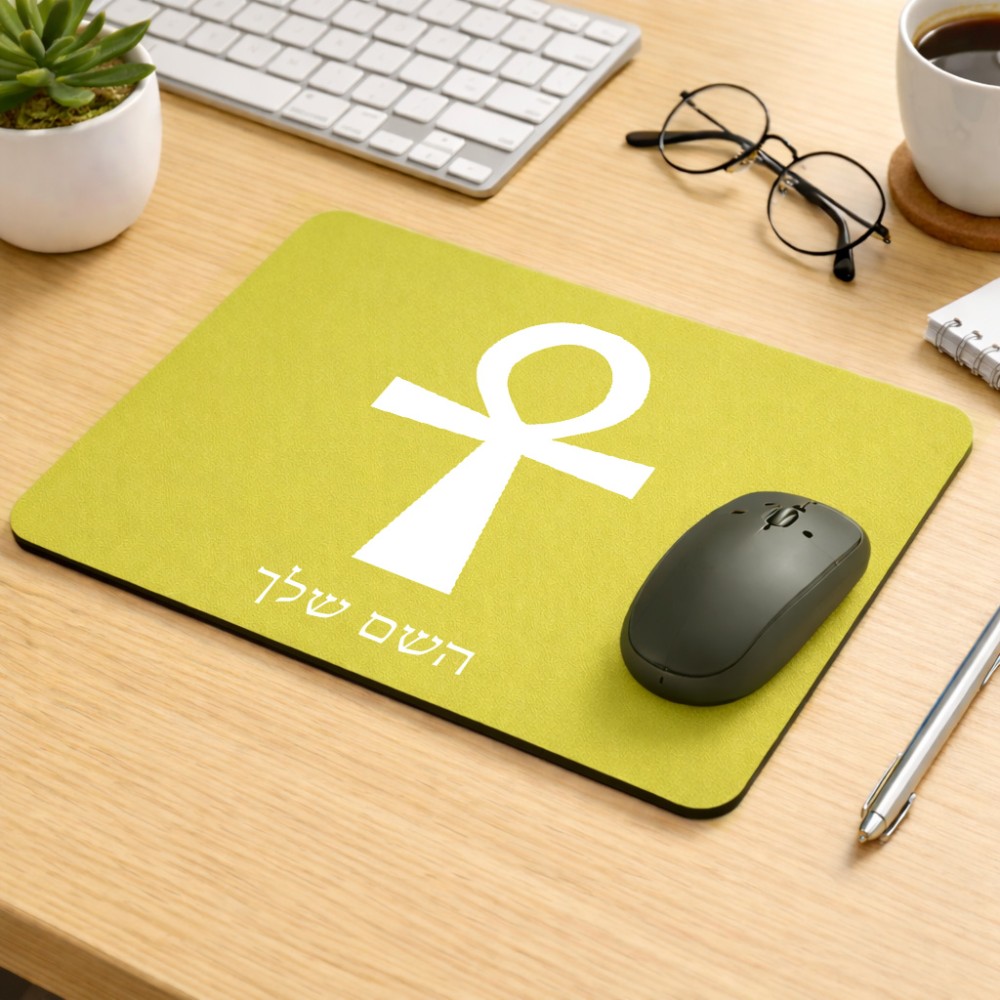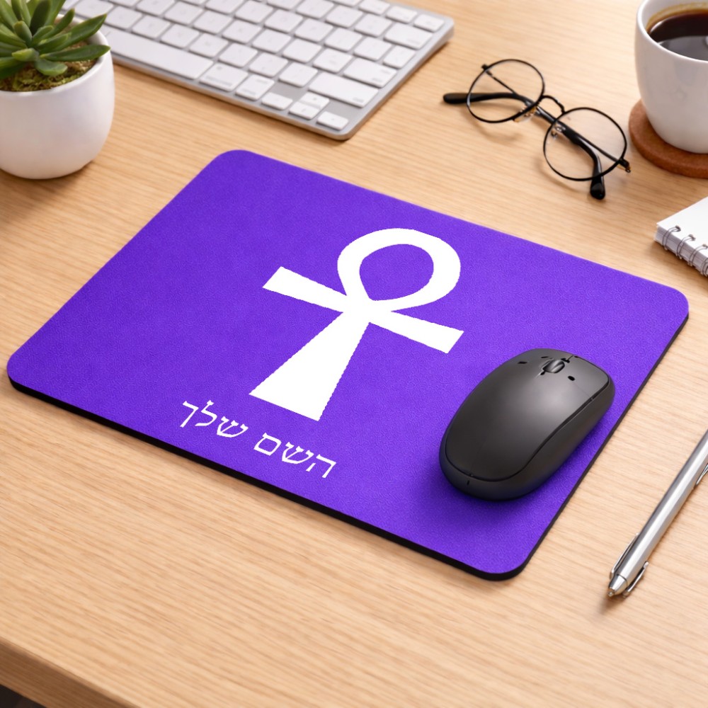 פד לעכבר בעיצוב אישי עם השם שלך בעיצוב אנק - מפתח החיים המצרי גודל הפד 22 × 18 ס"מ