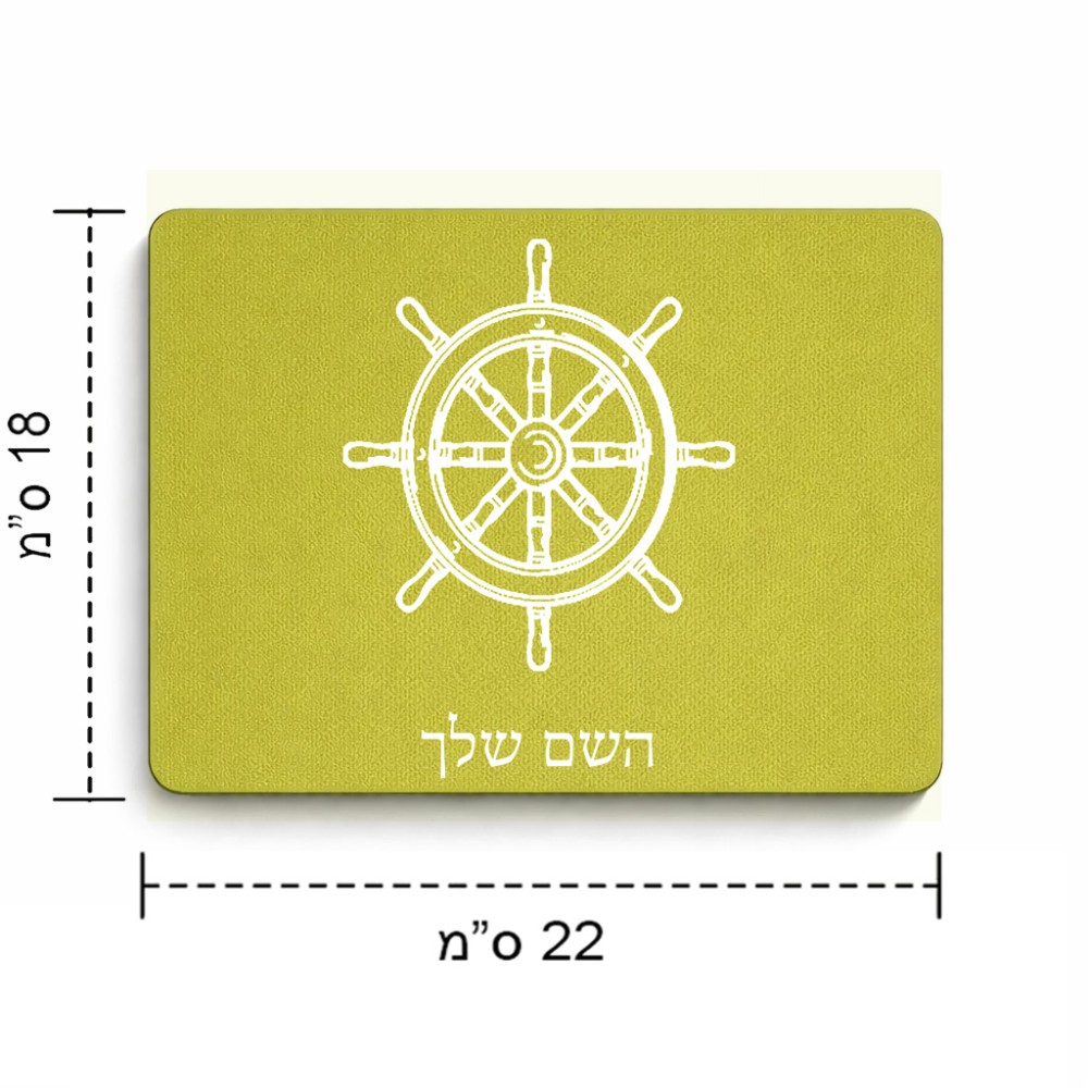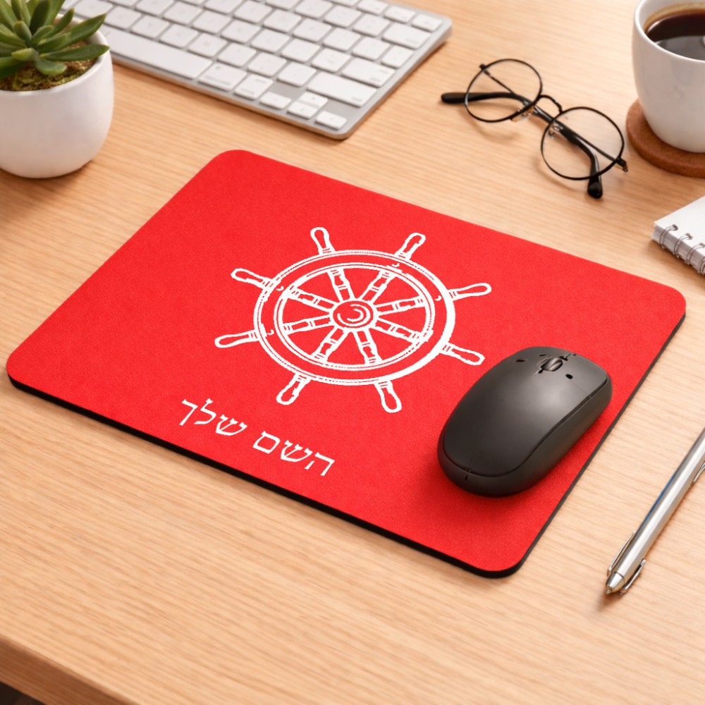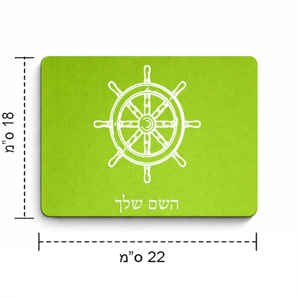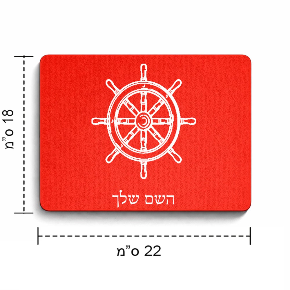 פד לעכבר בעיצוב אישי עם השם שלך בעיצוב הגה - קפטן - ים גודל הפד 22 × 18 ס"מ. את השם המבוקש ניתן לציין בהזמנה, אם לא צויין אנחנו ניצור קשר לבירור.