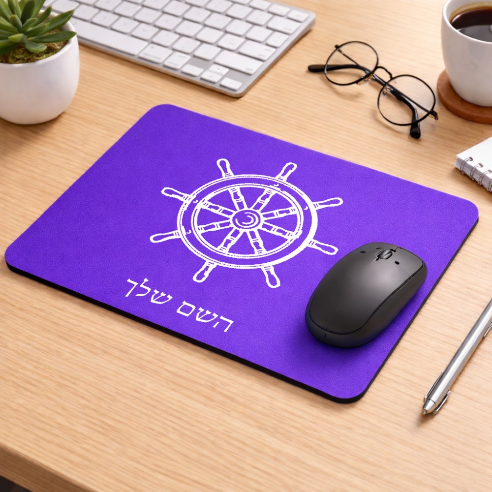 פד לעכבר בעיצוב אישי עם השם שלך בעיצוב הגה - קפטן - ים גודל הפד 22 × 18 ס"מ