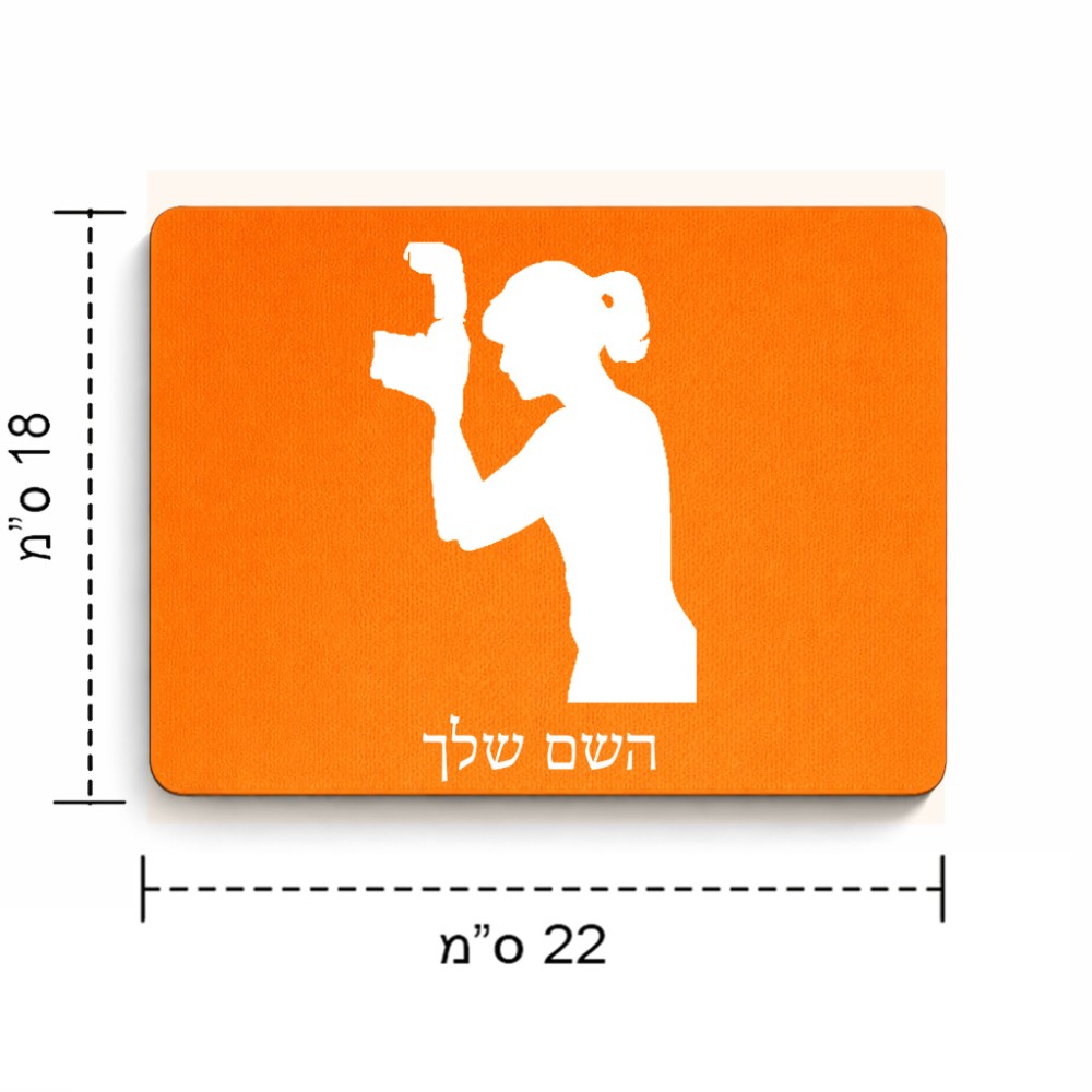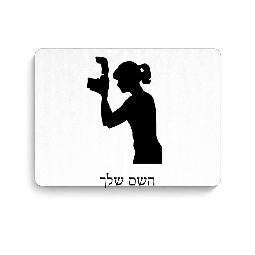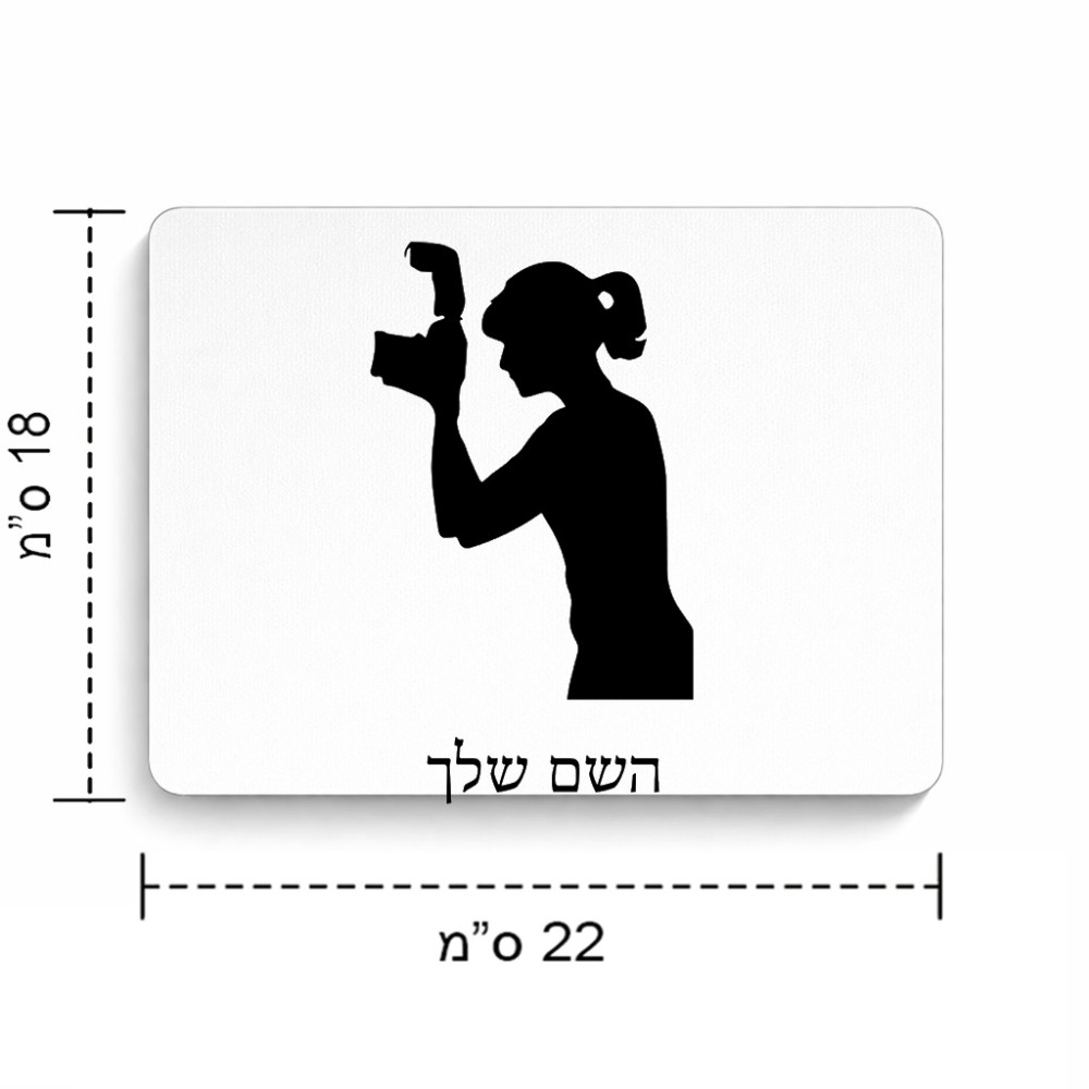 פד לעכבר בעיצוב אישי עם השם שלך בעיצוב צלמת - אישה גודל הפד 22 × 18 ס"מ. את השם המבוקש ניתן לציין בהזמנה, אם לא צויין אנחנו ניצור קשר לבירור.