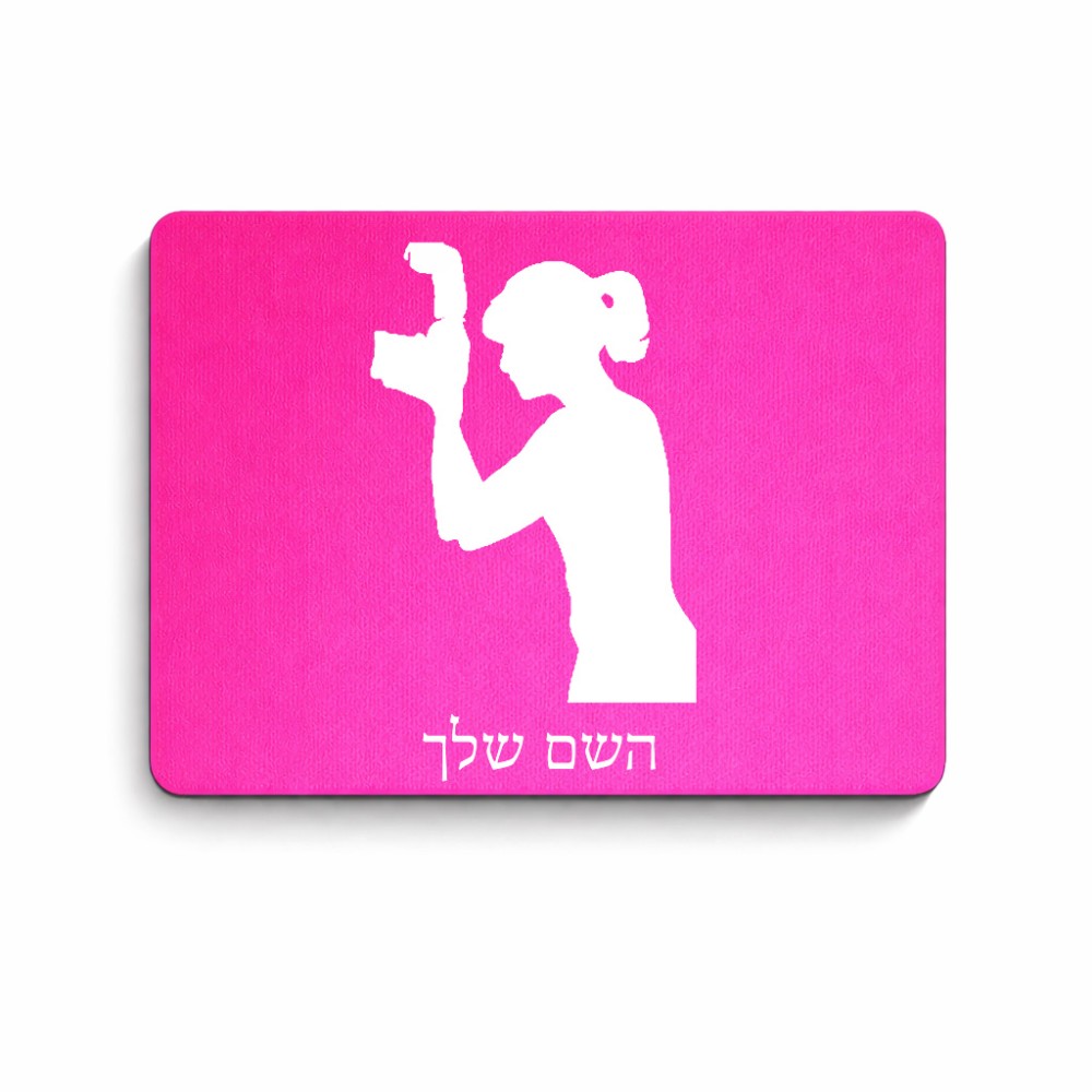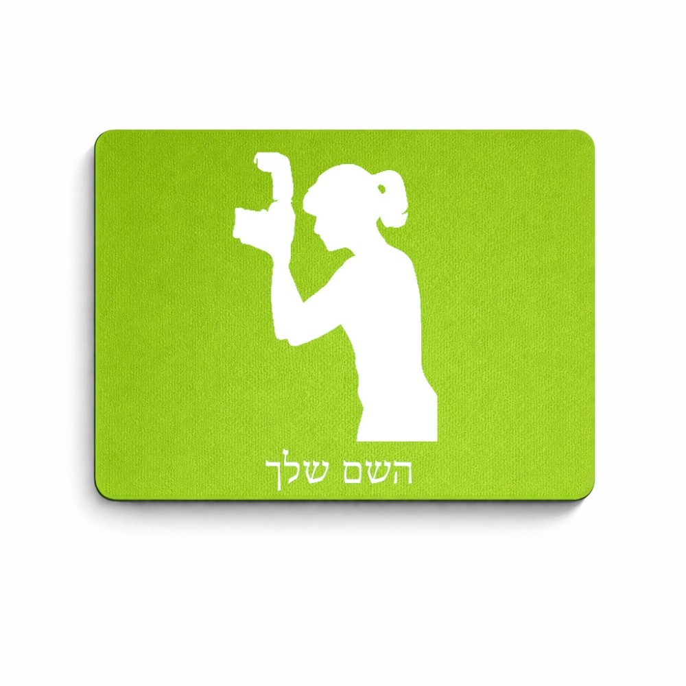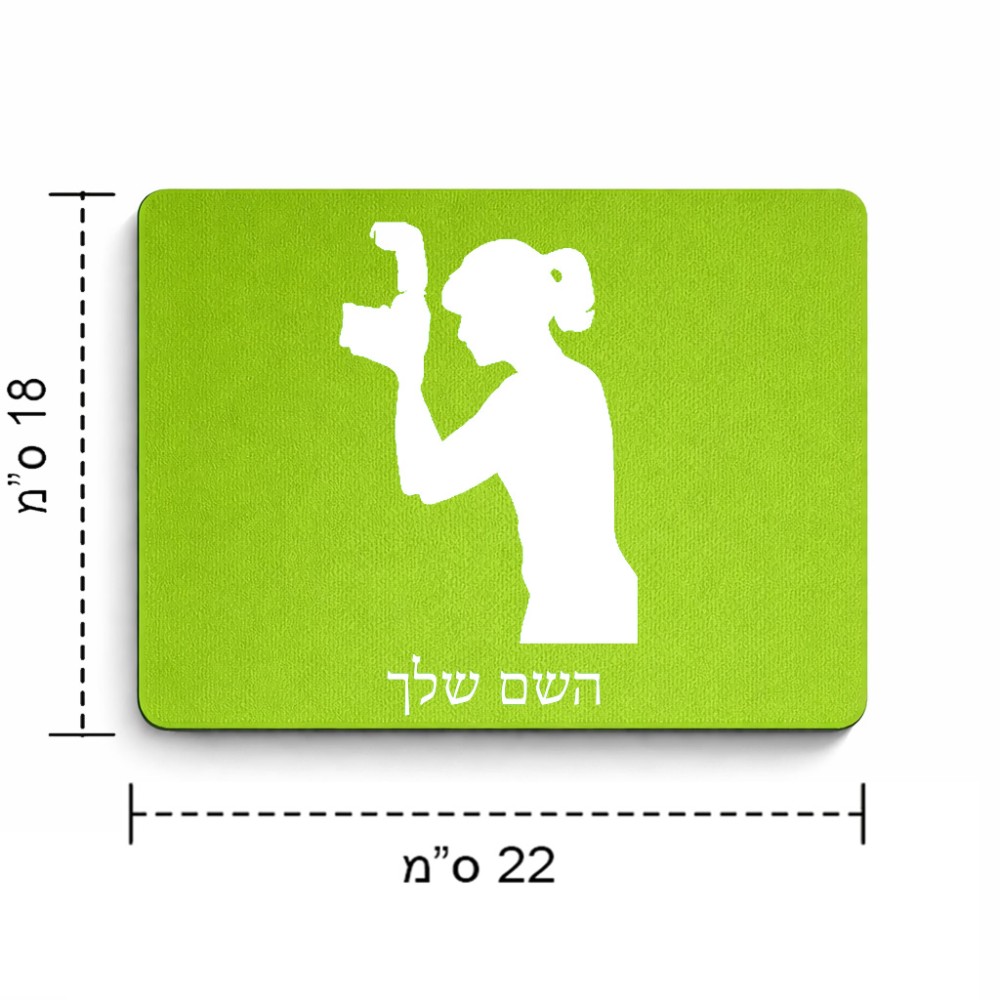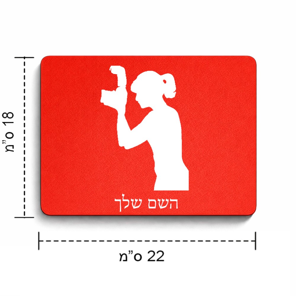פד לעכבר בעיצוב אישי עם השם שלך בעיצוב צלמת - אישה גודל הפד 22 × 18 ס"מ. את השם המבוקש ניתן לציין בהזמנה, אם לא צויין אנחנו ניצור קשר לבירור.