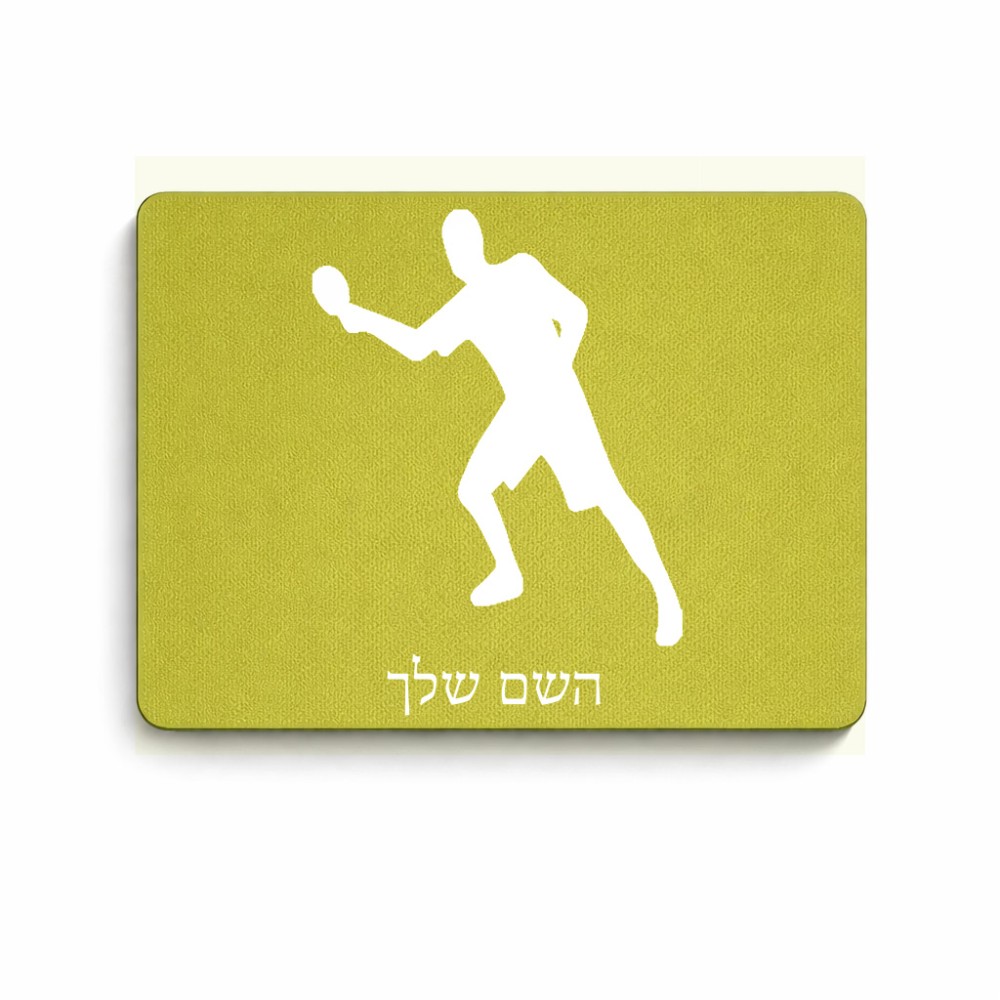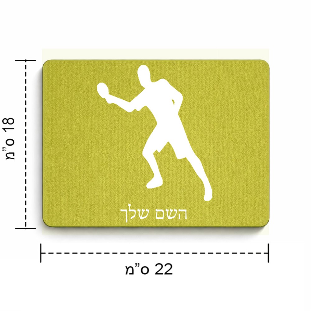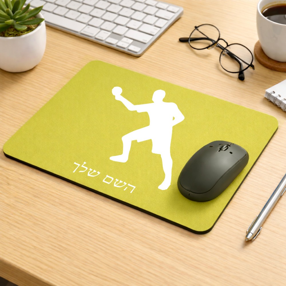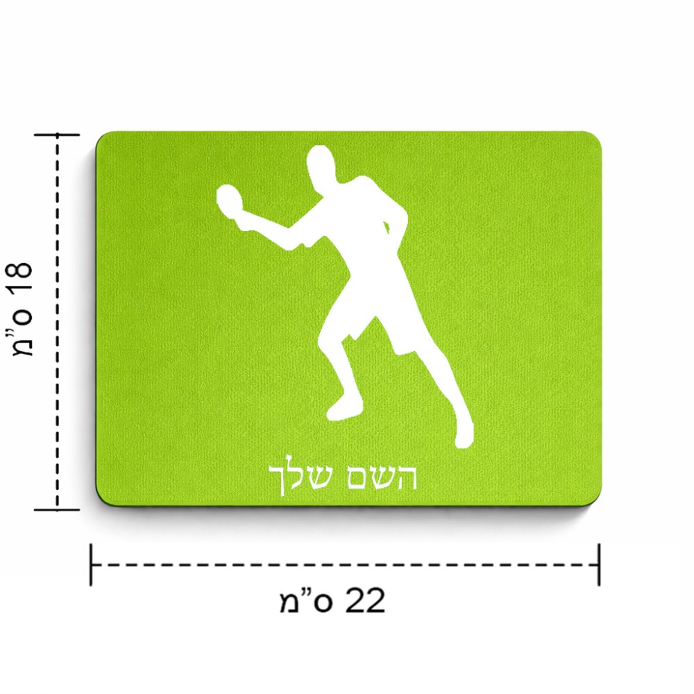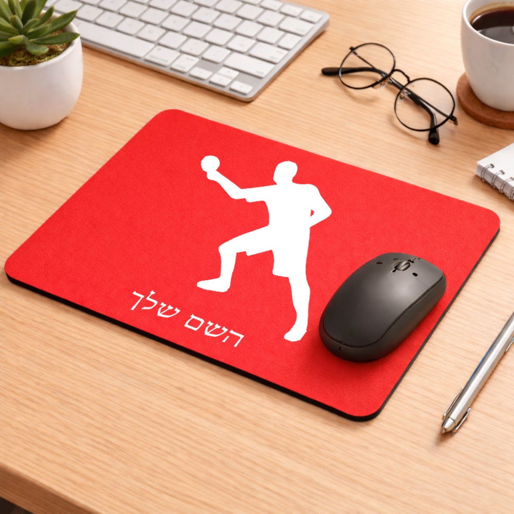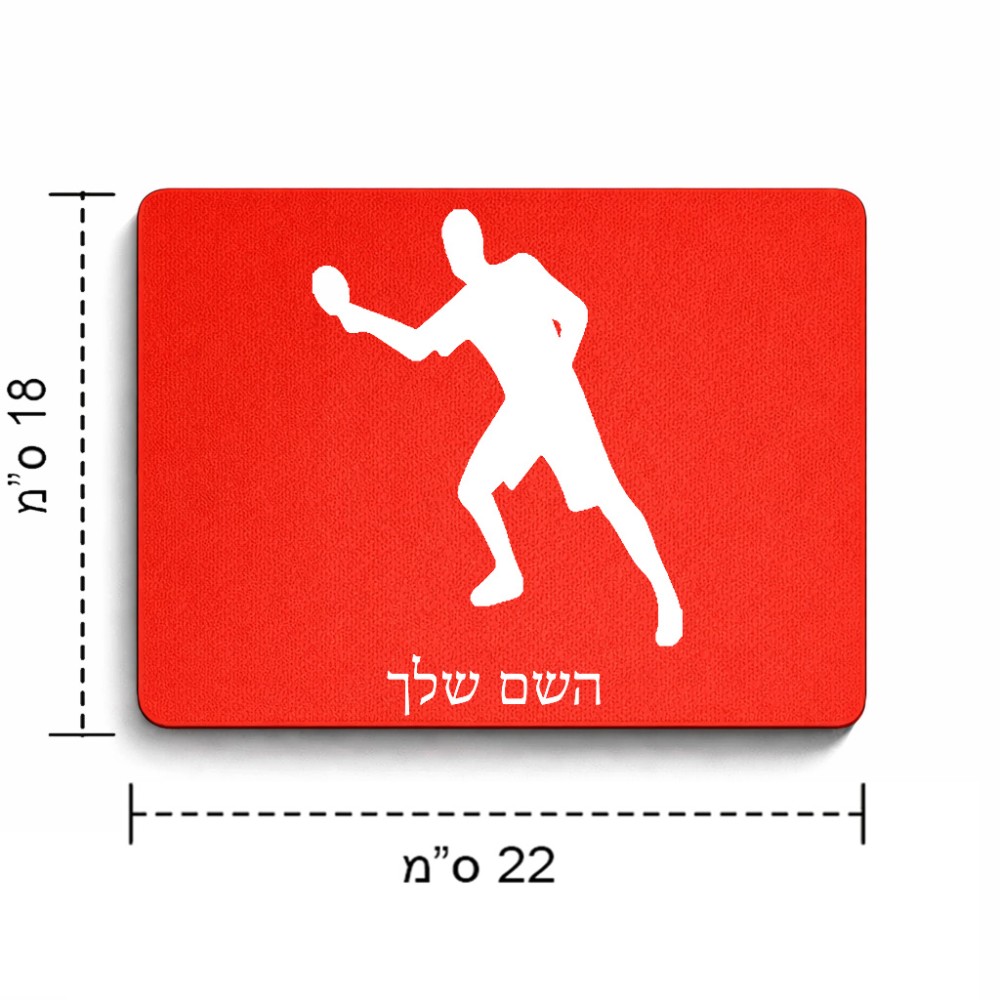 פד לעכבר בעיצוב אישי עם השם שלך בעיצוב שחקן פינג פונג גודל הפד 22 × 18 ס"מ. את השם המבוקש ניתן לציין בהזמנה, אם לא צויין אנחנו ניצור קשר לבירור.