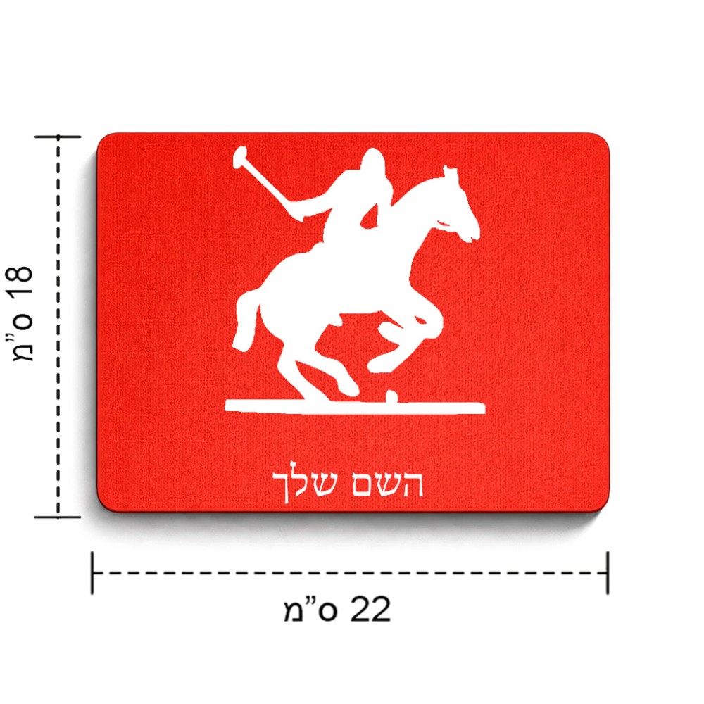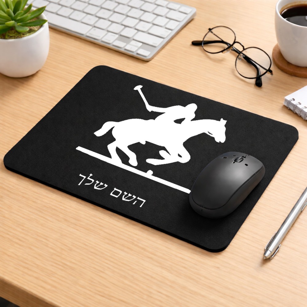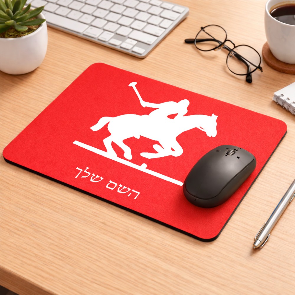 פד לעכבר בעיצוב אישי עם השם שלך בעיצוב שחקן פולו - סוס גודל הפד 22 × 18 ס"מ. את השם המבוקש ניתן לציין בהזמנה, אם לא צויין אנחנו ניצור קשר לבירור.