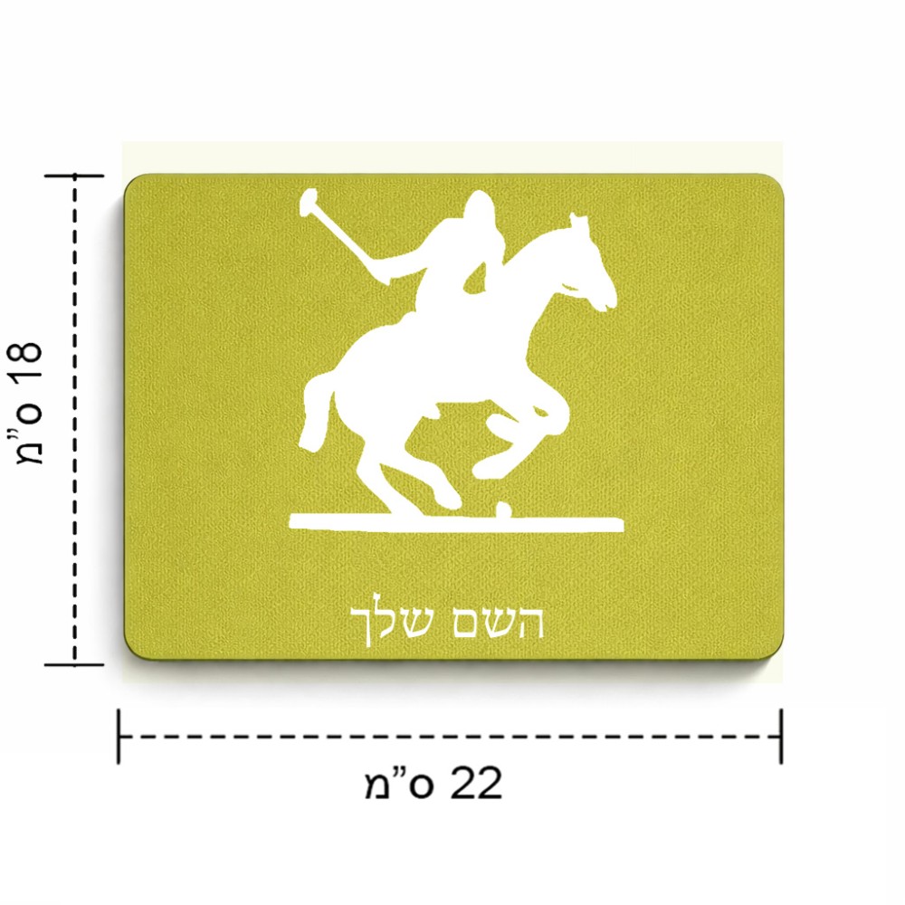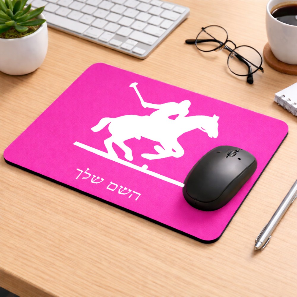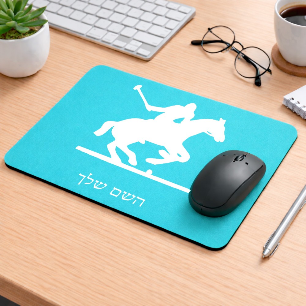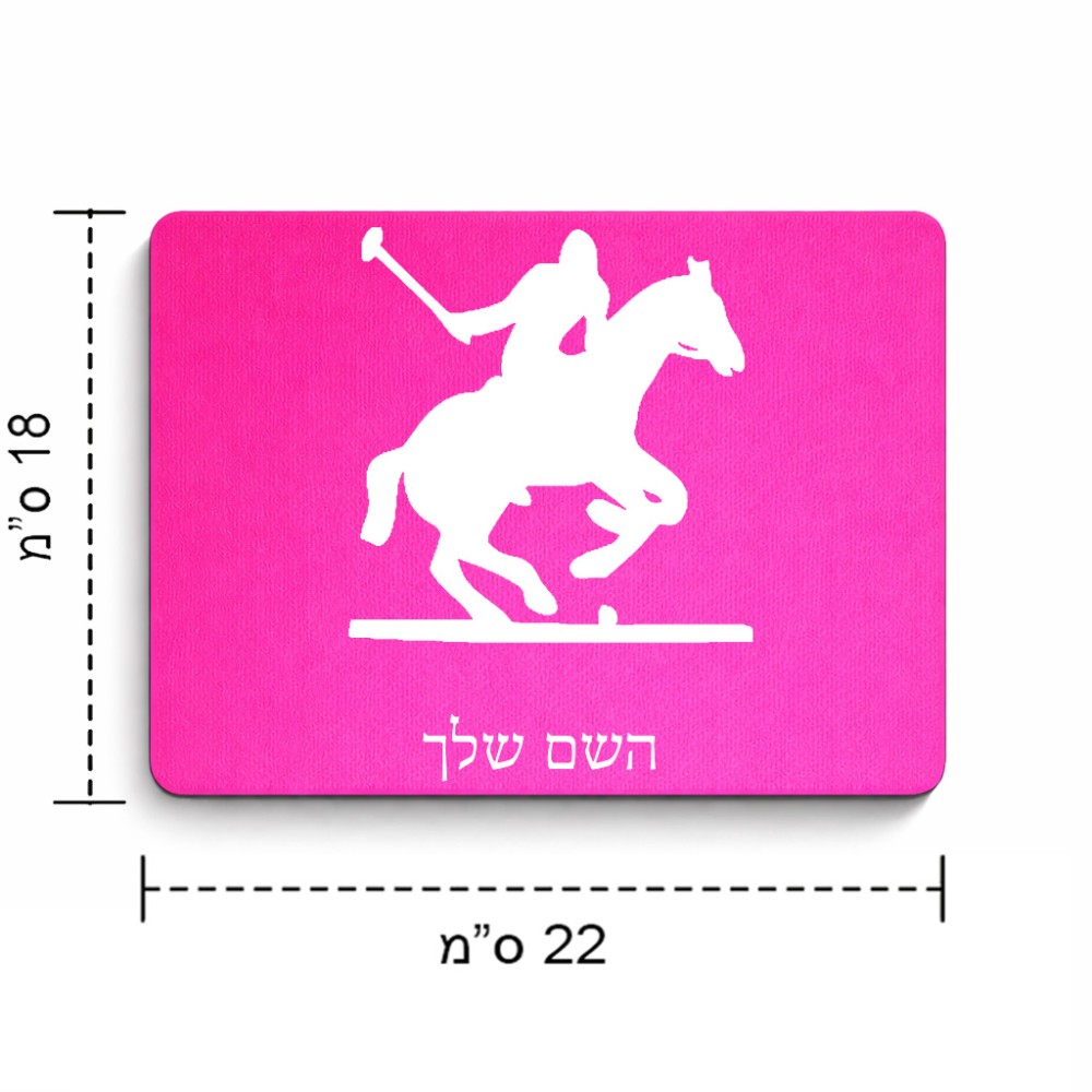 פד לעכבר בעיצוב אישי עם השם שלך בעיצוב שחקן פולו - סוס גודל הפד 22 × 18 ס"מ. את השם המבוקש ניתן לציין בהזמנה, אם לא צויין אנחנו ניצור קשר לבירור.