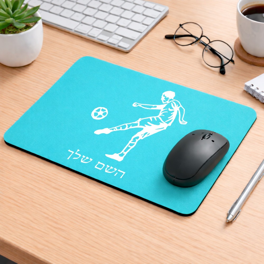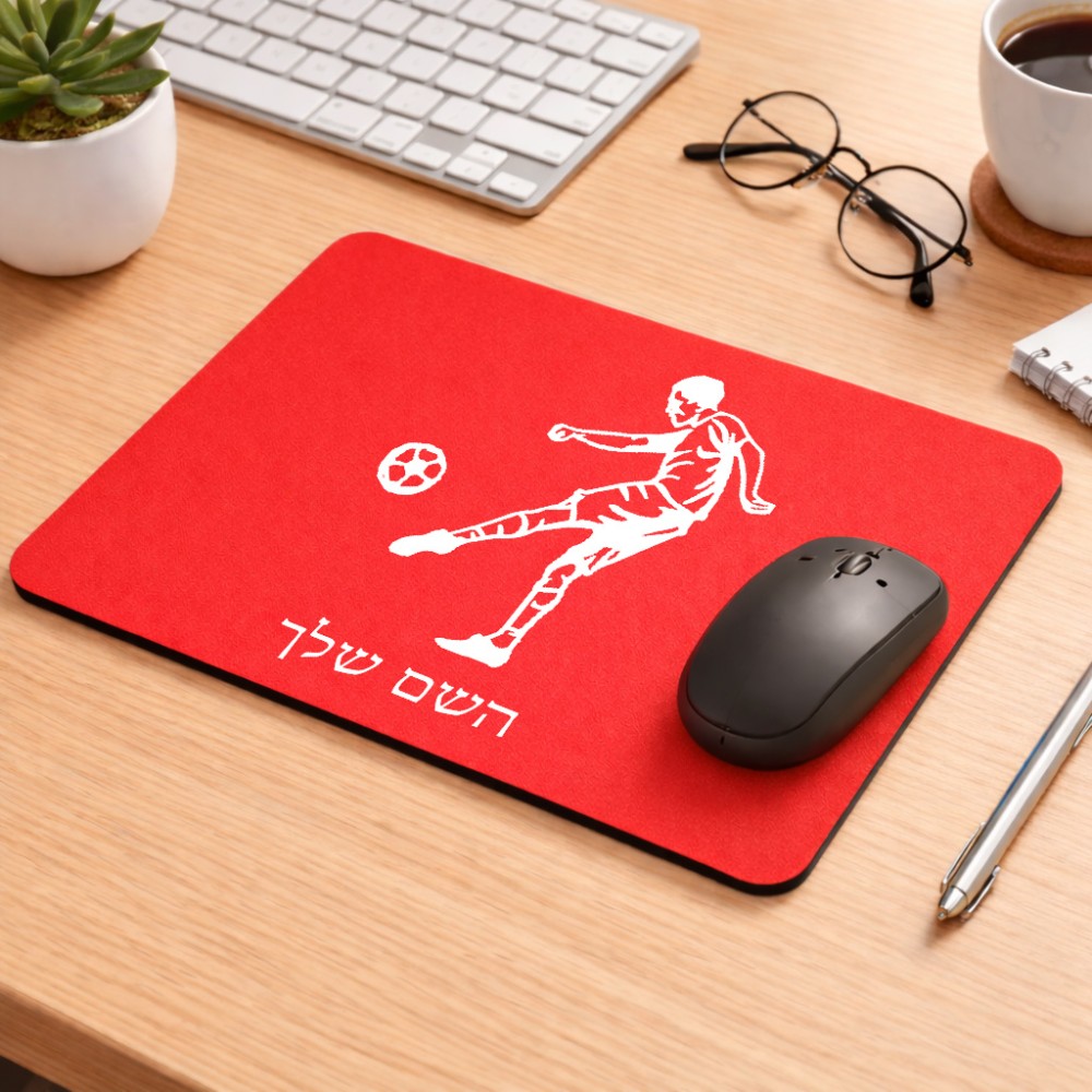 פד לעכבר בעיצוב אישי עם השם שלך בעיצוב שחקן כדורגל גודל הפד 22 × 18 ס"מ