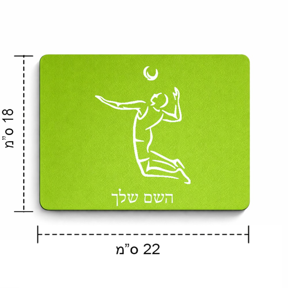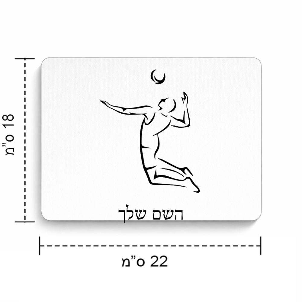 פד לעכבר בעיצוב אישי עם השם שלך בעיצוב שחקן כדורעף גודל הפד 22 × 18 ס"מ. את השם המבוקש ניתן לציין בהזמנה, אם לא צויין אנחנו ניצור קשר לבירור.