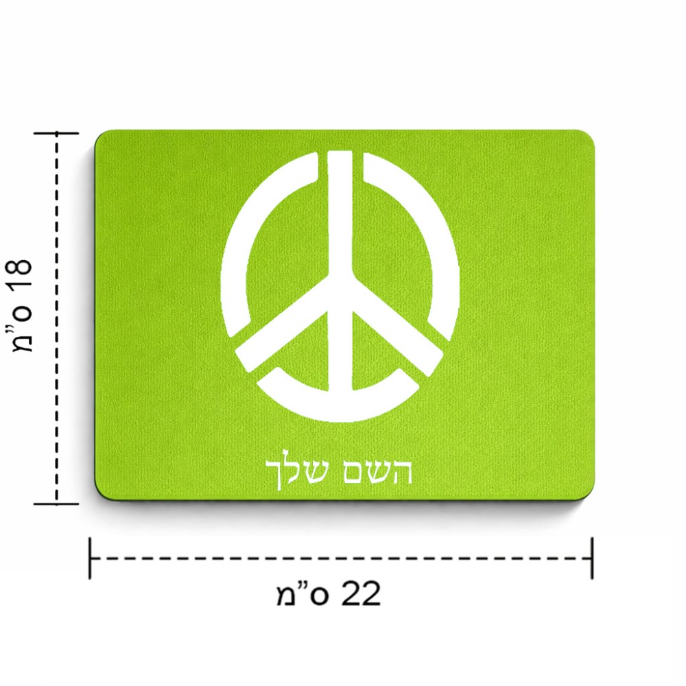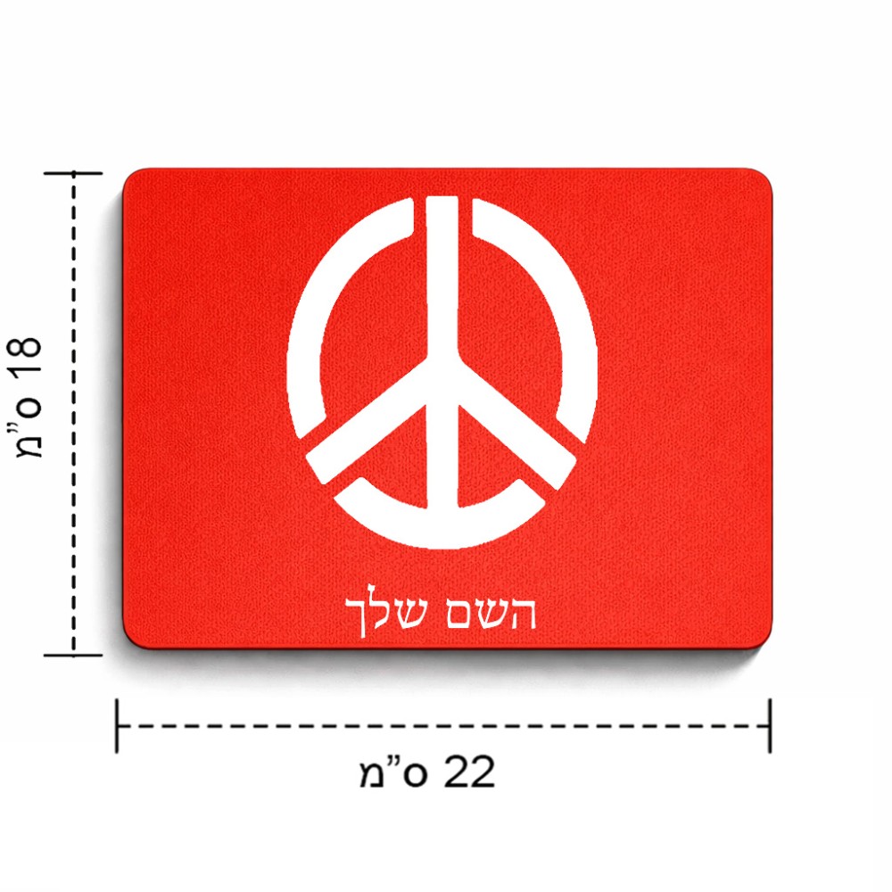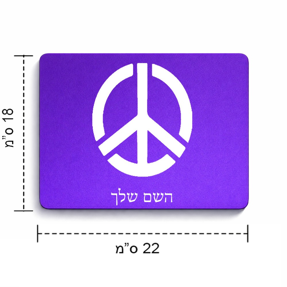 פד לעכבר בעיצוב אישי עם השם שלך בעיצוב סמל השלום גודל הפד 22 × 18 ס"מ. את השם המבוקש ניתן לציין בהזמנה, אם לא צויין אנחנו ניצור קשר לבירור.