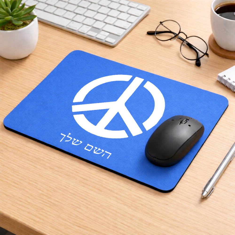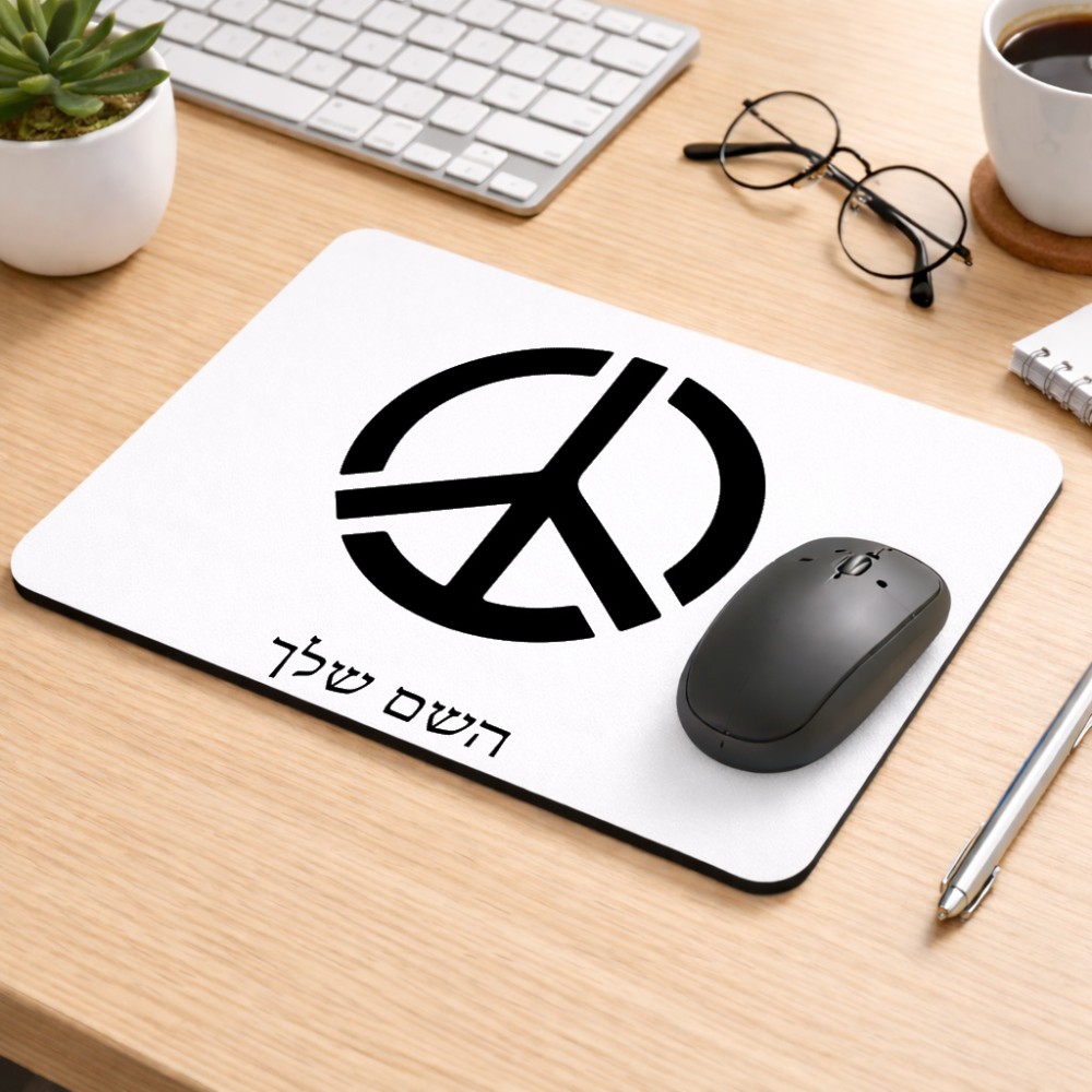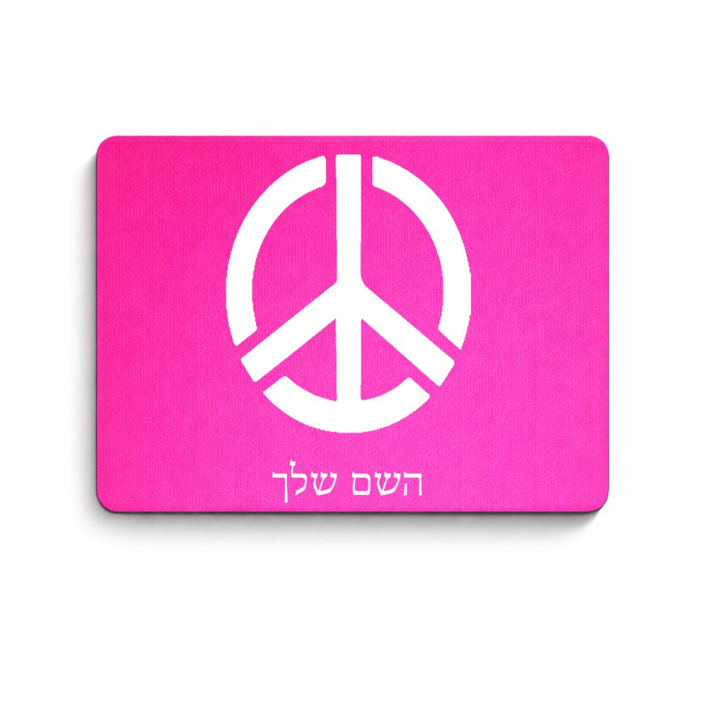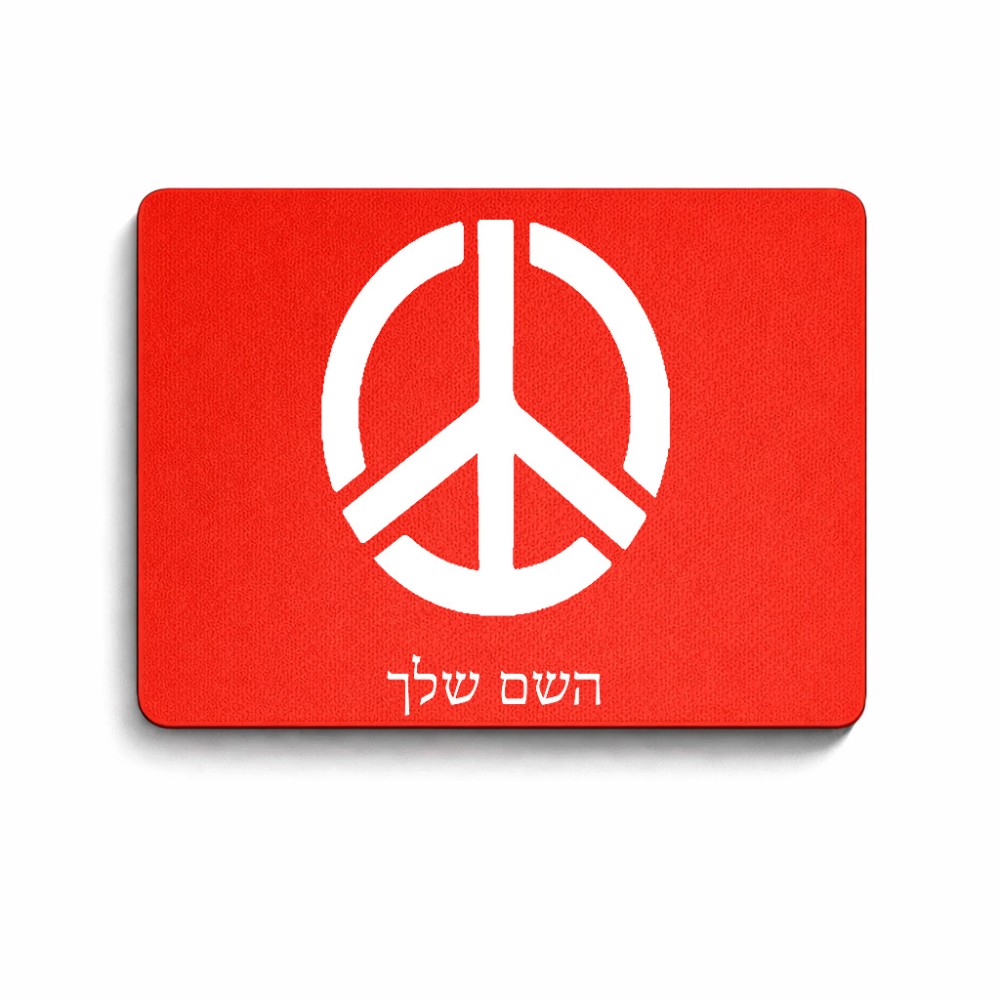 פד לעכבר בעיצוב אישי עם השם שלך בעיצוב סמל השלום גודל הפד 22 × 18 ס"מ. את השם המבוקש ניתן לציין בהזמנה, אם לא צויין אנחנו ניצור קשר לבירור.