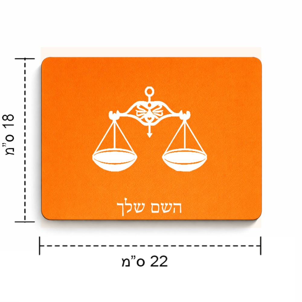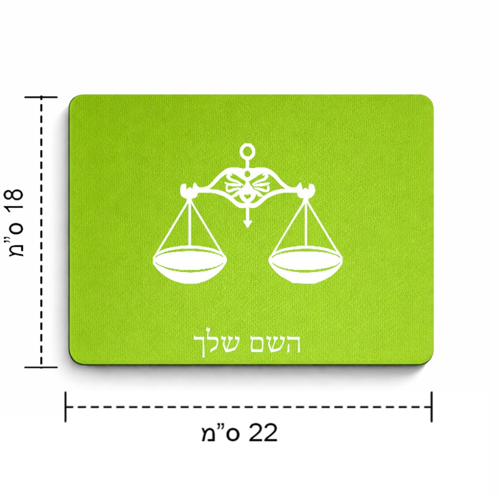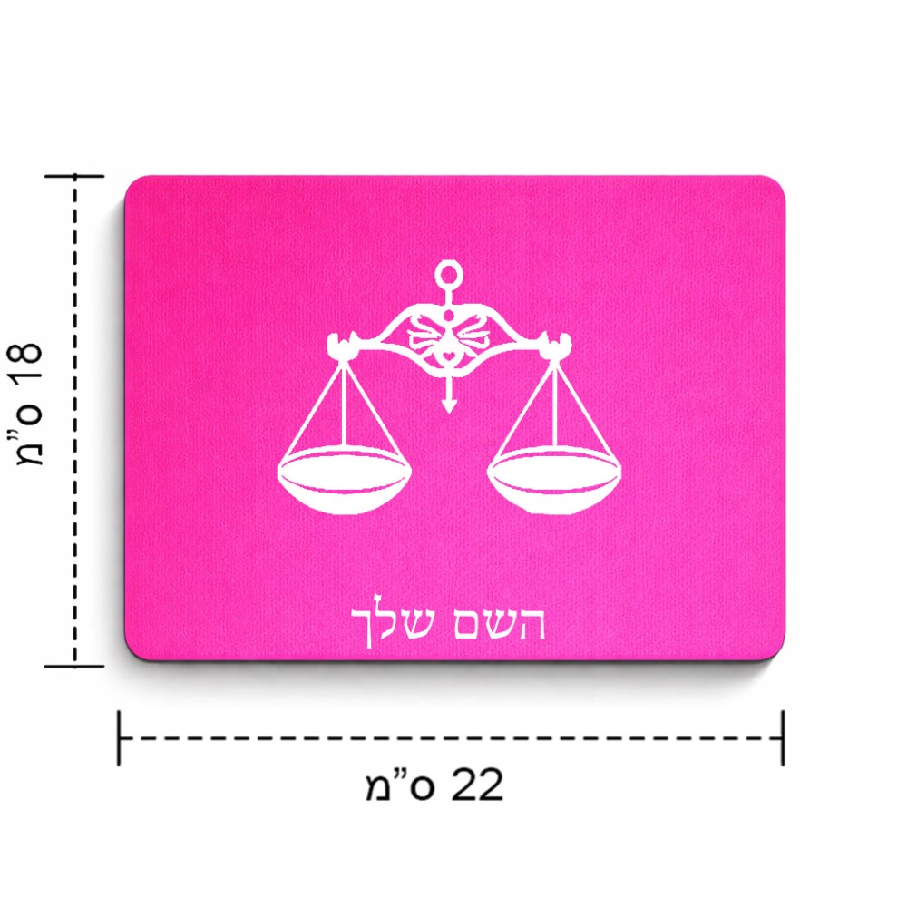 פד לעכבר בעיצוב אישי עם השם שלך בעיצוב מזלות - מאזניים גודל הפד 22 × 18 ס"מ. את השם המבוקש ניתן לציין בהזמנה, אם לא צויין אנחנו ניצור קשר לבירור.