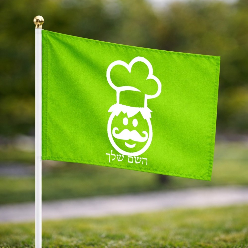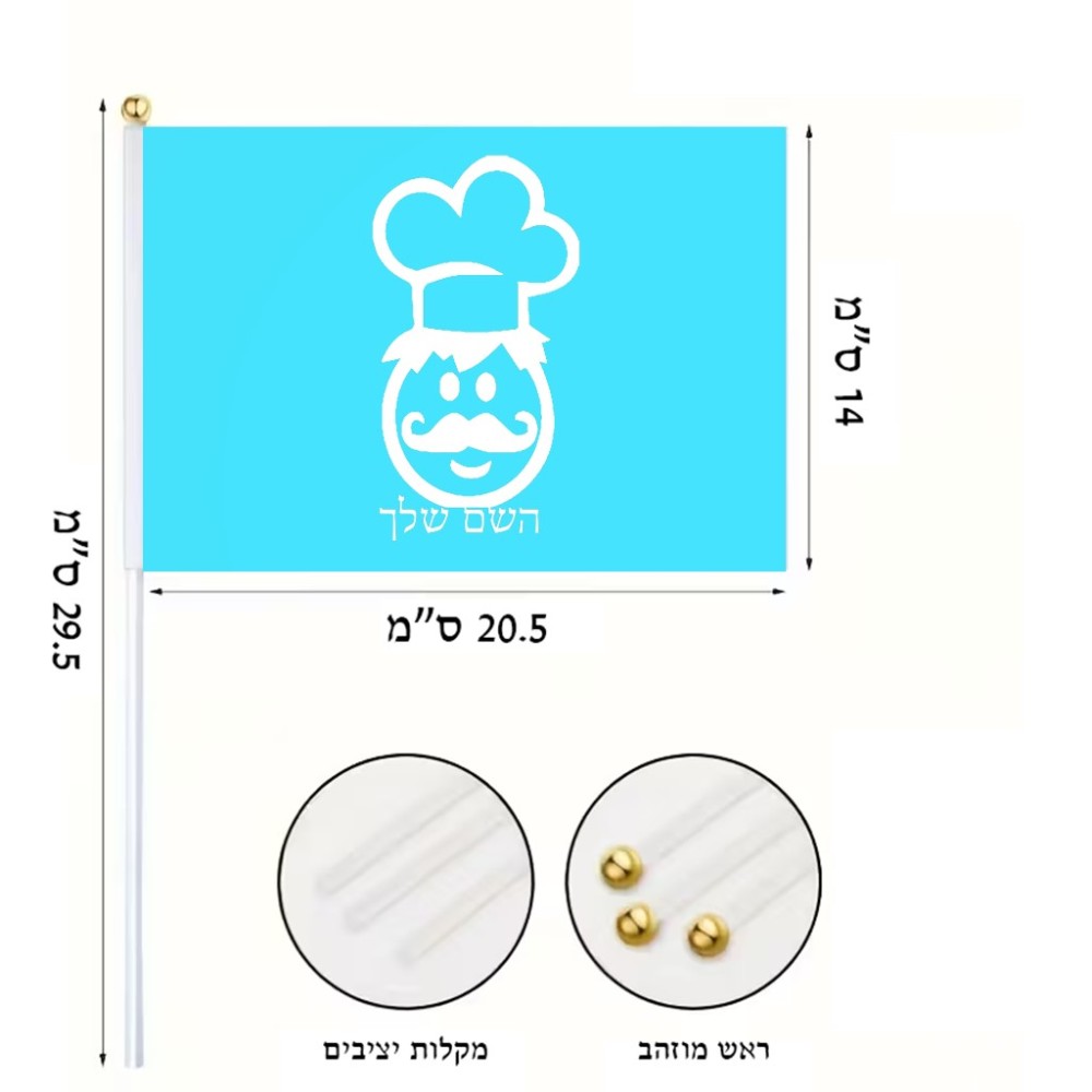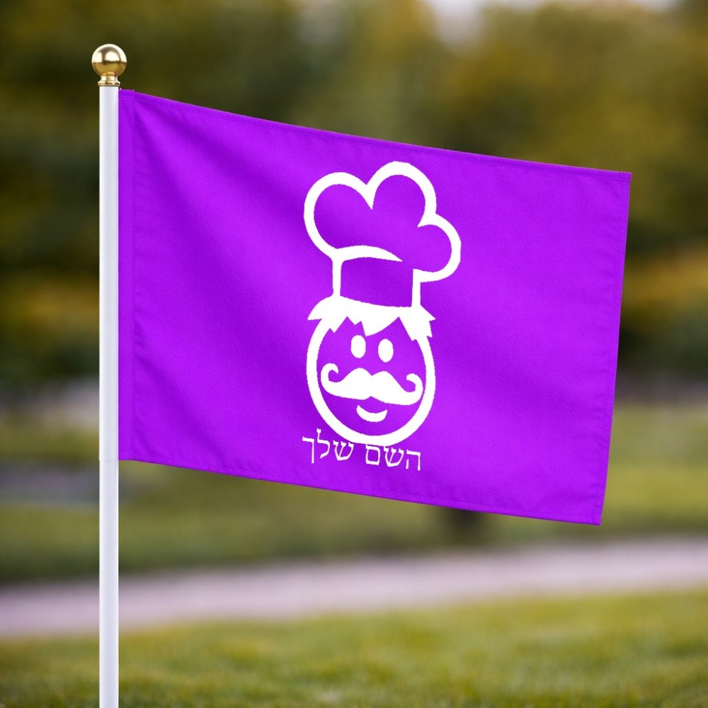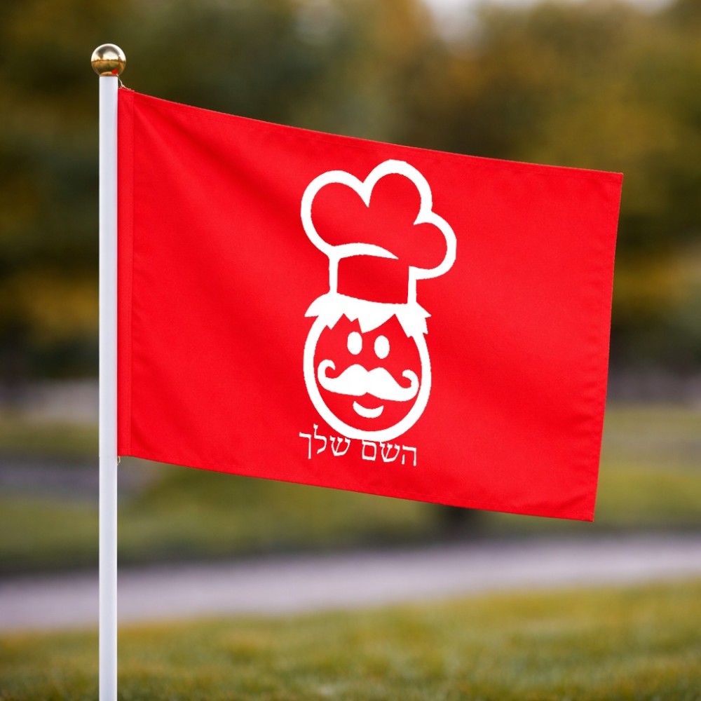דיגלון בעיצוב אישי עם השם שלך בעיצוב שף גודל הדיגלון 20.5 × 14 ס"מ, ההדפסה מתבצעת בשני צידי הדגל, את השם המבוקש ניתן לציין בהזמנה, אם לא צויין אנחנו ניצור קשר לבירור.
