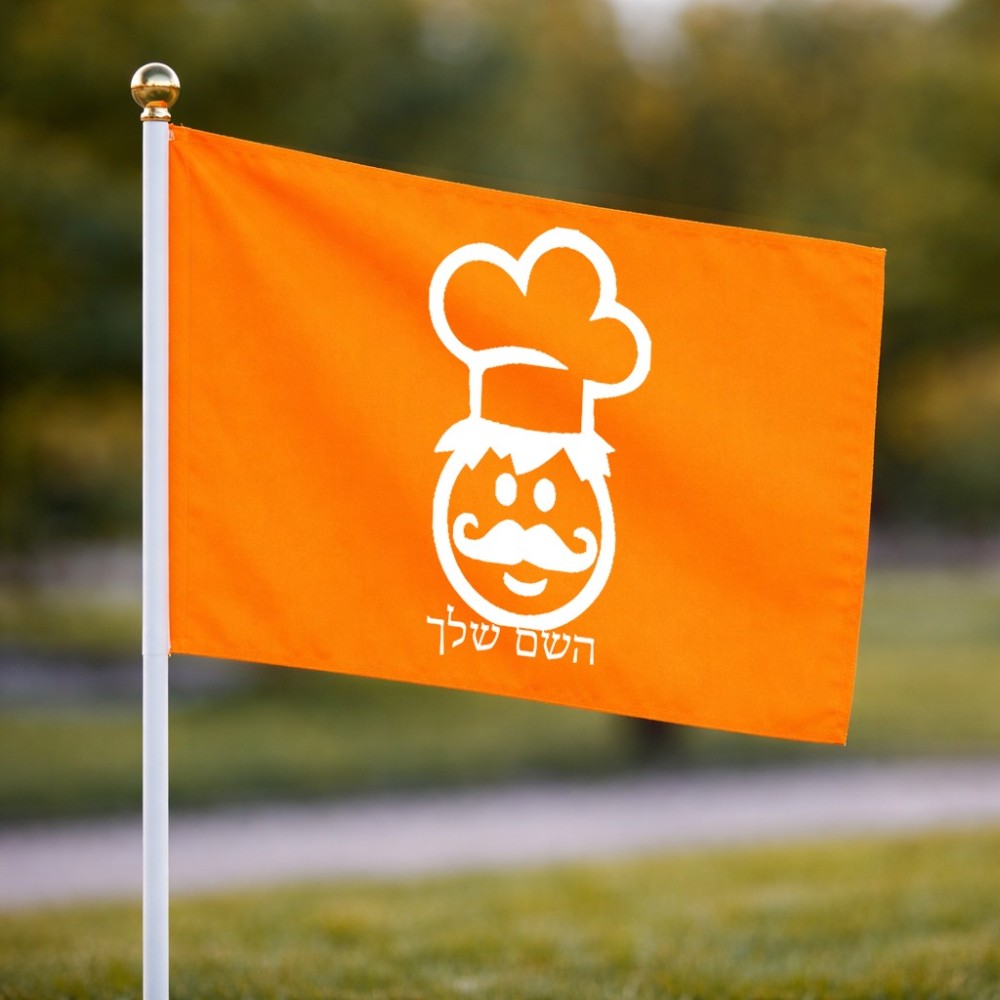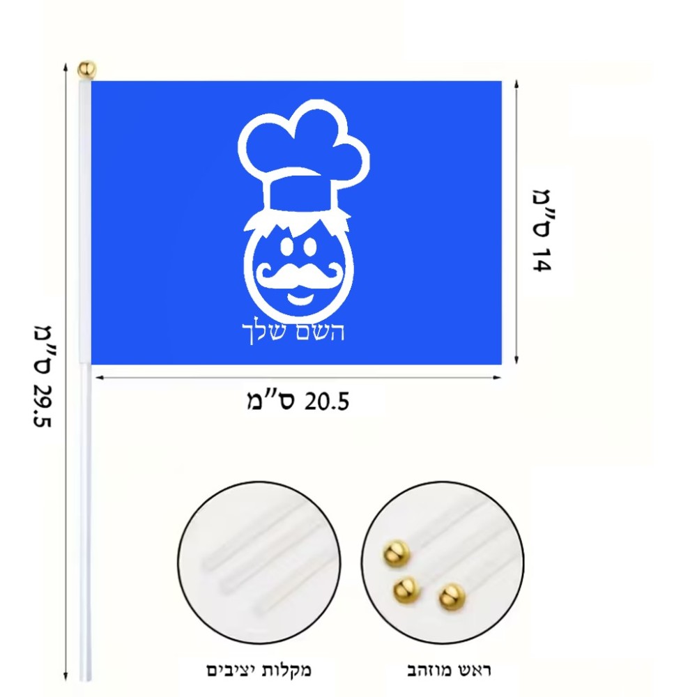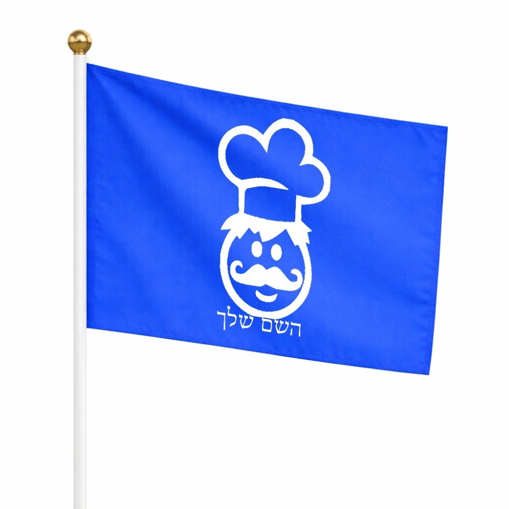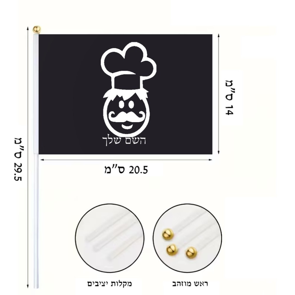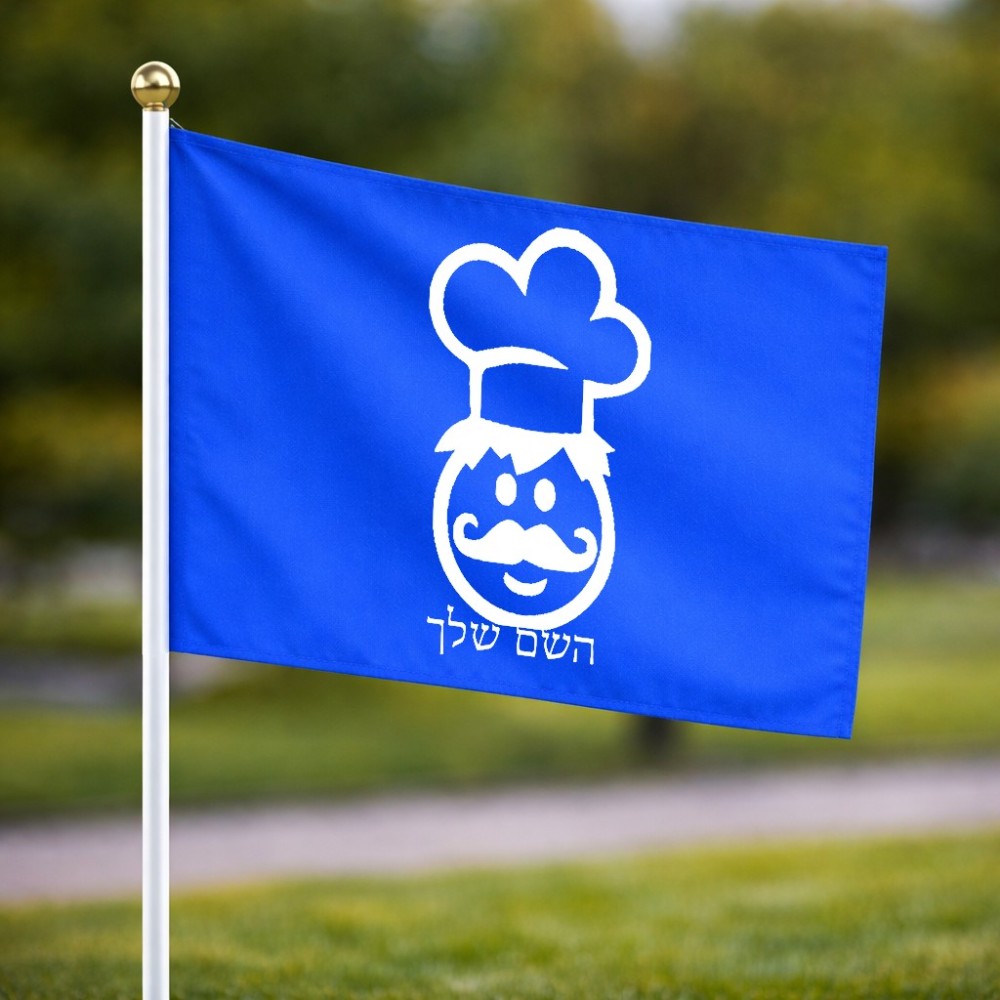 דיגלון בעיצוב אישי עם השם שלך בעיצוב שף גודל הדיגלון 20.5 × 14 ס"מ, ההדפסה מתבצעת בשני צידי הדגל, את השם המבוקש ניתן לציין בהזמנה, אם לא צויין אנחנו ניצור קשר לבירור.