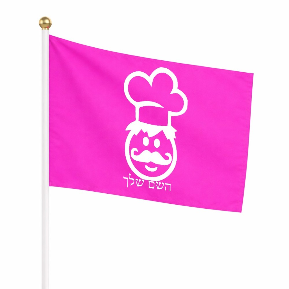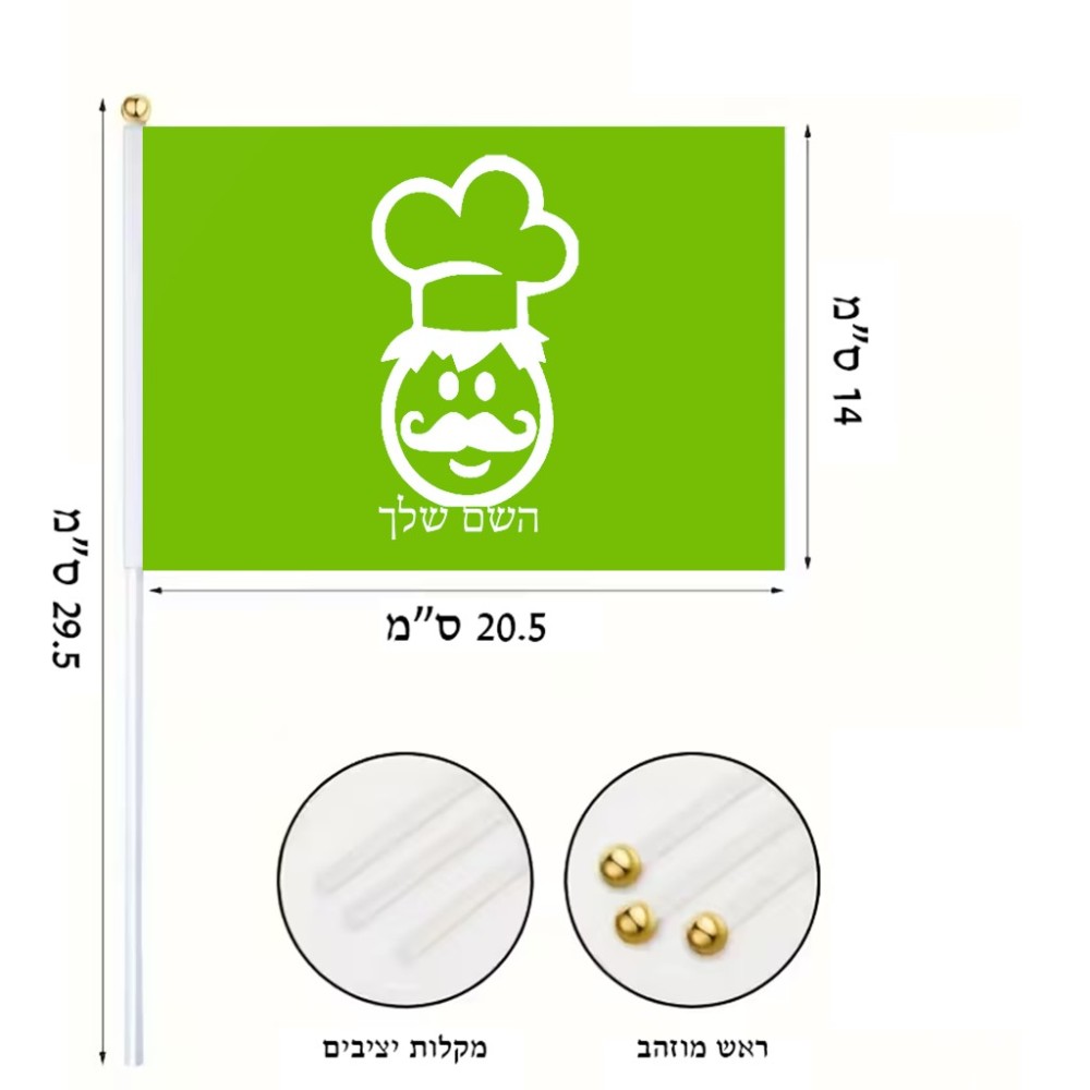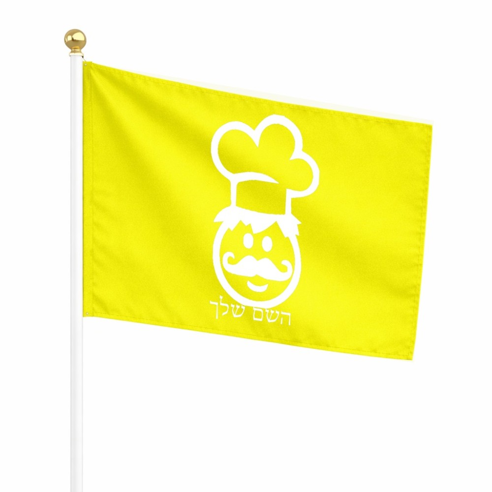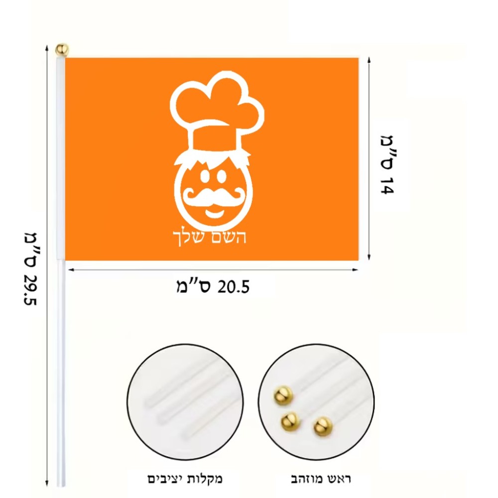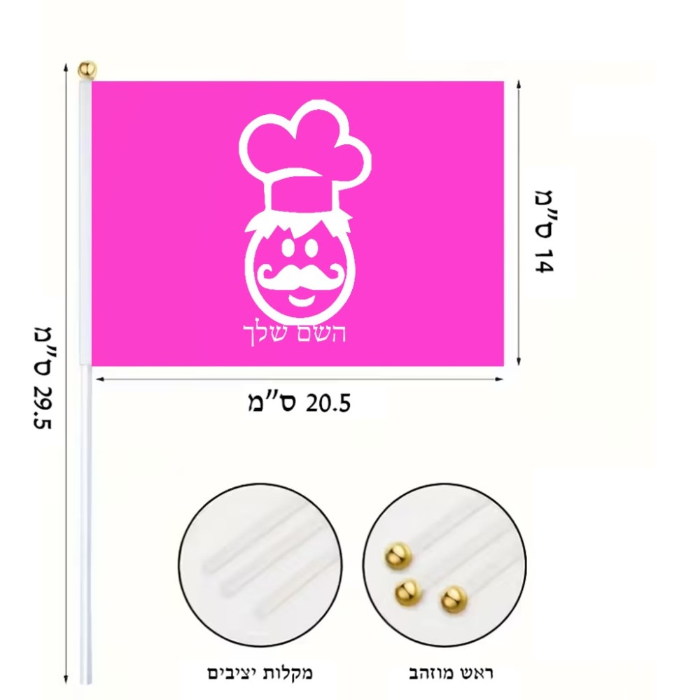 דיגלון בעיצוב אישי עם השם שלך בעיצוב שף גודל הדיגלון 20.5 × 14 ס"מ, ההדפסה מתבצעת בשני צידי הדגל, את השם המבוקש ניתן לציין בהזמנה, אם לא צויין אנחנו ניצור קשר לבירור.