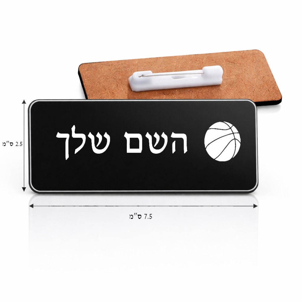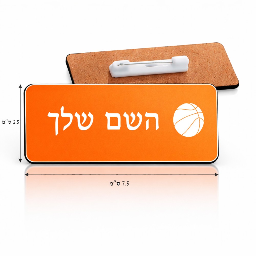 תג שם \ תוויות שם בעיצוב אישי עם השם שלך בעיצוב כדורסל גודל התג 7.5 × 2.5 ס"מ. את השם המבוקש ניתן לציין בהזמנה, אם לא צויין אנחנו ניצור קשר לבירור.