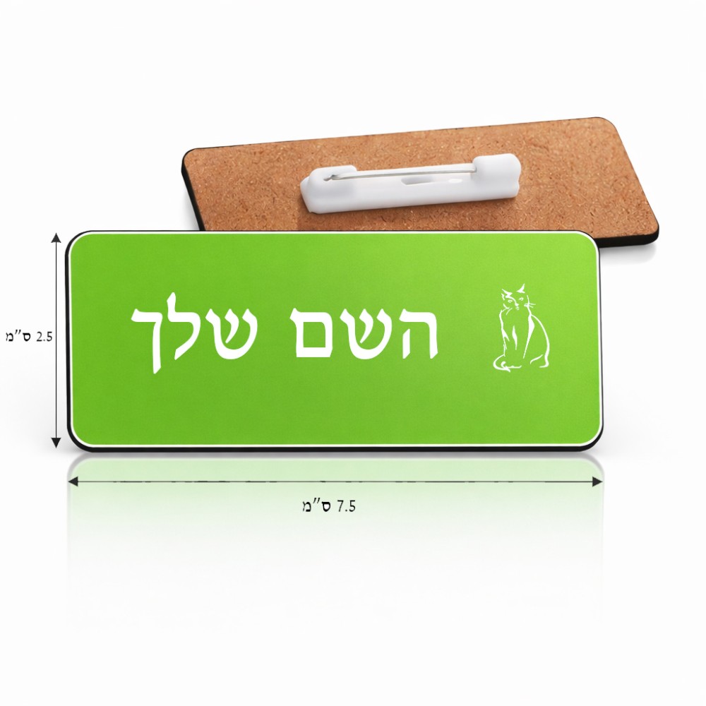 תג שם \ תוויות שם בעיצוב אישי עם השם שלך בעיצוב חתול גודל התג 7.5 × 2.5 ס"מ. את השם המבוקש ניתן לציין בהזמנה, אם לא צויין אנחנו ניצור קשר לבירור.