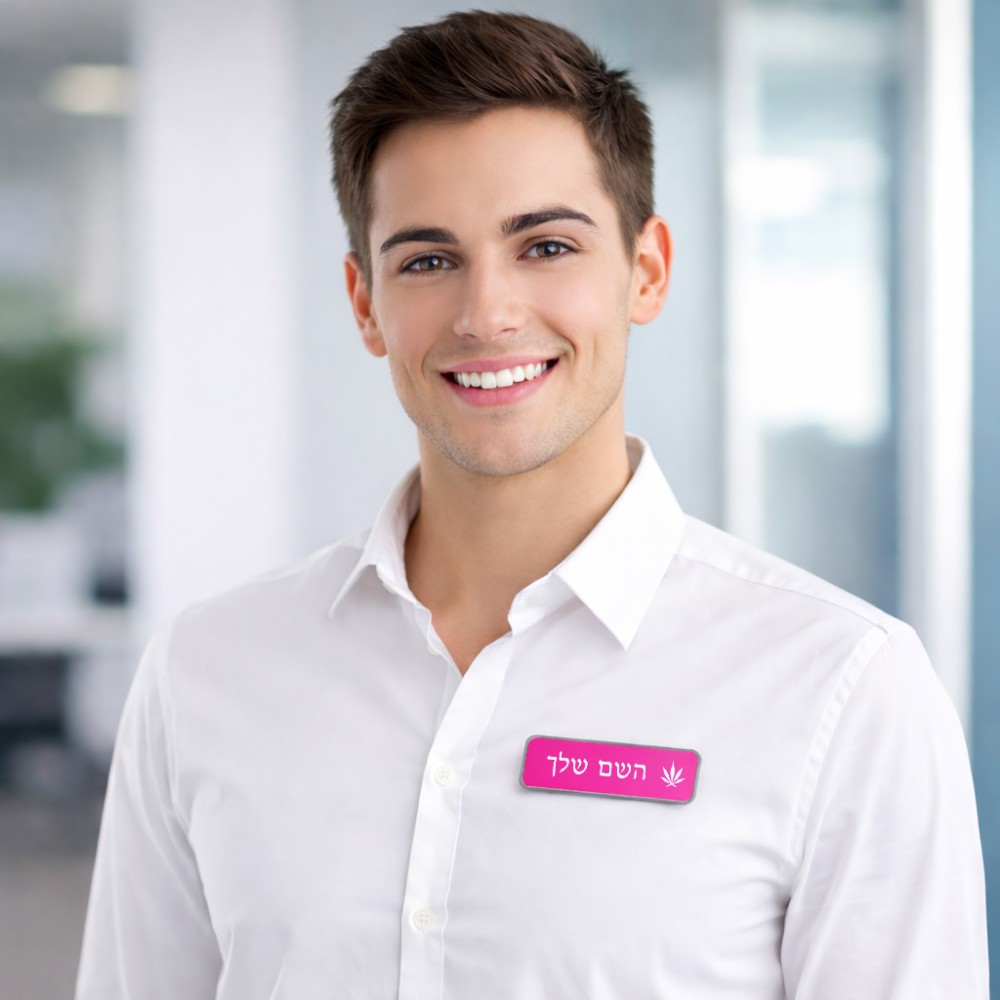 תג שם \ תוויות שם בעיצוב אישי עם השם שלך בעיצוב עלה מריחואנה - גראס גודל התג 7.5 × 2.5 ס"מ. את השם המבוקש ניתן לציין בהזמנה, אם לא צויין אנחנו ניצור קשר לבירור.