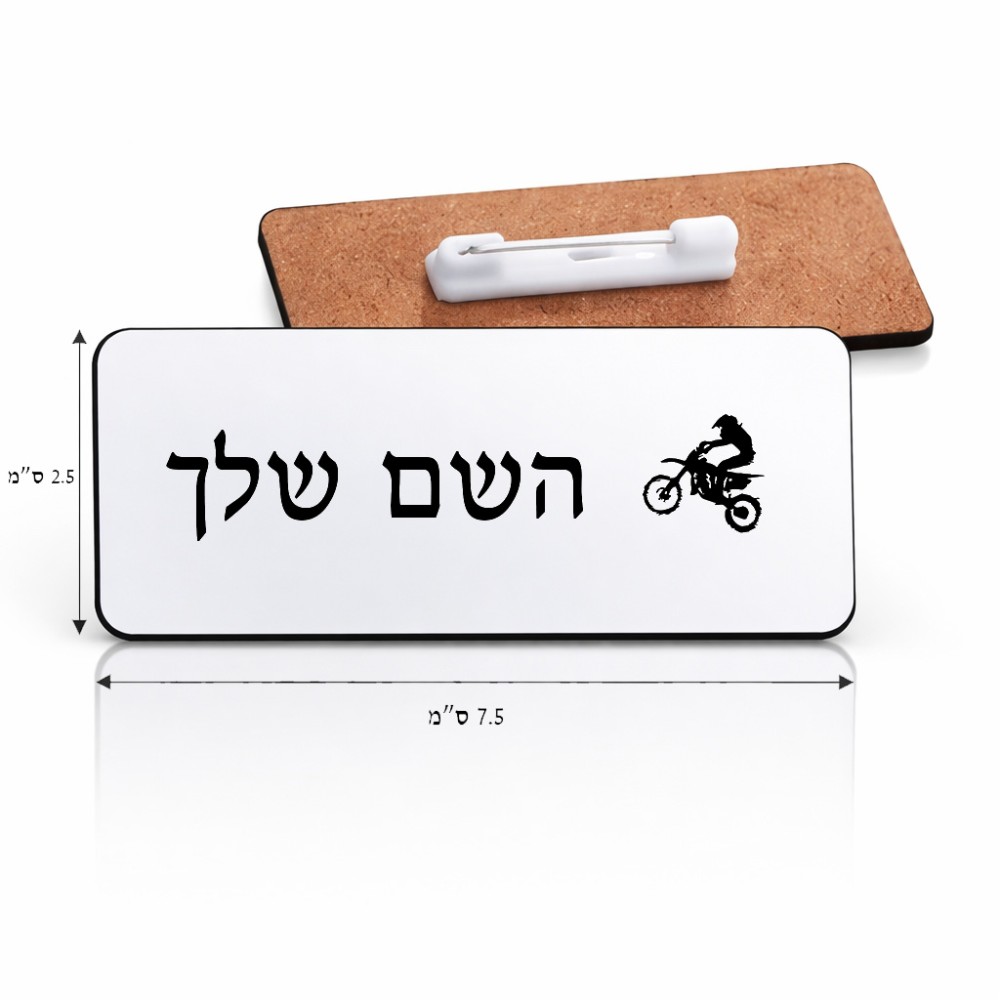 תג שם \ תוויות שם בעיצוב אישי עם השם שלך בעיצוב מוטוקרוס גודל התג 7.5 × 2.5 ס"מ. את השם המבוקש ניתן לציין בהזמנה, אם לא צויין אנחנו ניצור קשר לבירור.
