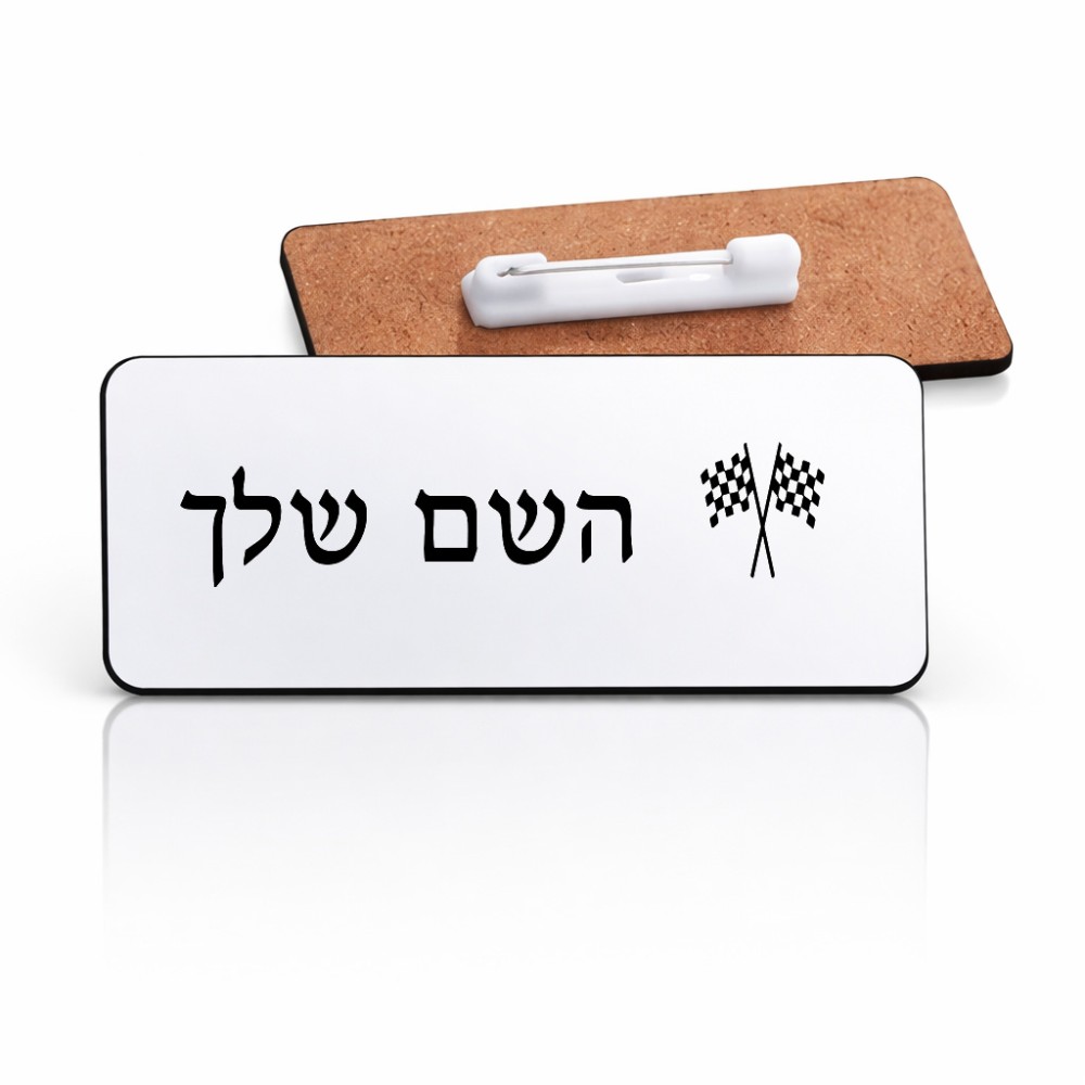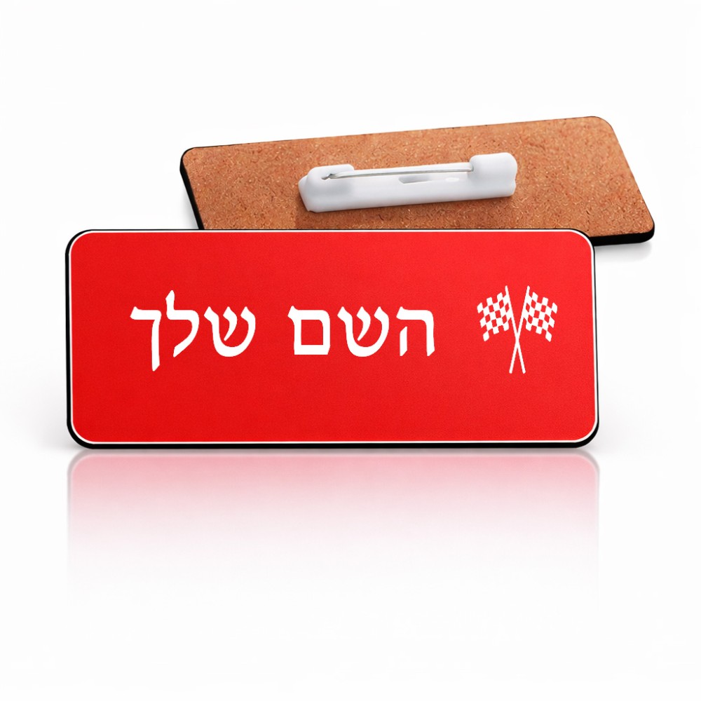 תג שם \ תוויות שם בעיצוב אישי עם השם שלך בעיצוב דגל המירוץ גודל התג 7.5 × 2.5 ס"מ. את השם המבוקש ניתן לציין בהזמנה, אם לא צויין אנחנו ניצור קשר לבירור.