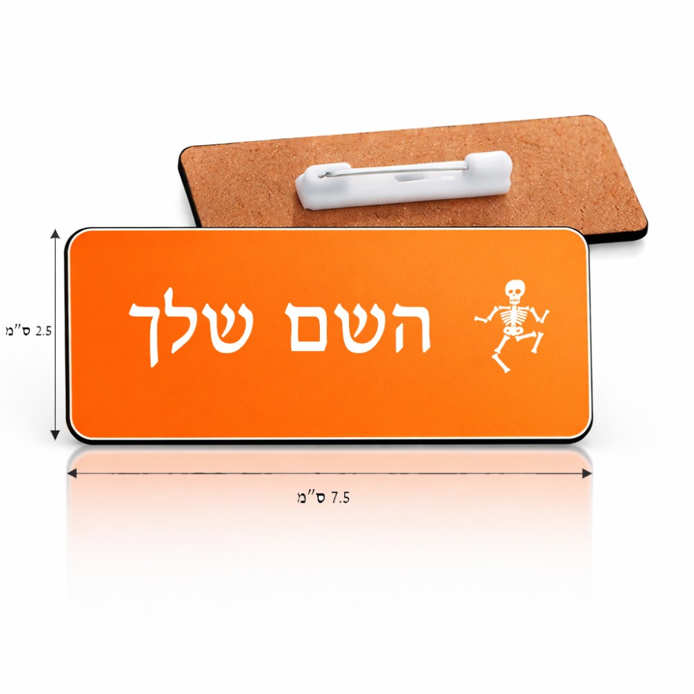 תג שם \ תוויות שם בעיצוב אישי עם השם שלך בעיצוב סקלטון גודל התג 7.5 × 2.5 ס"מ. את השם המבוקש ניתן לציין בהזמנה, אם לא צויין אנחנו ניצור קשר לבירור.