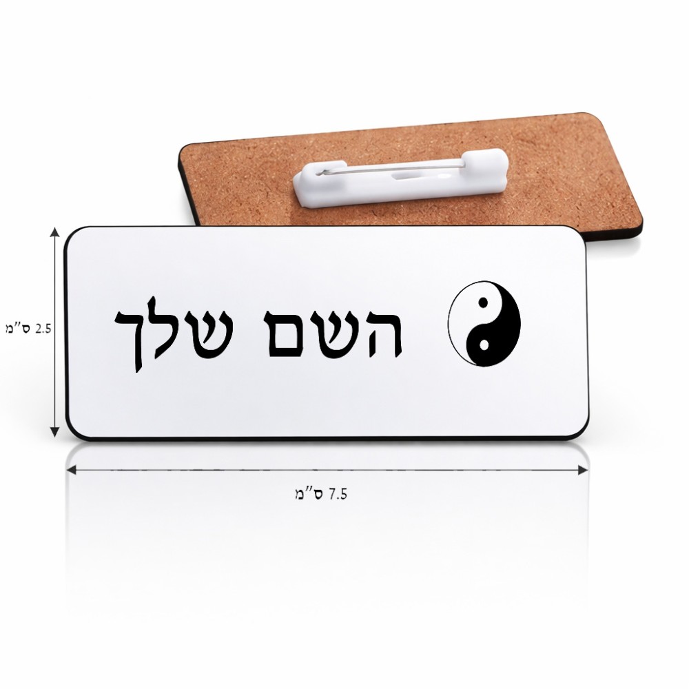 תג שם \ תוויות שם בעיצוב אישי עם השם שלך בעיצוב סמל יינג יאנג גודל התג 7.5 × 2.5 ס"מ. את השם המבוקש ניתן לציין בהזמנה, אם לא צויין אנחנו ניצור קשר לבירור.