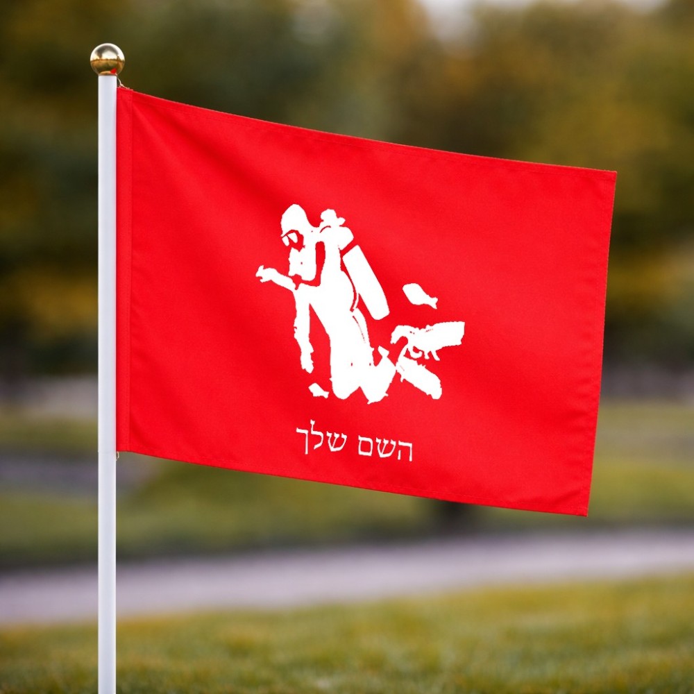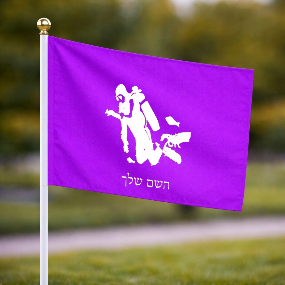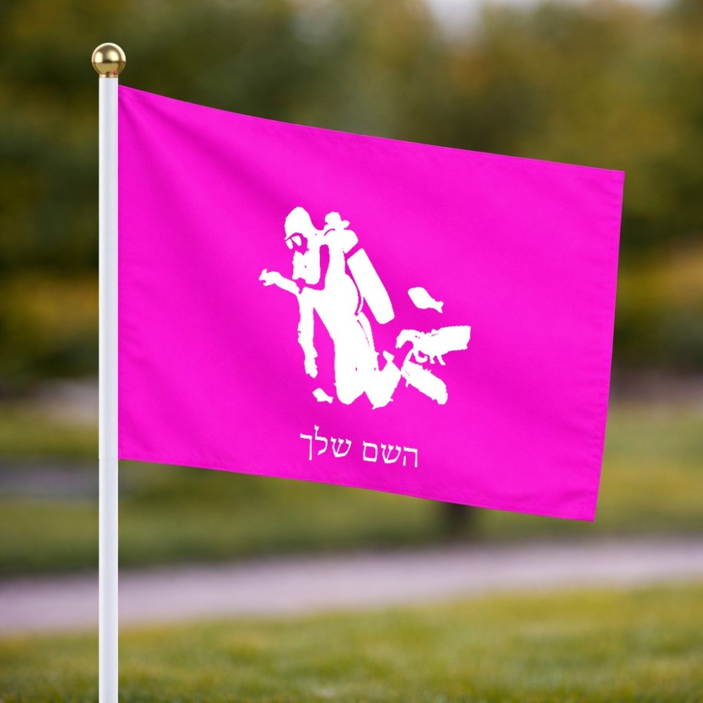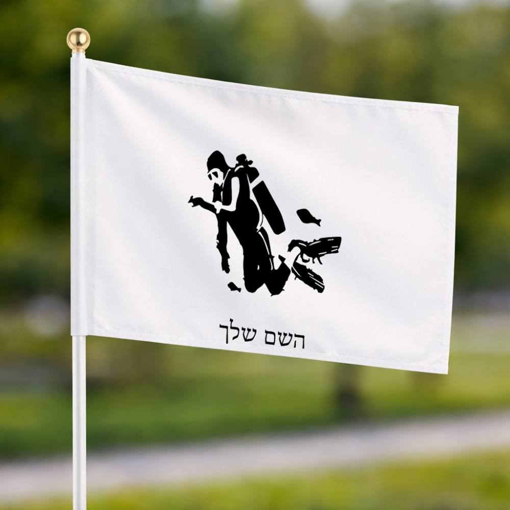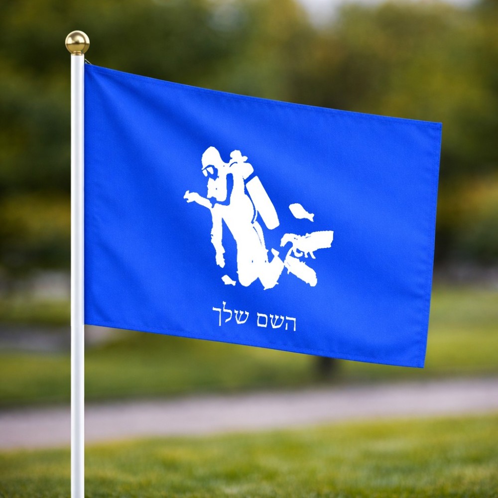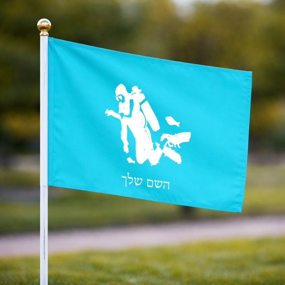 דיגלון בעיצוב אישי עם השם שלך בעיצוב צוללן גודל הדיגלון 20.5 × 14 ס"מ, ההדפסה מתבצעת בשני צידי הדגל, את השם המבוקש ניתן לציין בהזמנה, אם לא צויין אנחנו ניצור קשר לבירור.