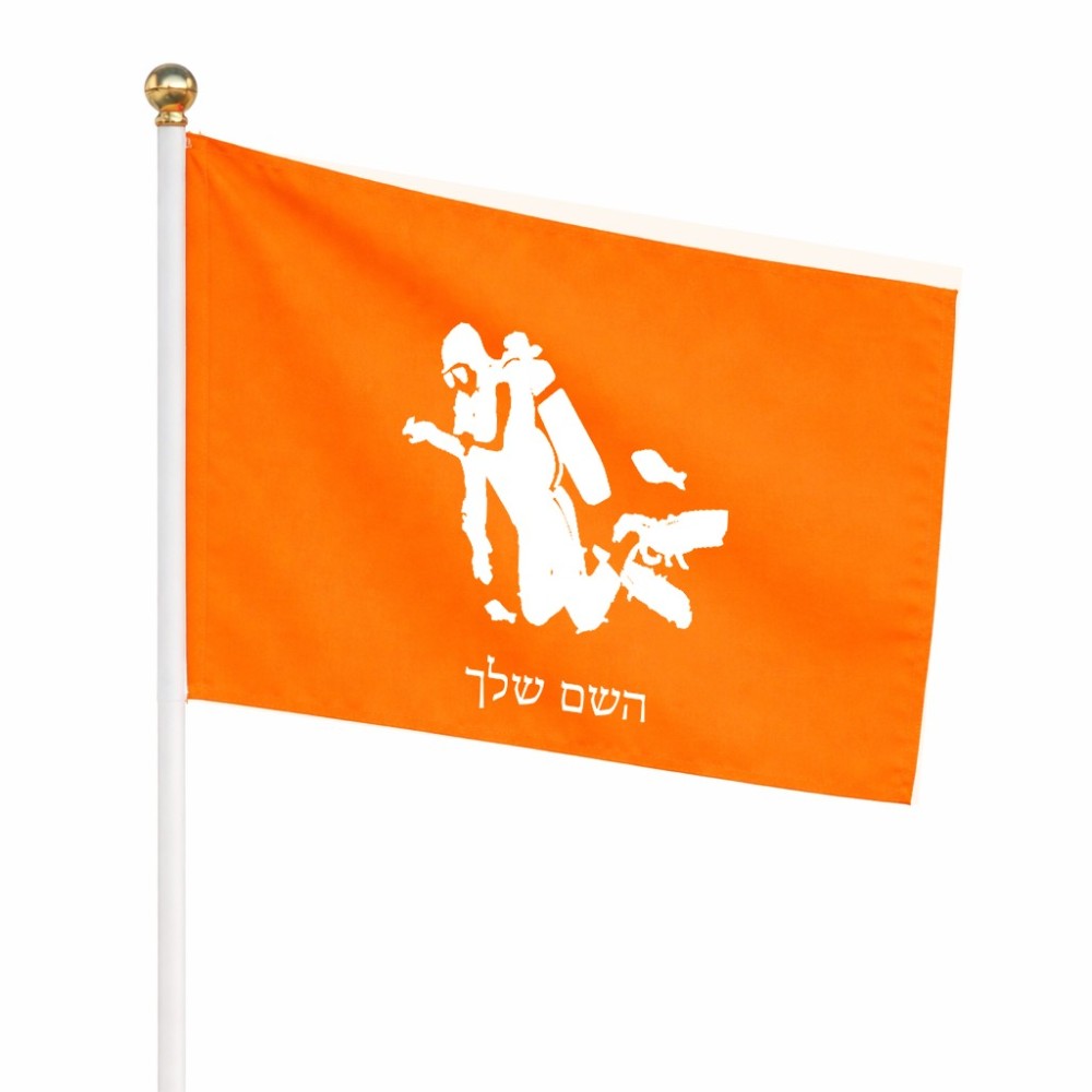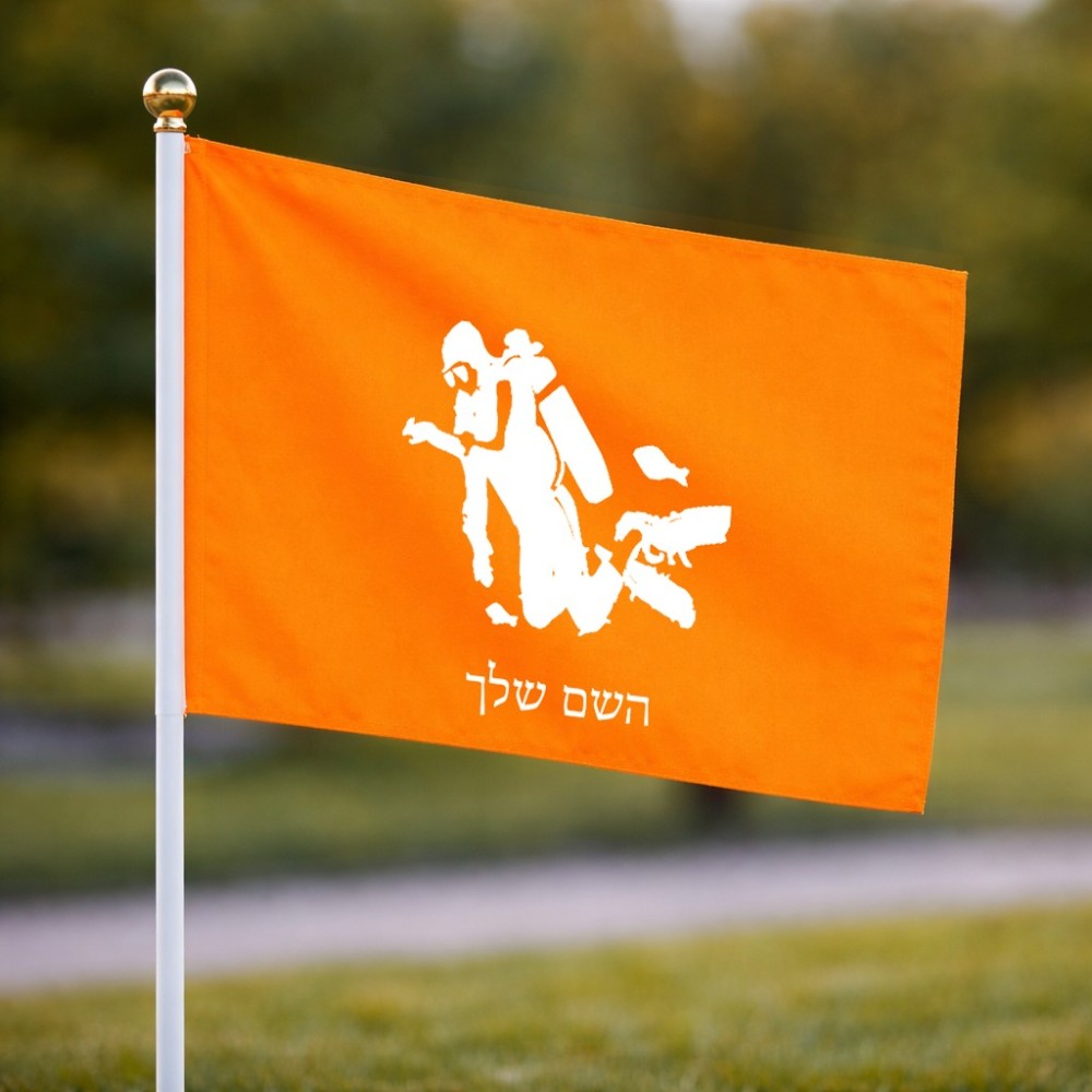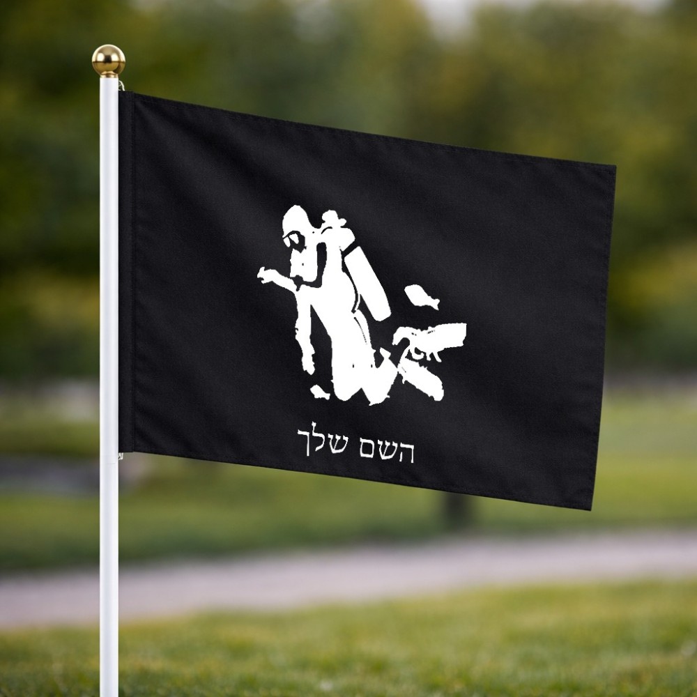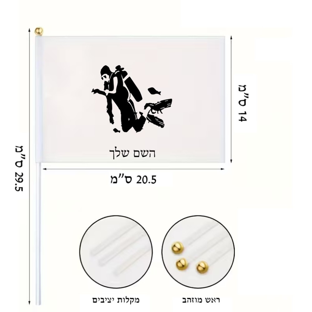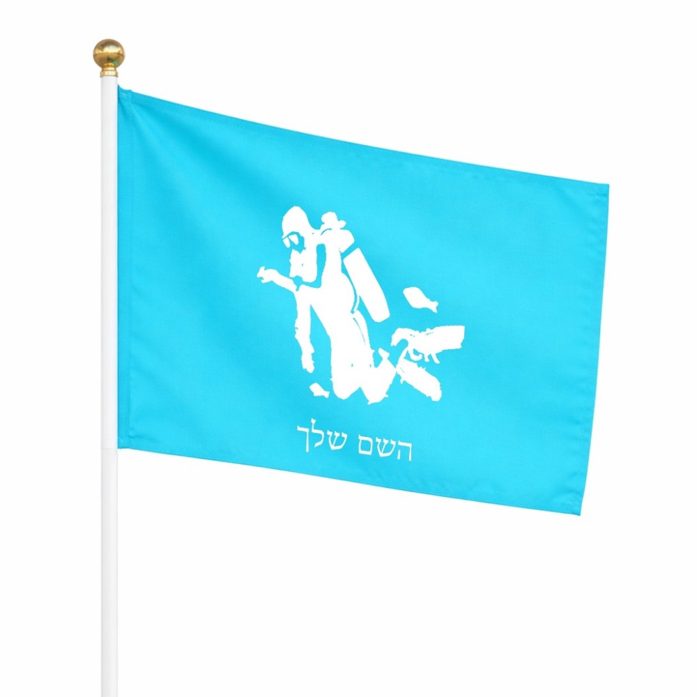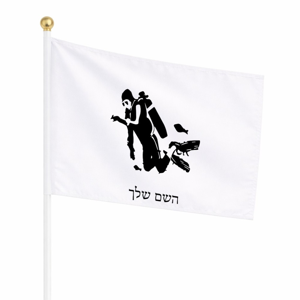 דיגלון בעיצוב אישי עם השם שלך בעיצוב צוללן גודל הדיגלון 20.5 × 14 ס"מ, ההדפסה מתבצעת בשני צידי הדגל, את השם המבוקש ניתן לציין בהזמנה, אם לא צויין אנחנו ניצור קשר לבירור.