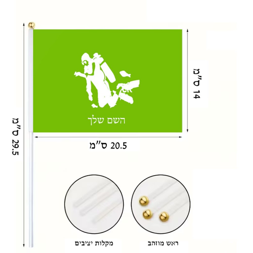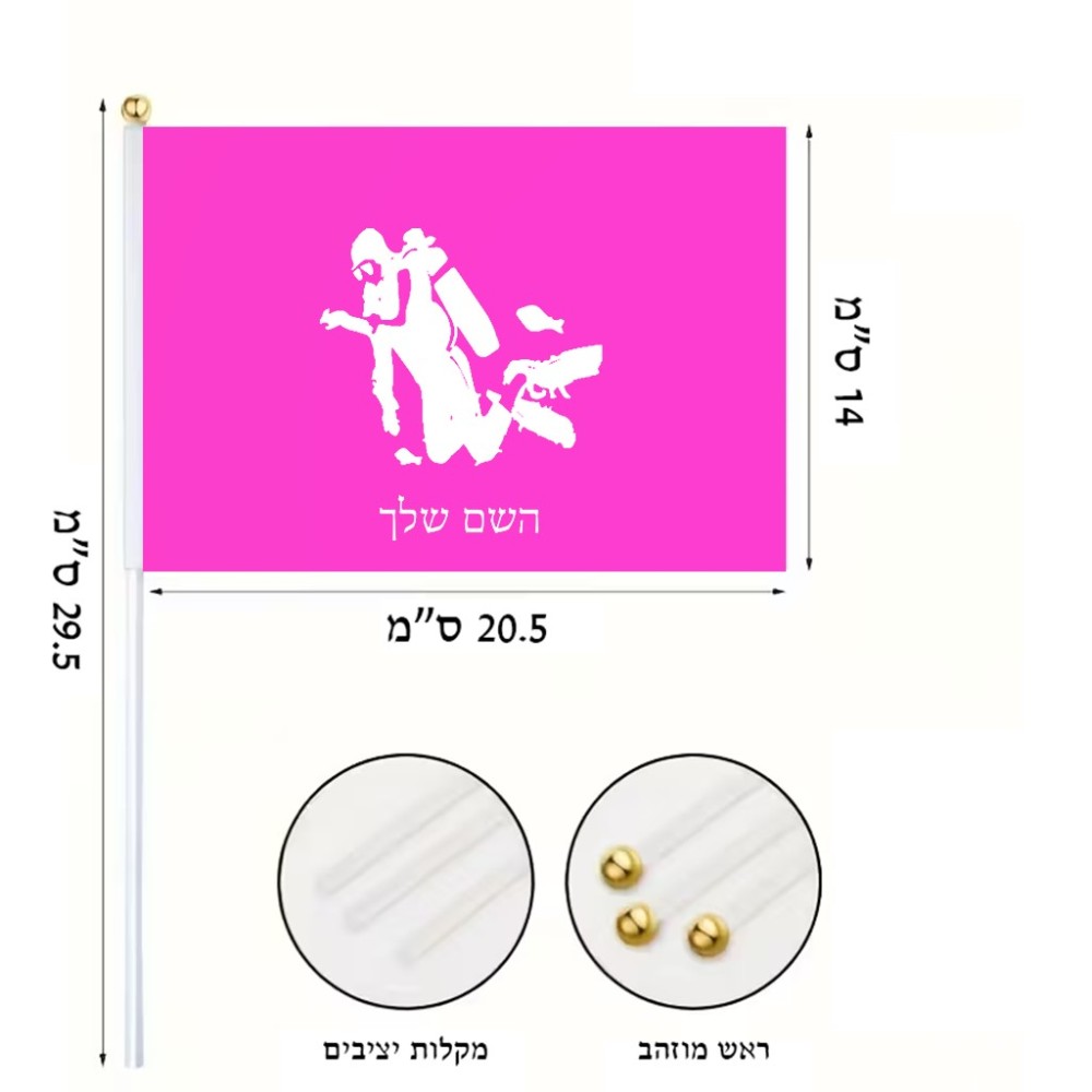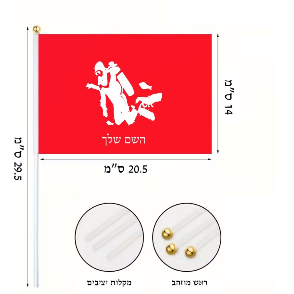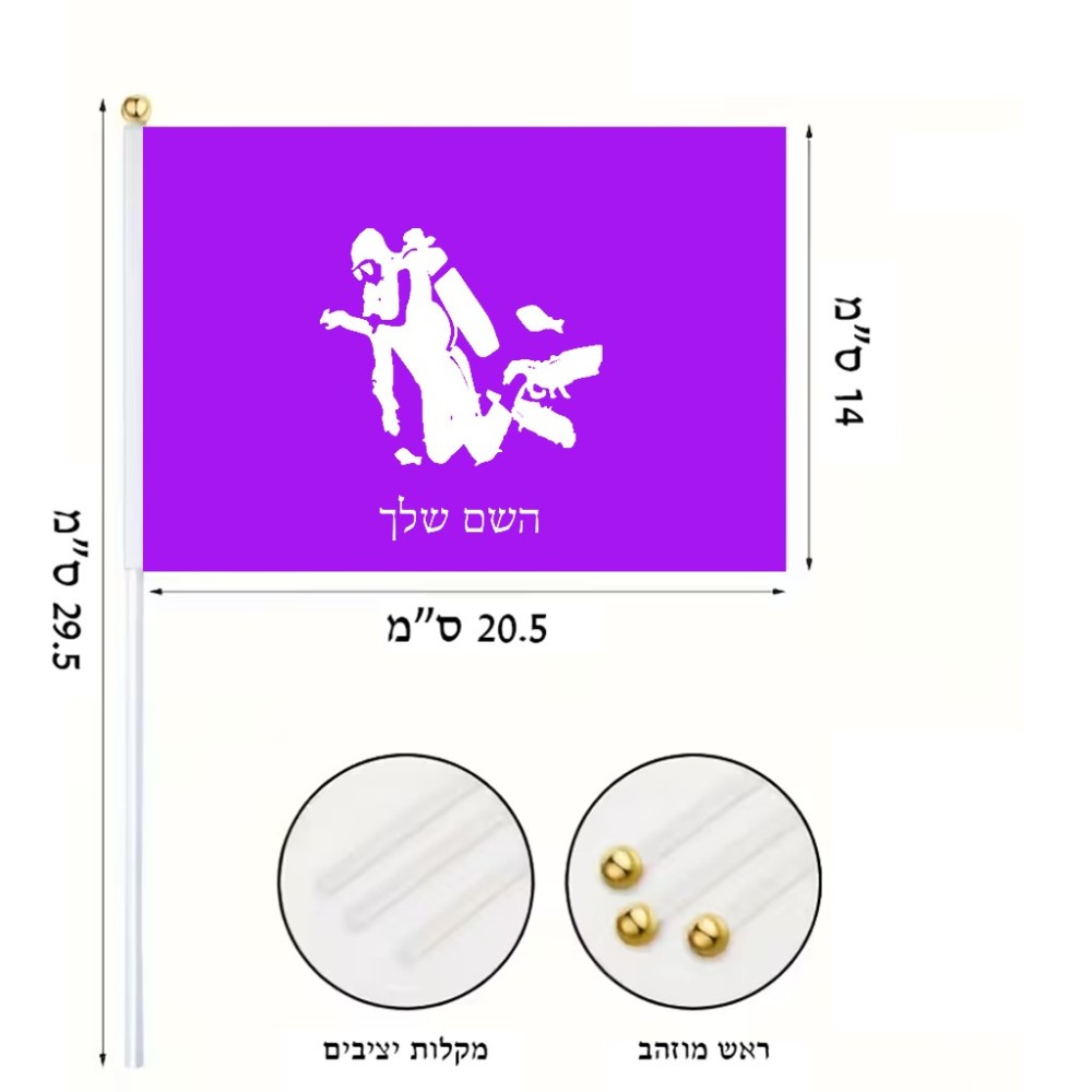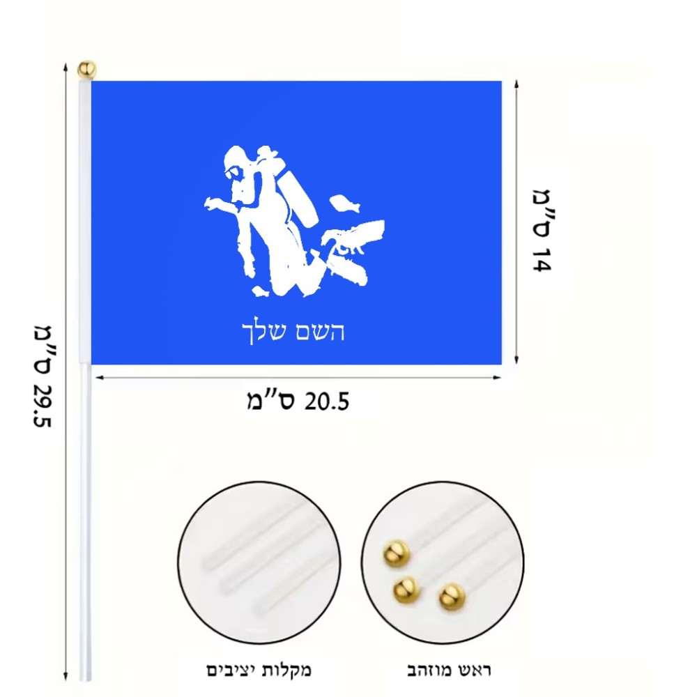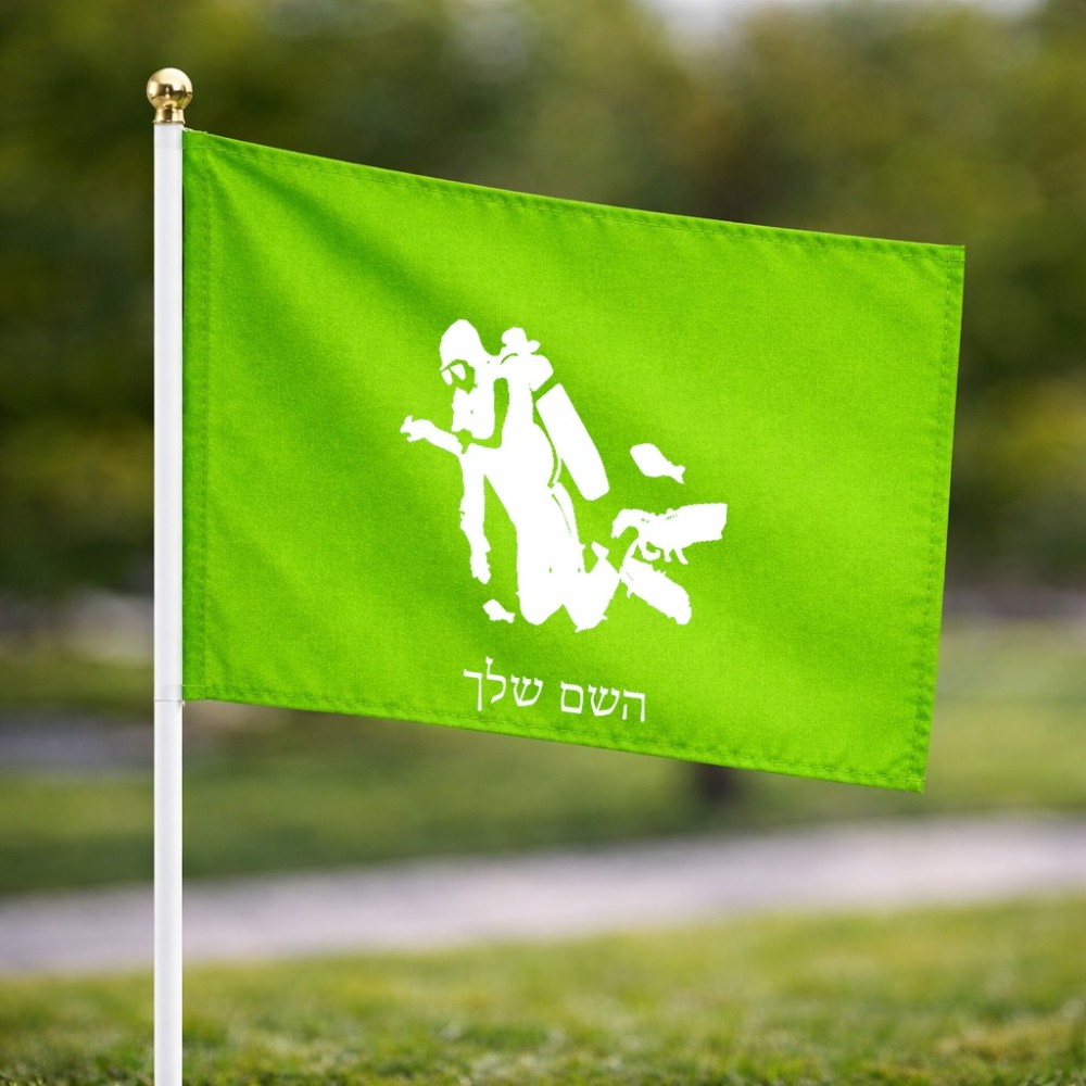 דיגלון בעיצוב אישי עם השם שלך בעיצוב צוללן גודל הדיגלון 20.5 × 14 ס"מ, ההדפסה מתבצעת בשני צידי הדגל, את השם המבוקש ניתן לציין בהזמנה, אם לא צויין אנחנו ניצור קשר לבירור.