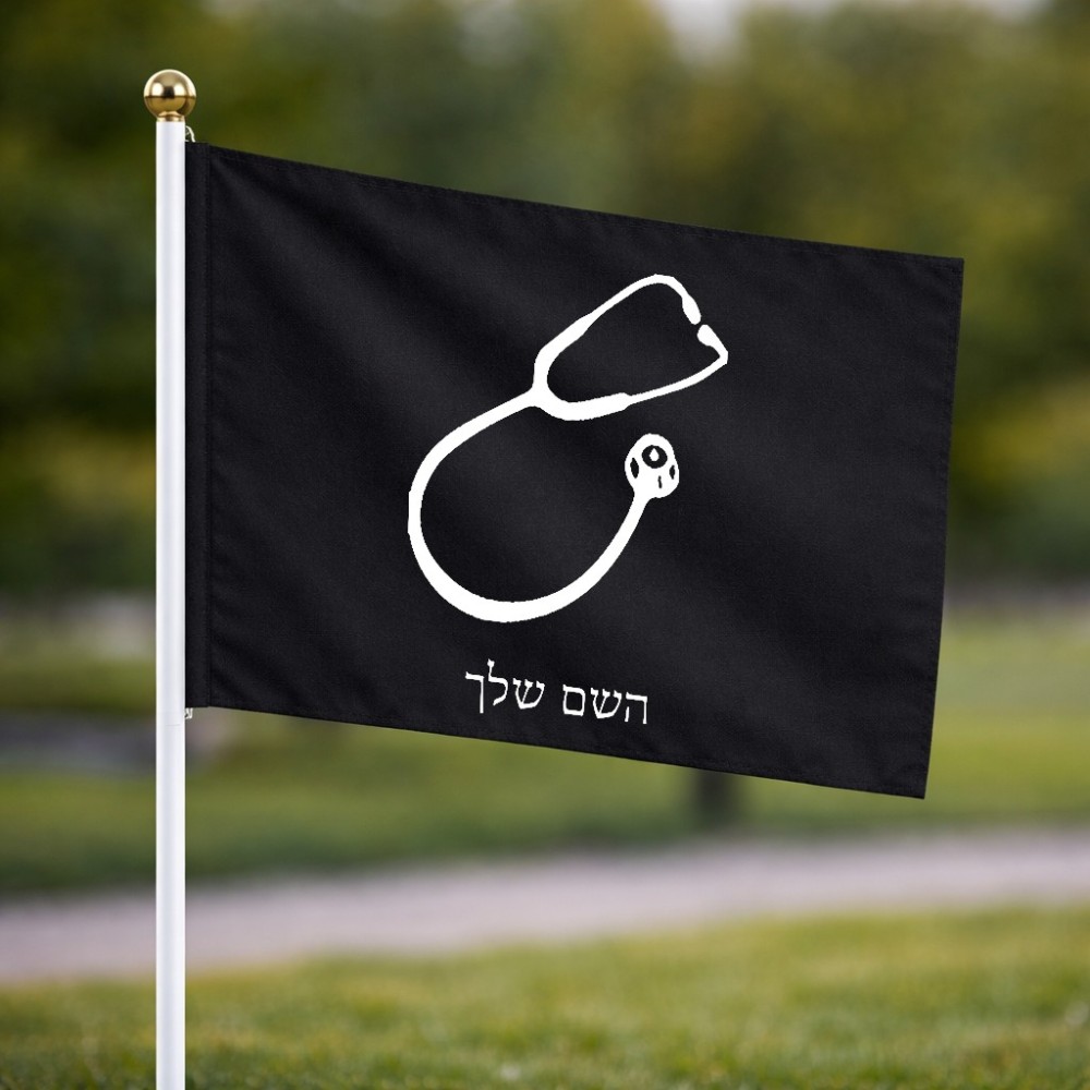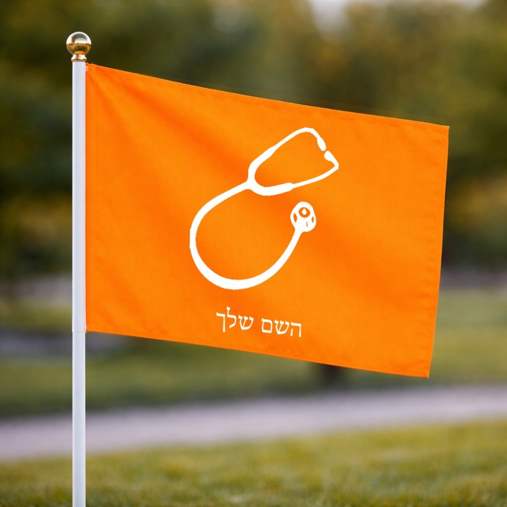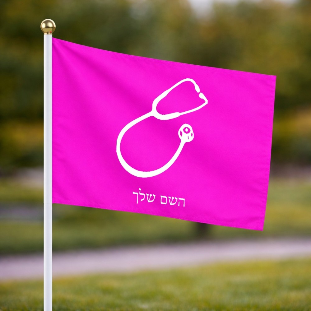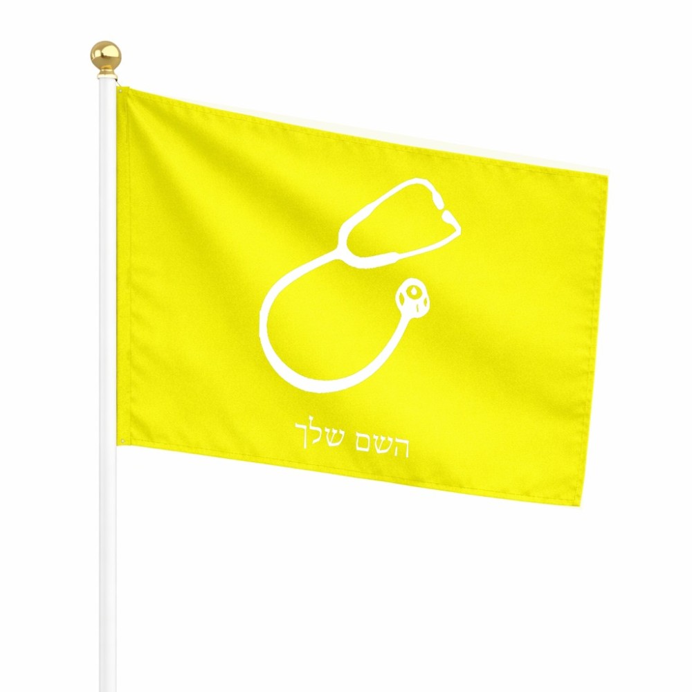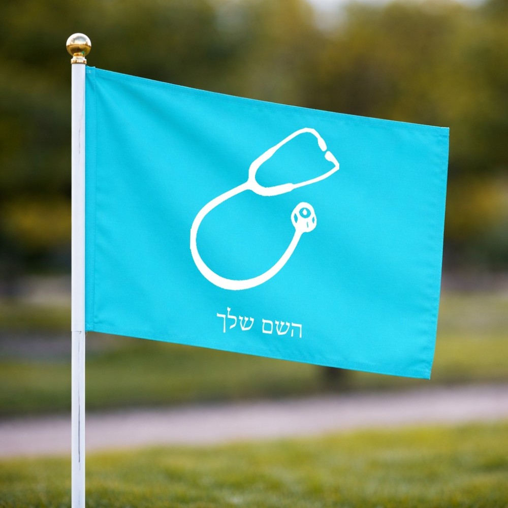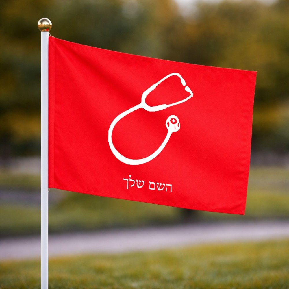דיגלון בעיצוב אישי עם השם שלך בעיצוב סטטוסקופ רופא גודל הדיגלון 20.5 × 14 ס"מ, ההדפסה מתבצעת בשני צידי הדגל, את השם המבוקש ניתן לציין בהזמנה, אם לא צויין אנחנו ניצור קשר לבירור.