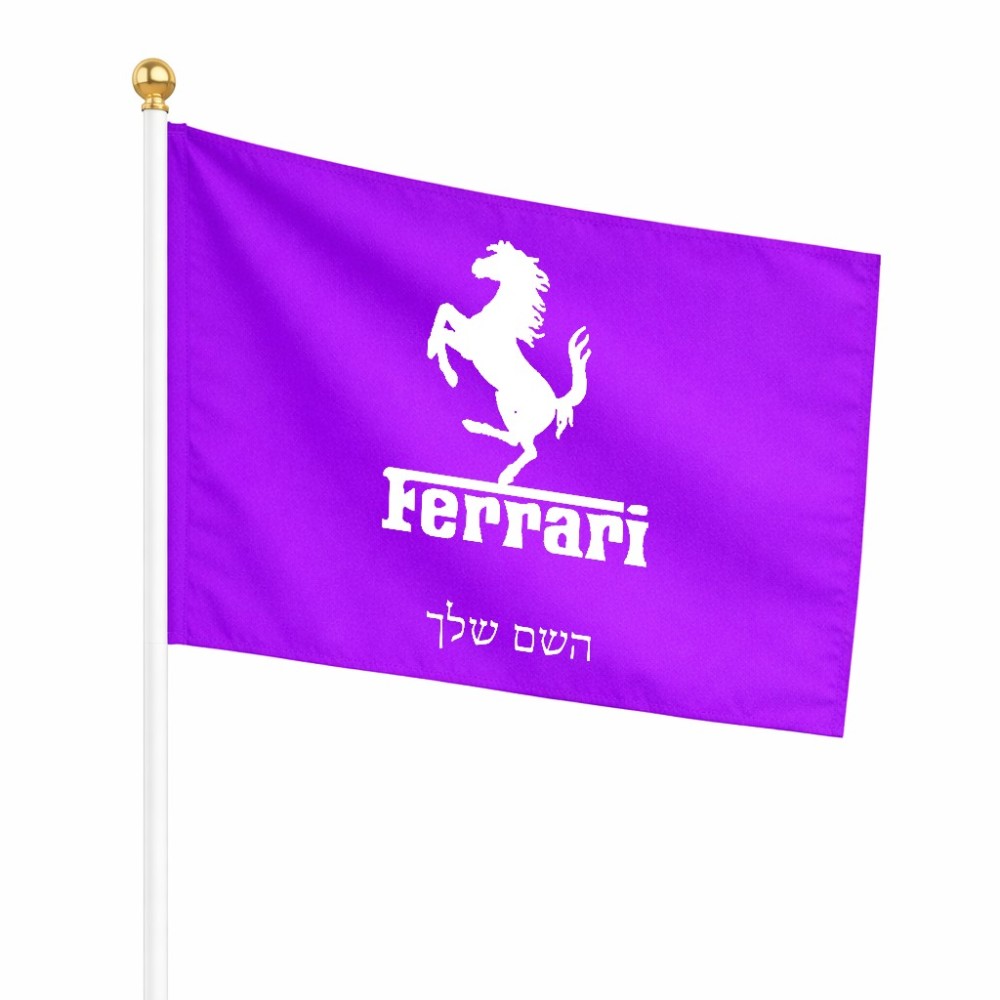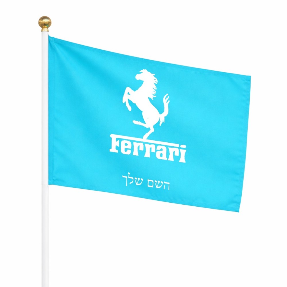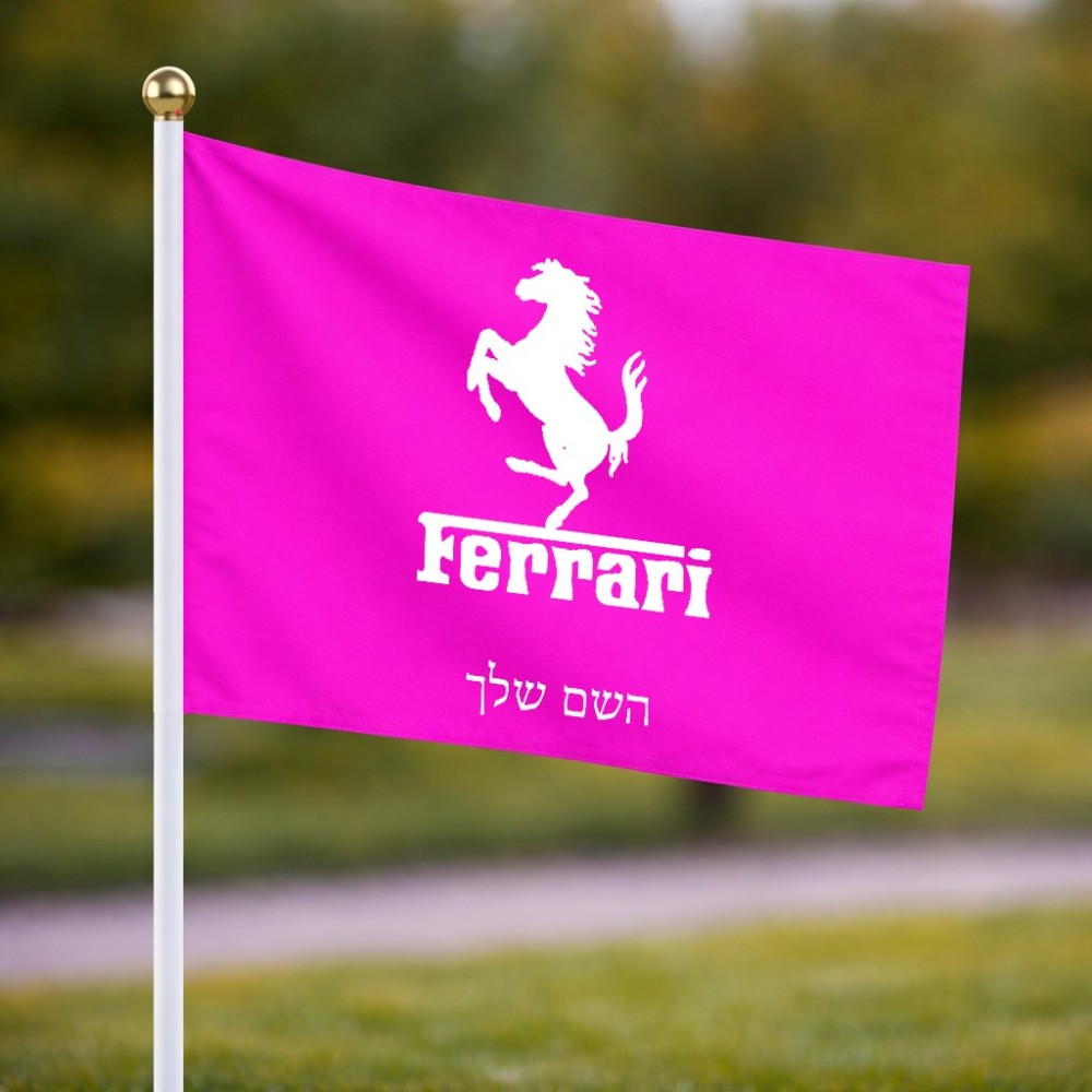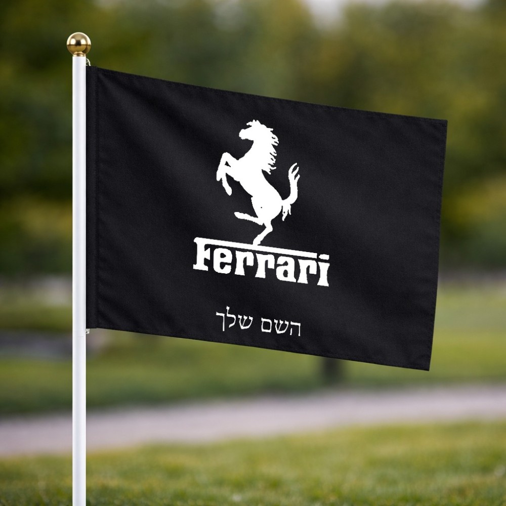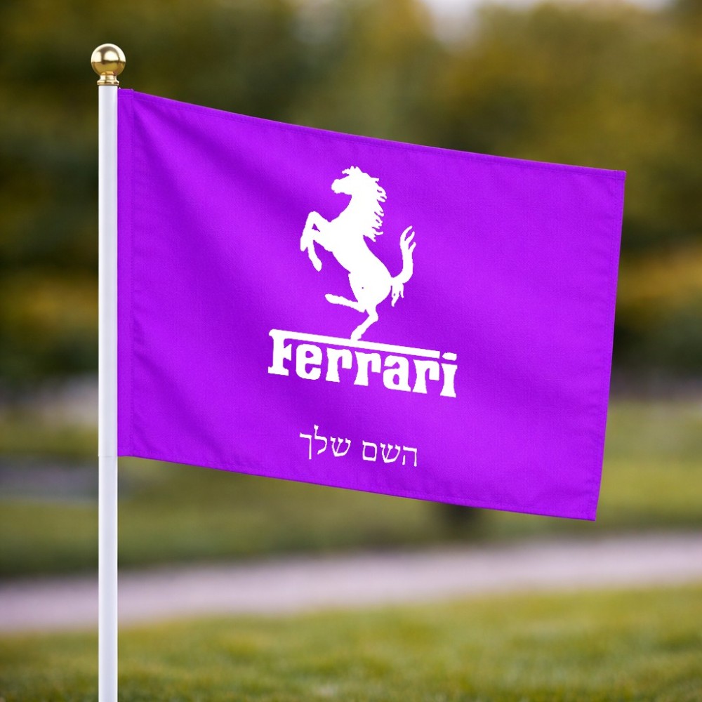 דיגלון בעיצוב אישי עם השם שלך בעיצוב פרארי גודל הדיגלון 20.5 × 14 ס"מ, ההדפסה מתבצעת בשני צידי הדגל, את השם המבוקש ניתן לציין בהזמנה, אם לא צויין אנחנו ניצור קשר לבירור.