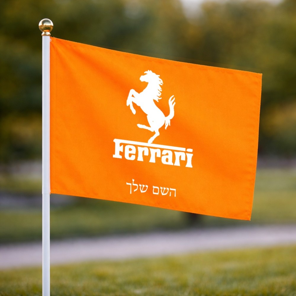דיגלון בעיצוב אישי עם השם שלך בעיצוב פרארי גודל הדיגלון - 20.5 × 14 ס"מ