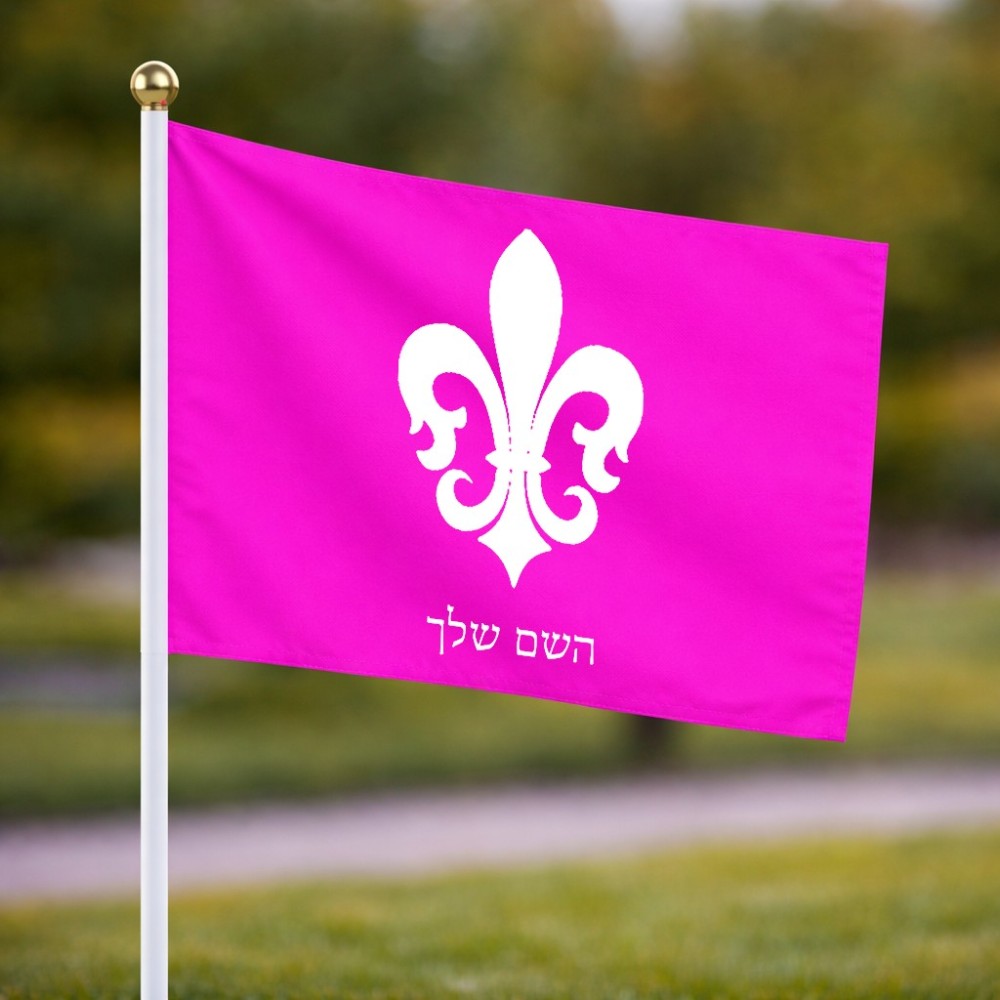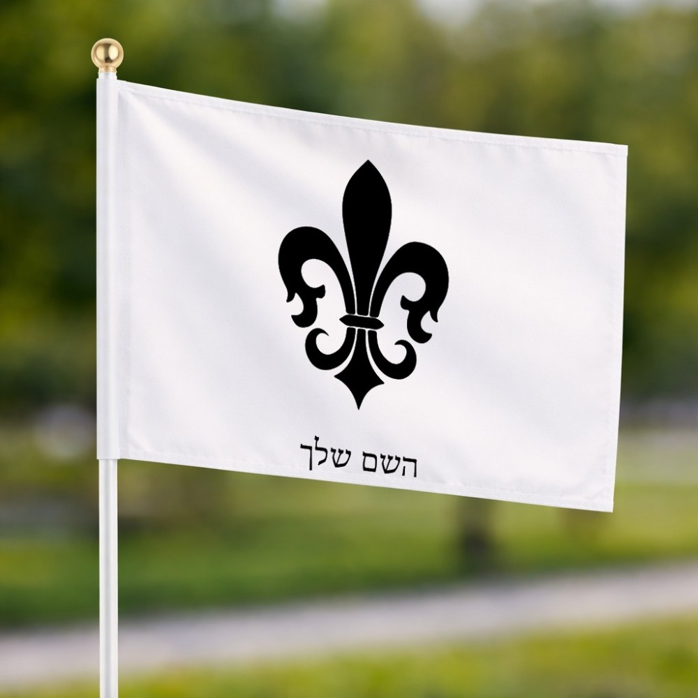 דיגלון בעיצוב אישי עם השם שלך בעיצוב פרחי פרחים - צרפת גודל הדיגלון 20.5 × 14 ס"מ, ההדפסה מתבצעת בשני צידי הדגל, את השם המבוקש ניתן לציין בהזמנה, אם לא צויין אנחנו ניצור קשר לבירור.