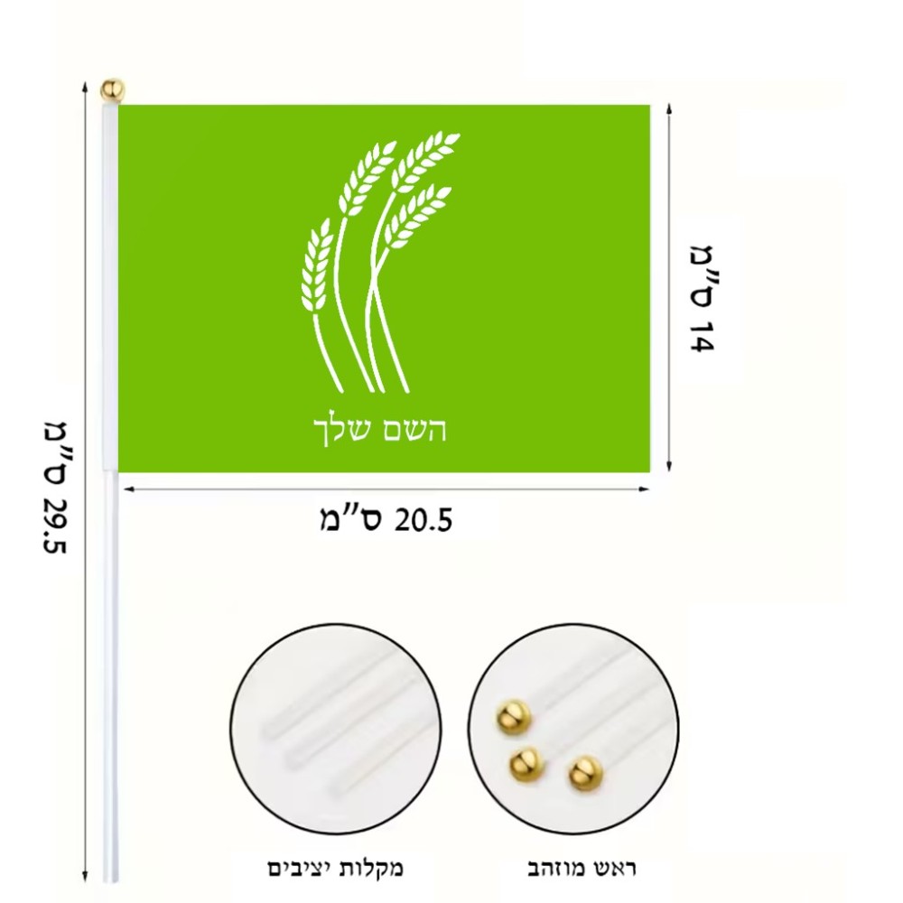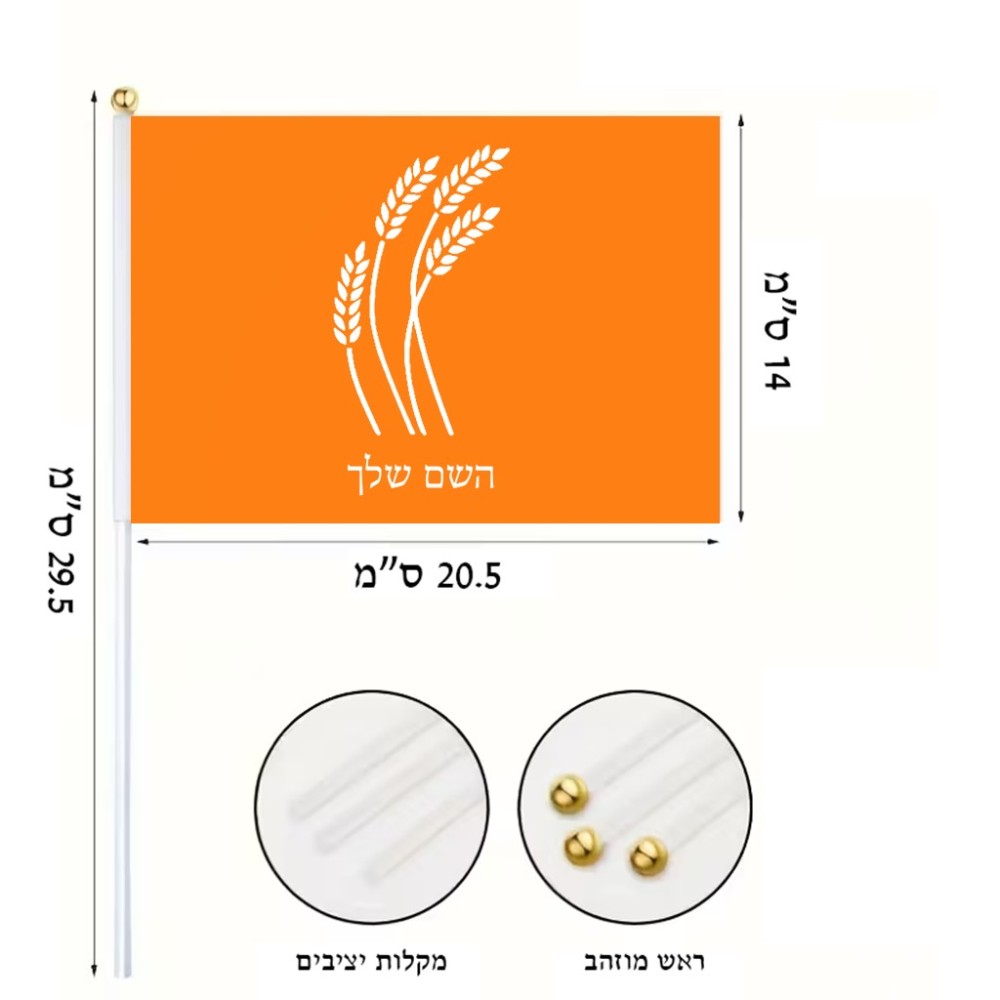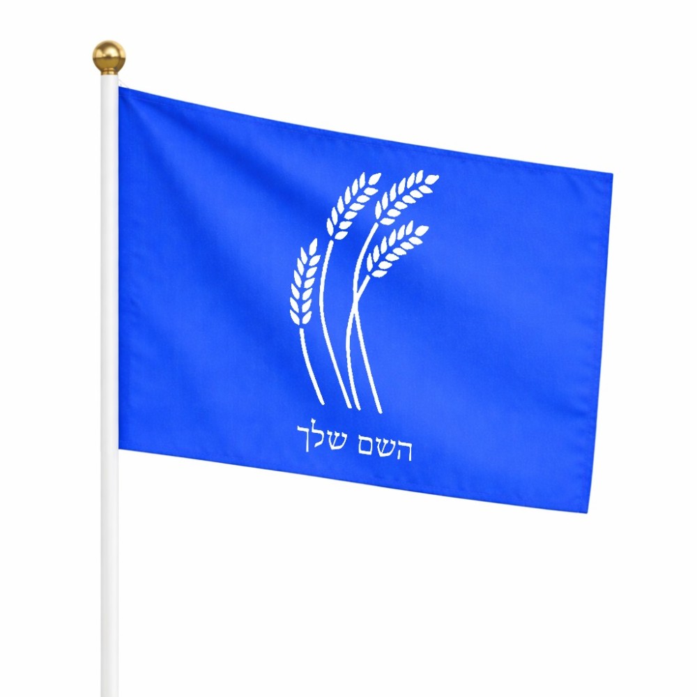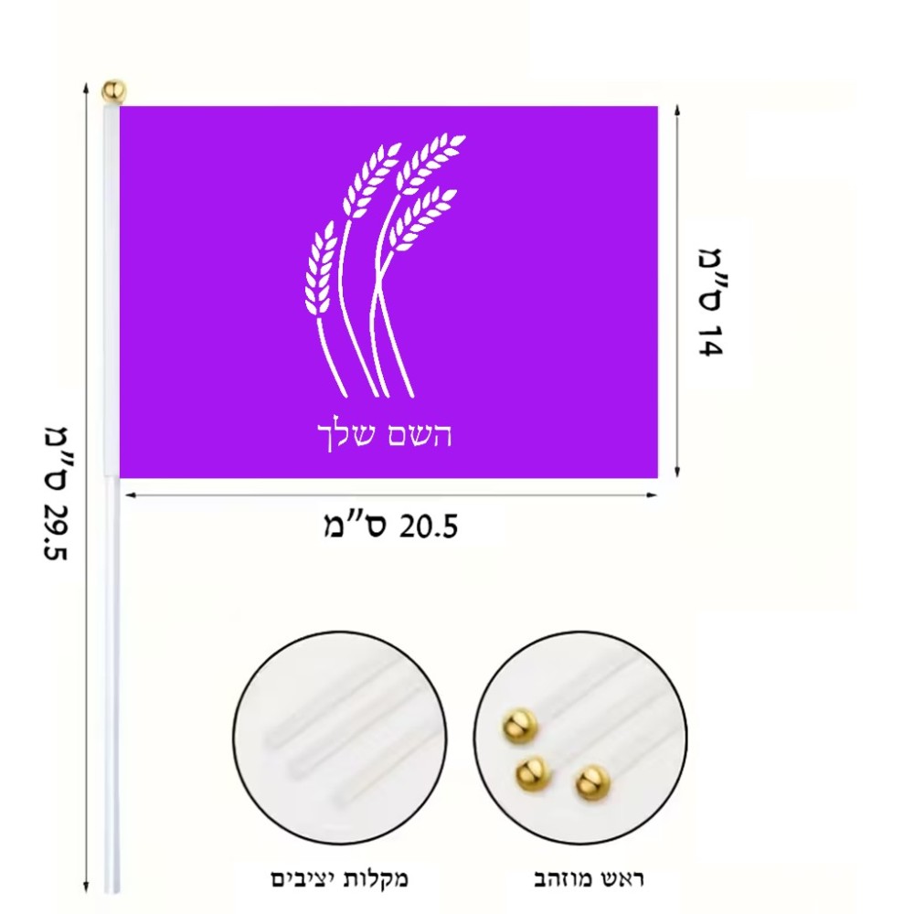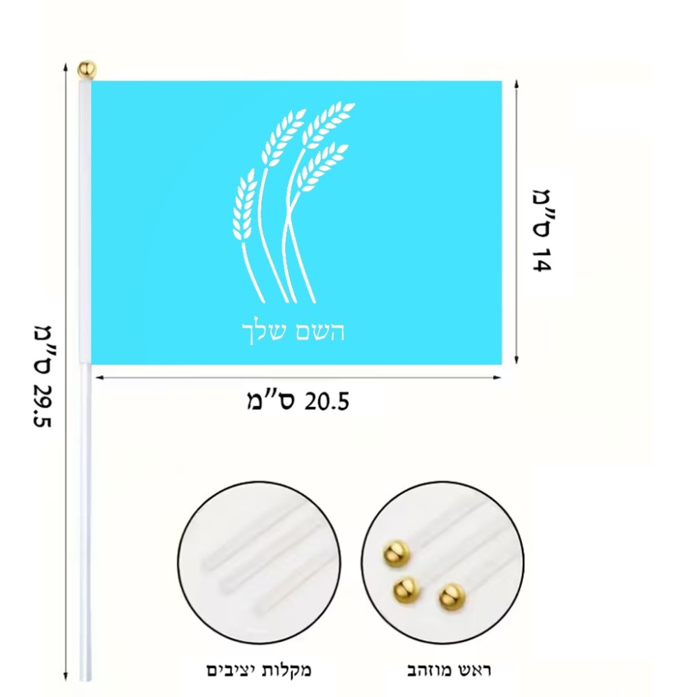 דיגלון בעיצוב אישי עם השם שלך בעיצוב חיטה גלית זהב גודל הדיגלון 20.5 × 14 ס"מ, ההדפסה מתבצעת בשני צידי הדגל, את השם המבוקש ניתן לציין בהזמנה, אם לא צויין אנחנו ניצור קשר לבירור.