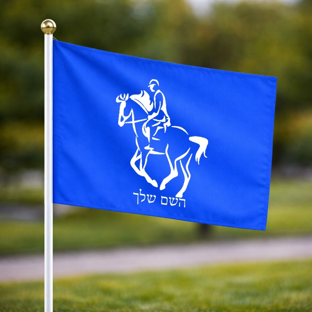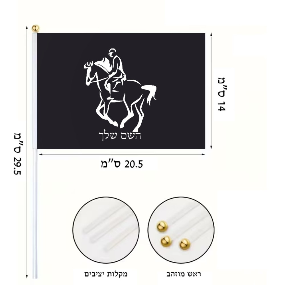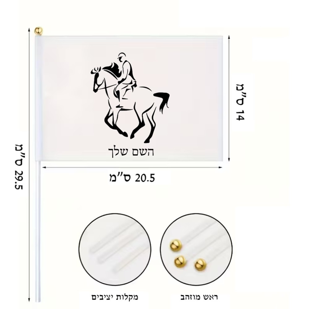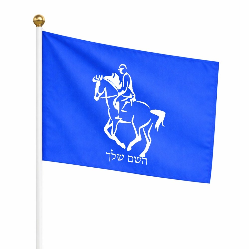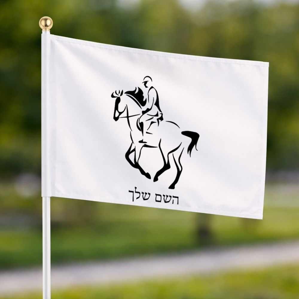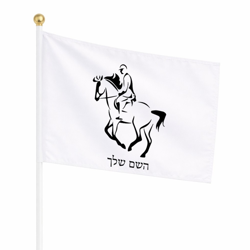 דיגלון בעיצוב אישי עם השם שלך בעיצוב רוכב סוסים 2 גודל הדיגלון 20.5 × 14 ס"מ, ההדפסה מתבצעת בשני צידי הדגל, את השם המבוקש ניתן לציין בהזמנה, אם לא צויין אנחנו ניצור קשר לבירור.