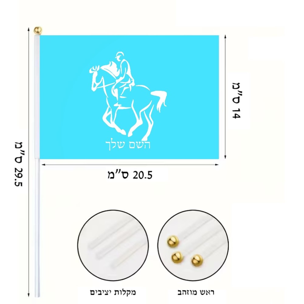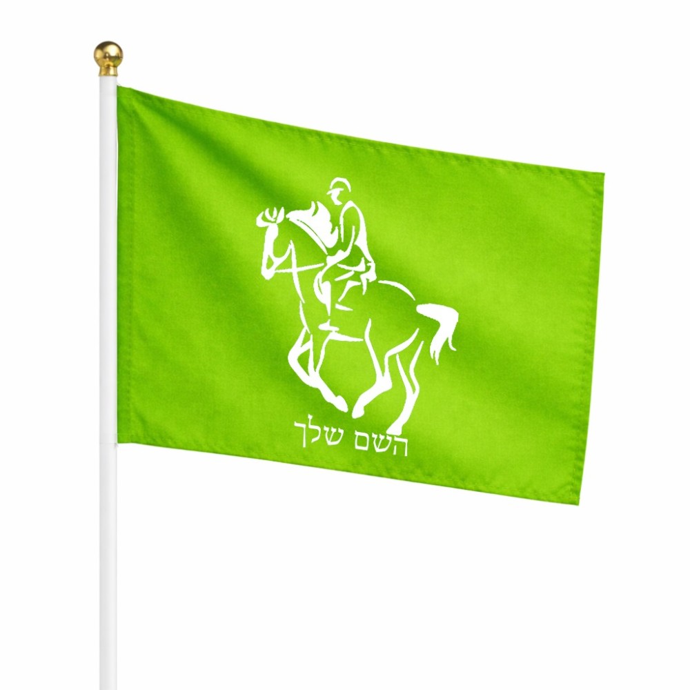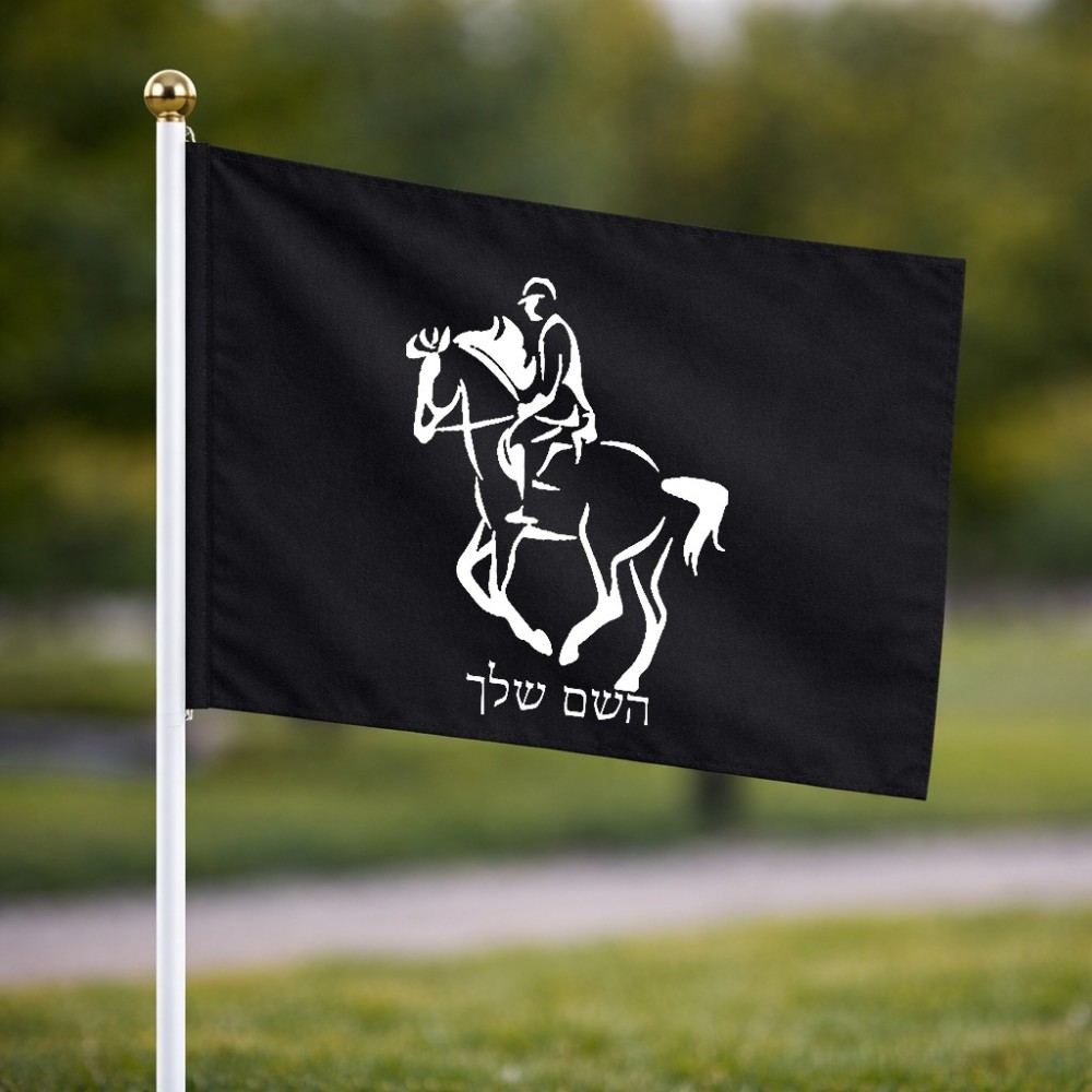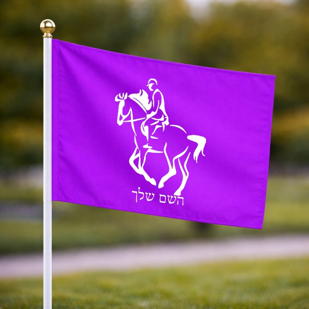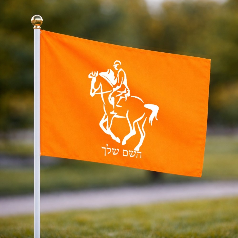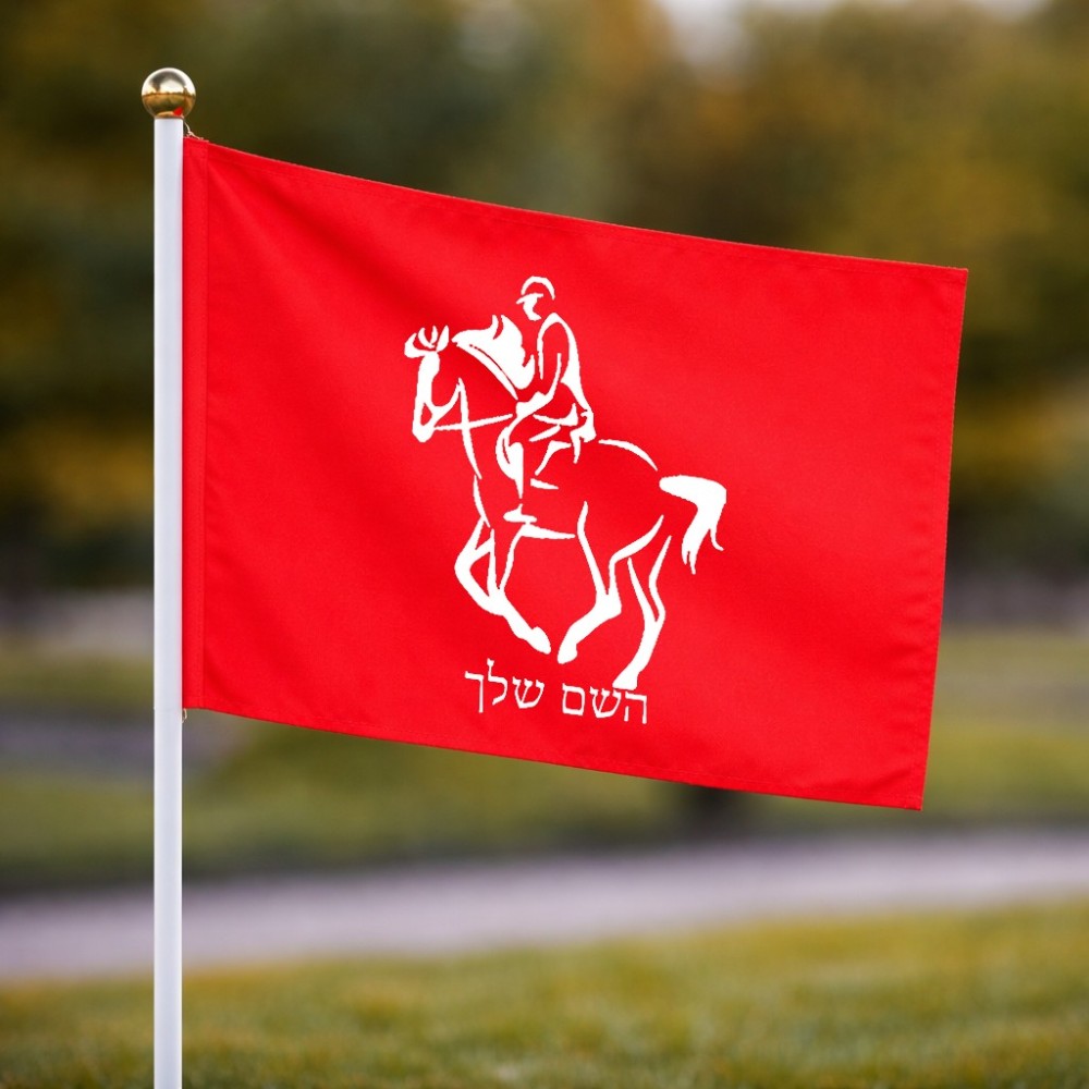 דיגלון בעיצוב אישי עם השם שלך בעיצוב רוכב סוסים 2 גודל הדיגלון 20.5 × 14 ס"מ, ההדפסה מתבצעת בשני צידי הדגל, את השם המבוקש ניתן לציין בהזמנה, אם לא צויין אנחנו ניצור קשר לבירור.