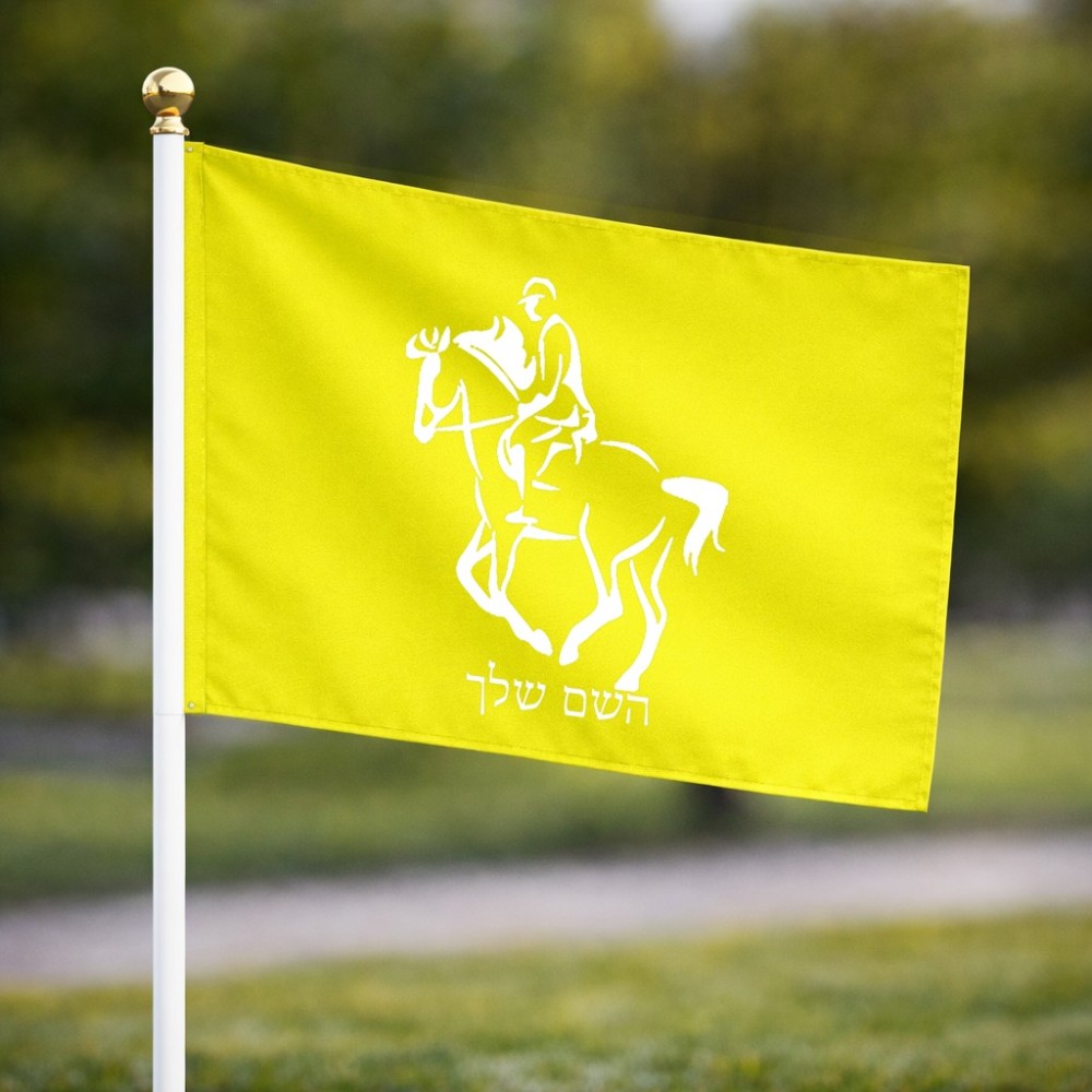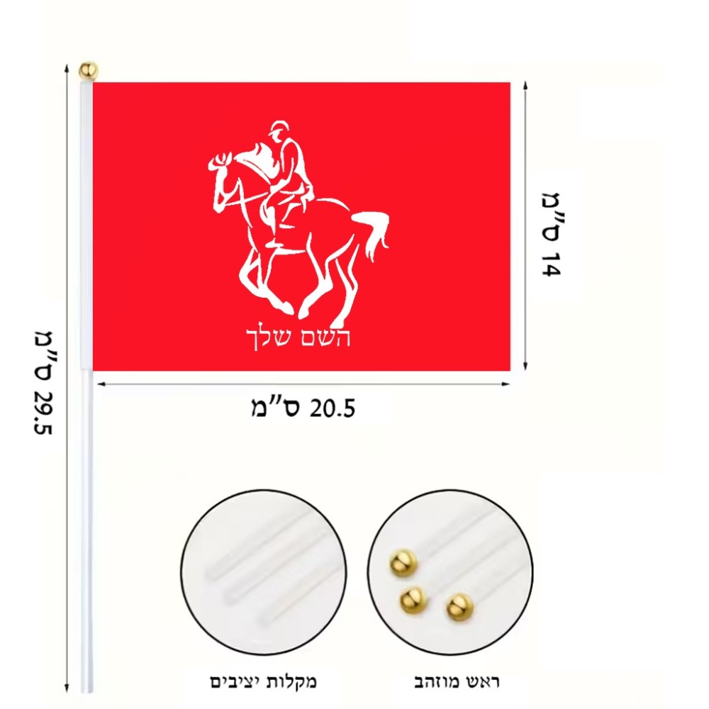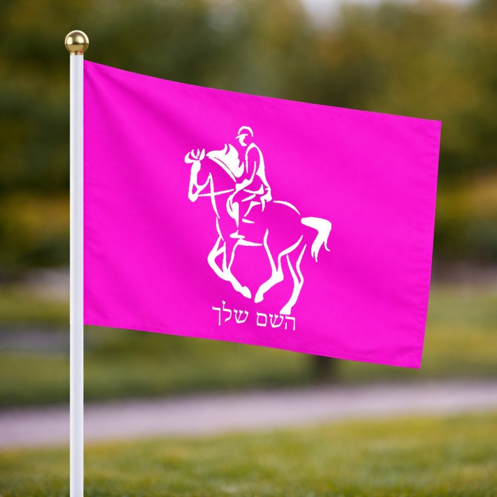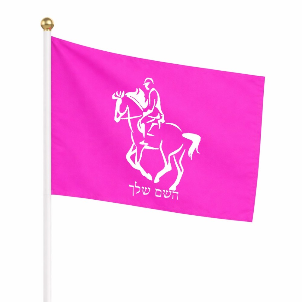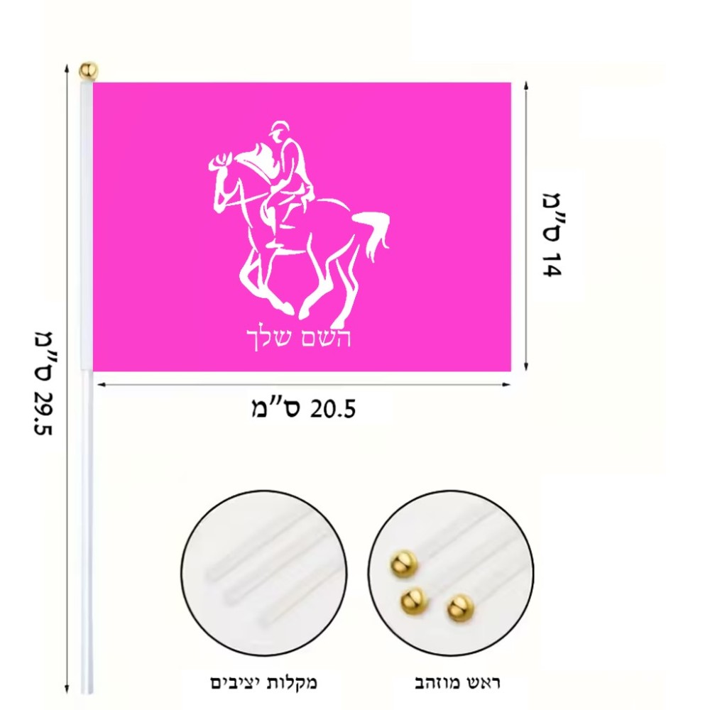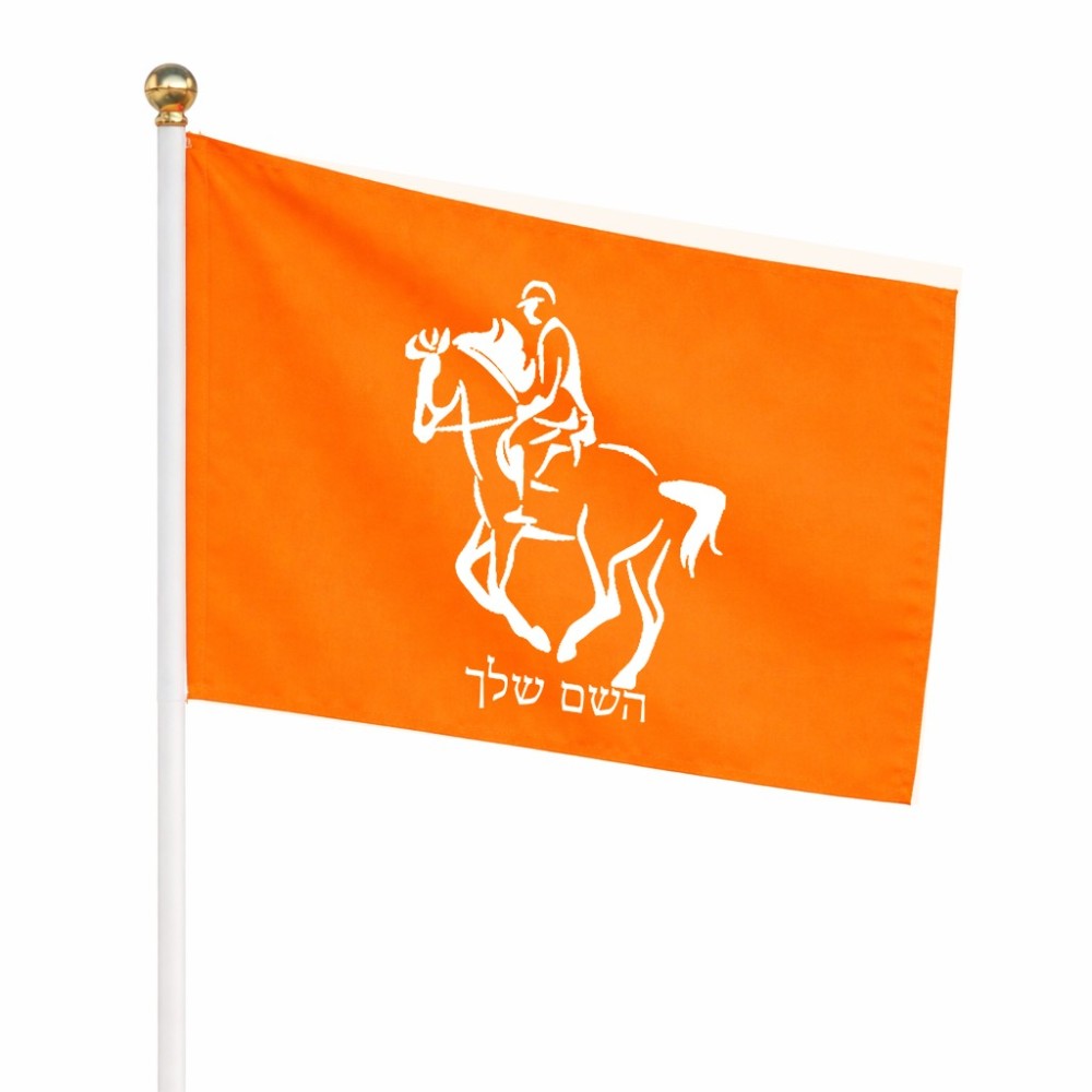דיגלון בעיצוב אישי עם השם שלך בעיצוב רוכב סוסים 2 גודל הדיגלון 20.5 × 14 ס"מ, ההדפסה מתבצעת בשני צידי הדגל, את השם המבוקש ניתן לציין בהזמנה, אם לא צויין אנחנו ניצור קשר לבירור.