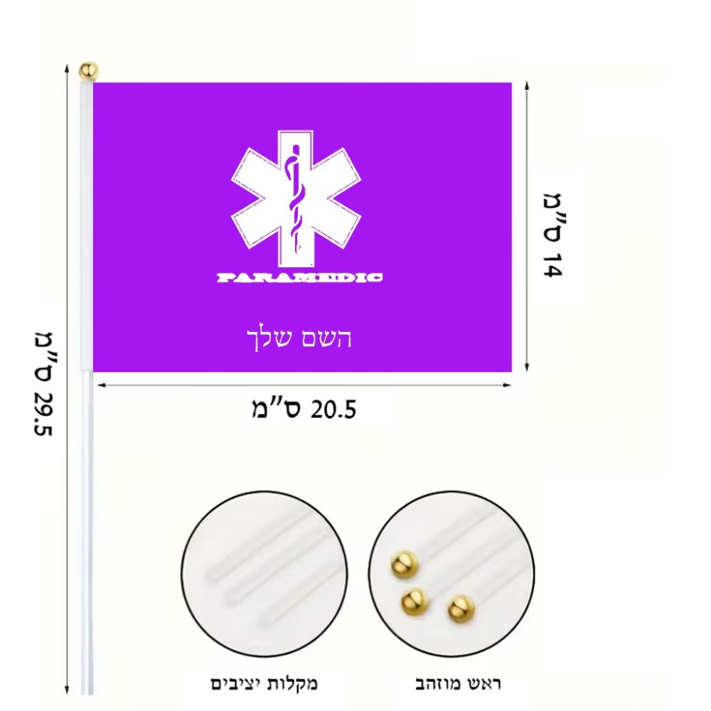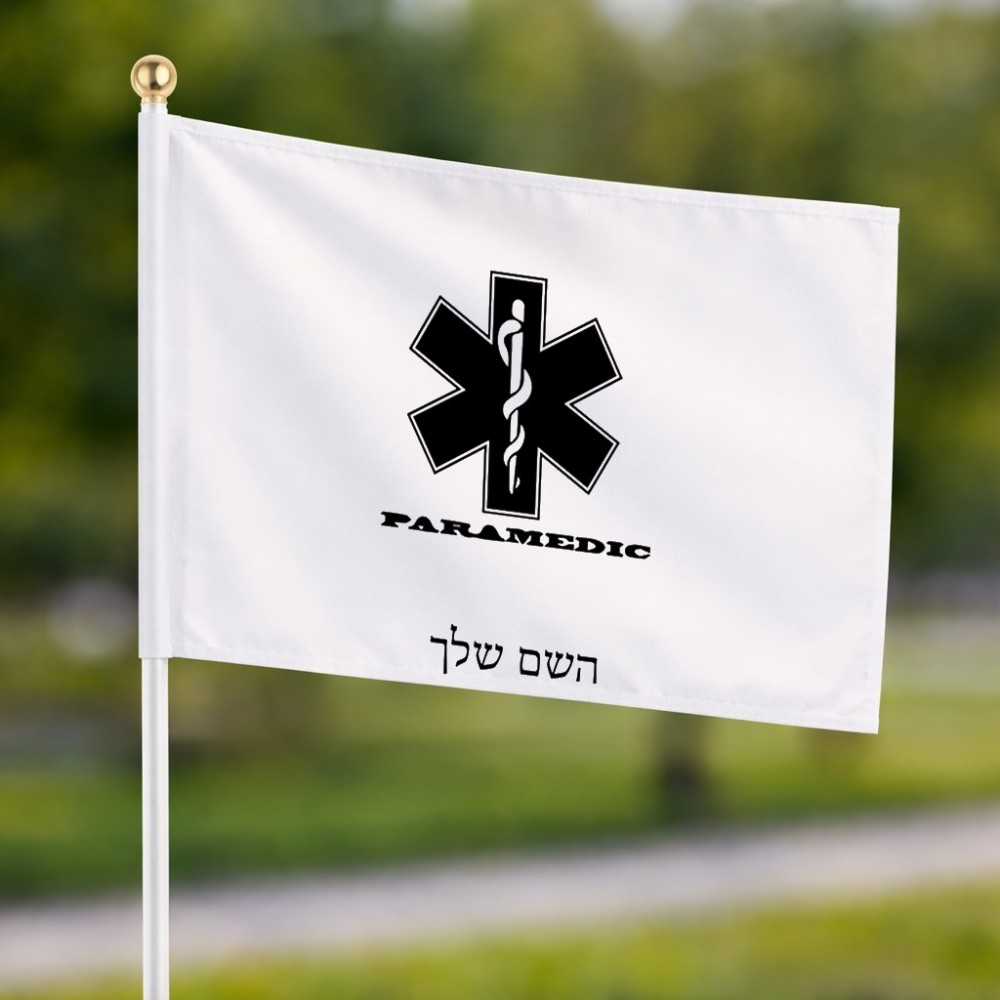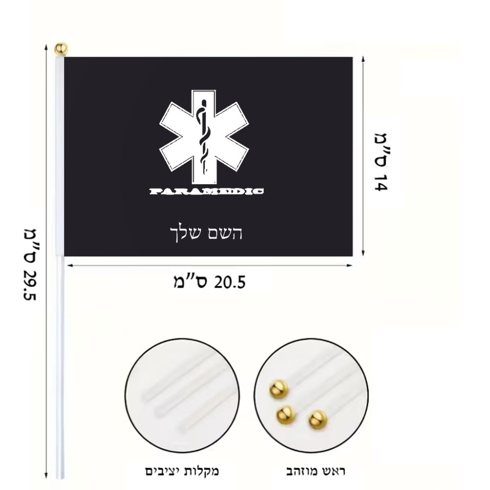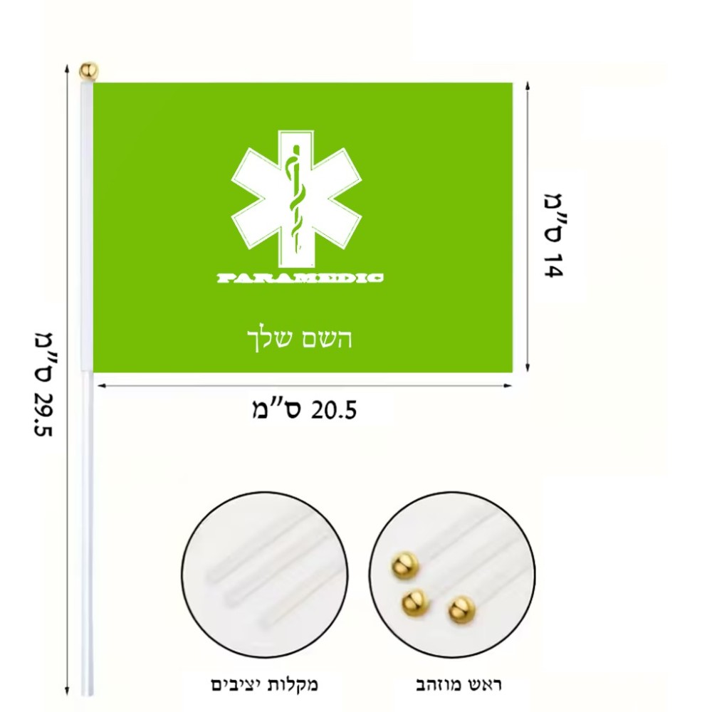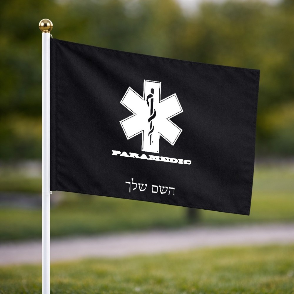 דיגלון בעיצוב אישי עם השם שלך בעיצוב חובש גודל הדיגלון 20.5 × 14 ס"מ, ההדפסה מתבצעת בשני צידי הדגל, את השם המבוקש ניתן לציין בהזמנה, אם לא צויין אנחנו ניצור קשר לבירור.