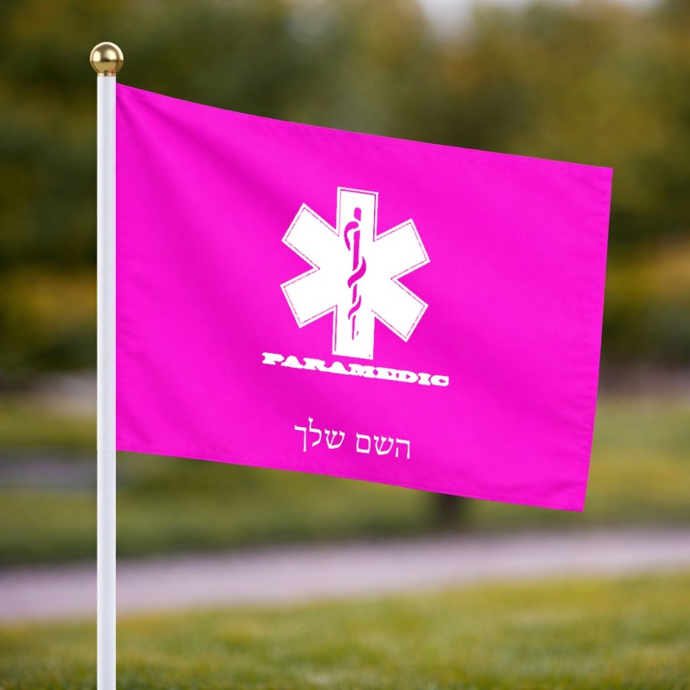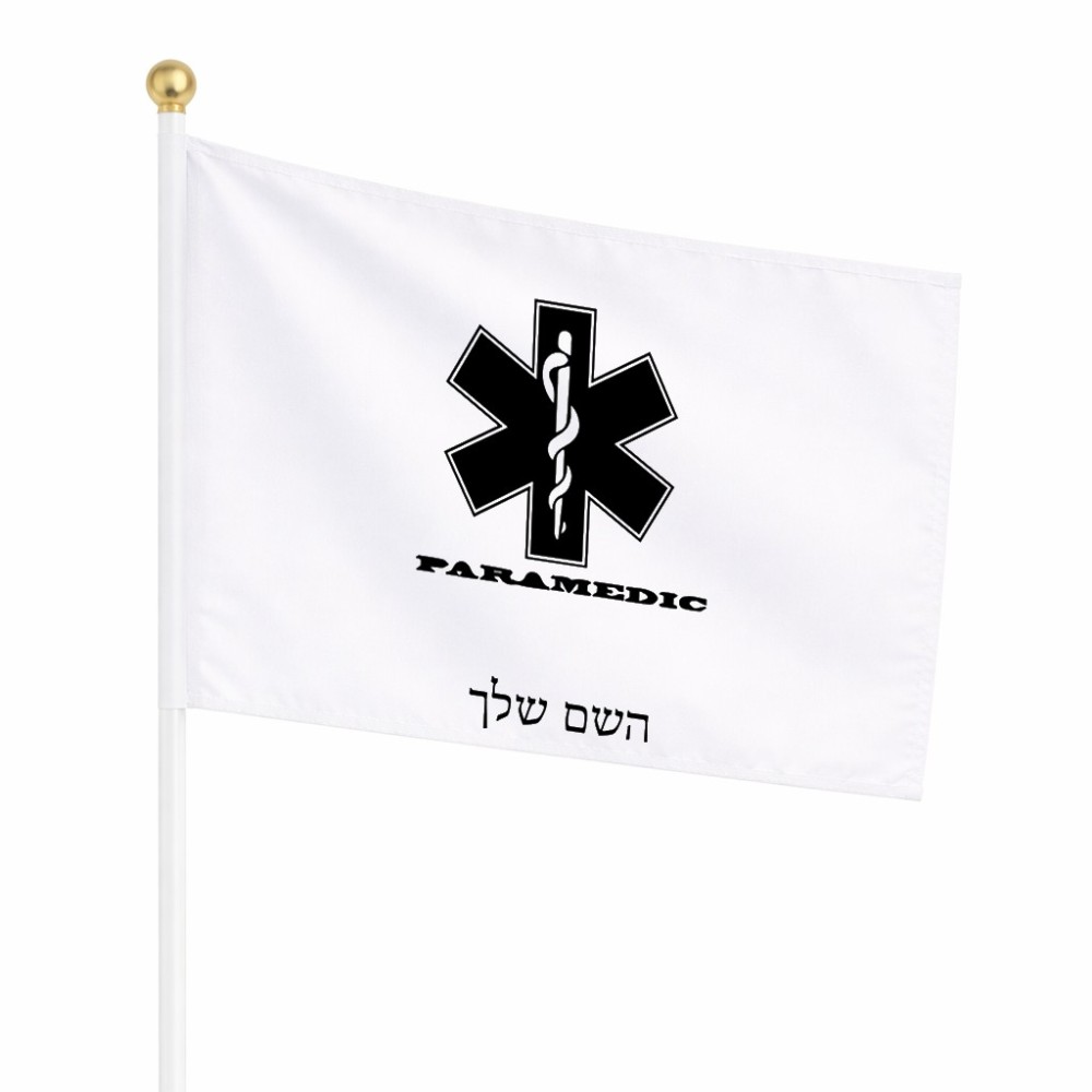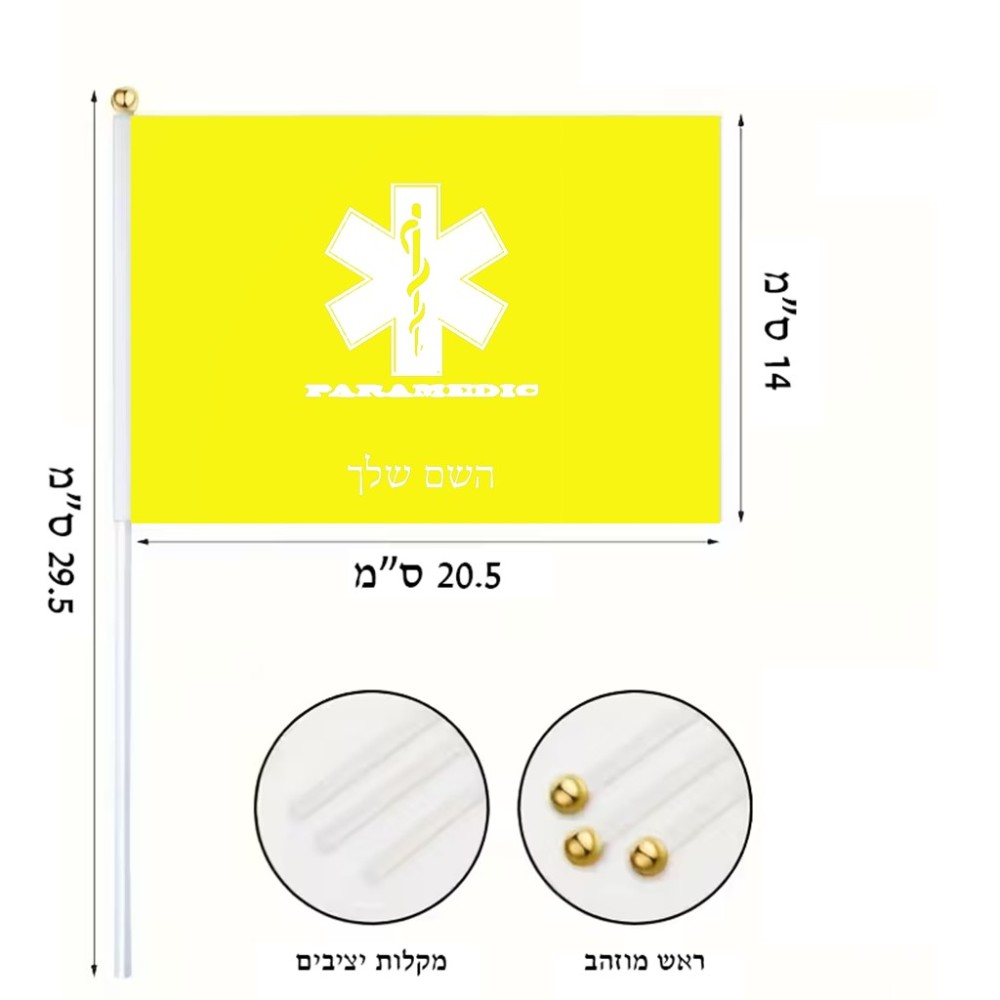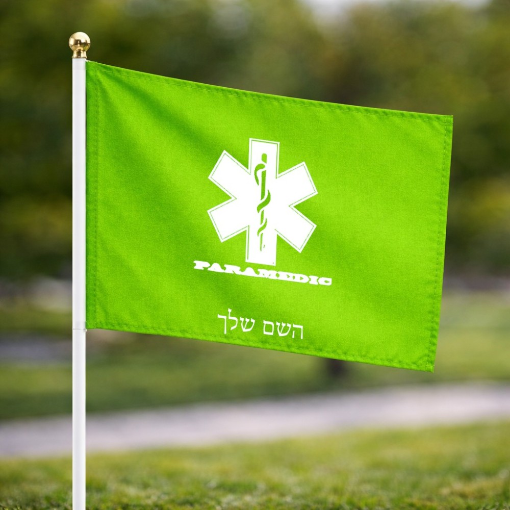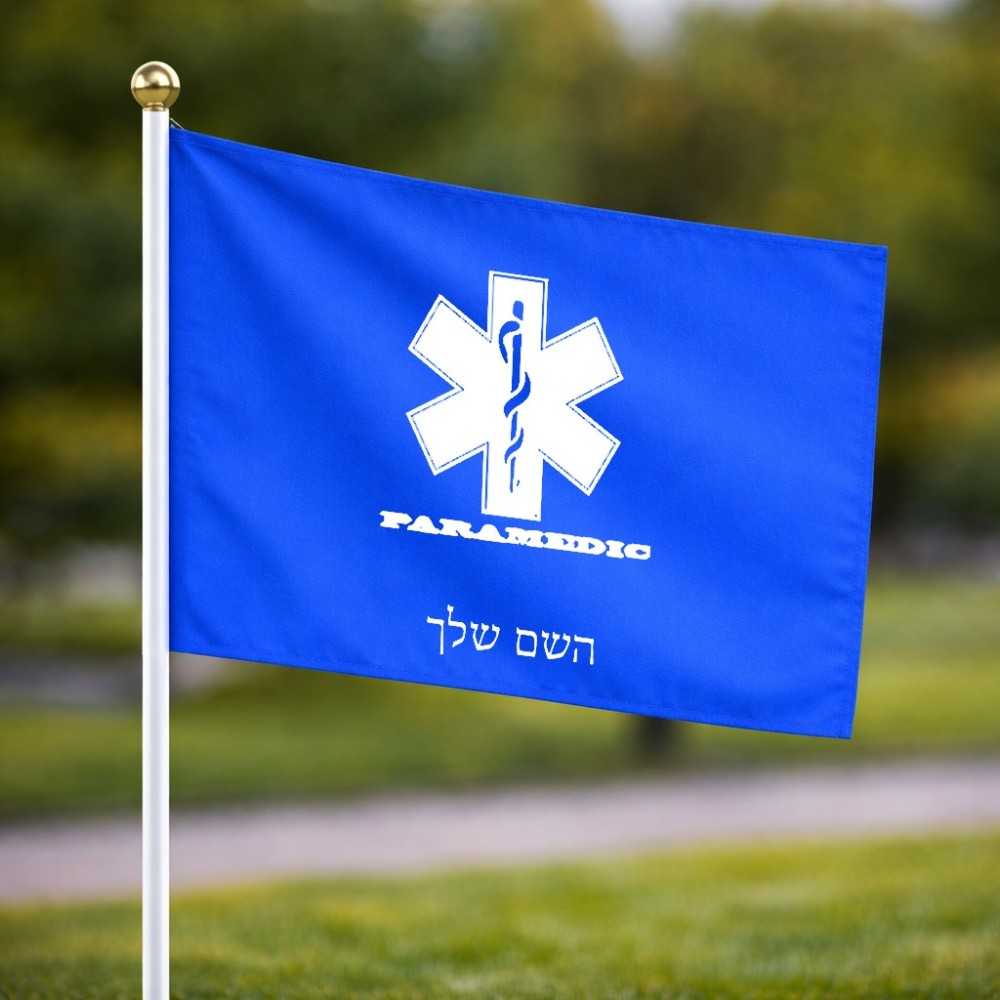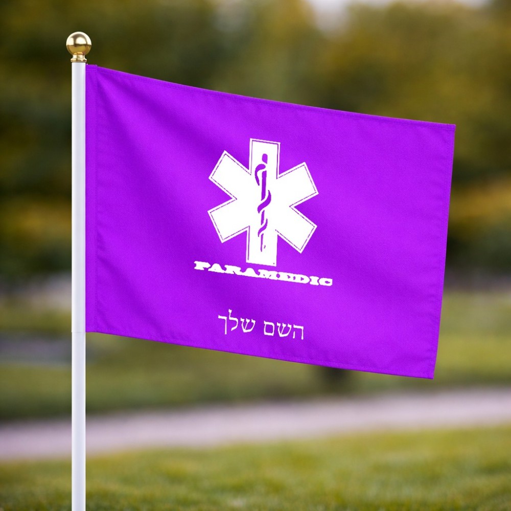 דיגלון בעיצוב אישי עם השם שלך בעיצוב חובש גודל הדיגלון 20.5 × 14 ס"מ, ההדפסה מתבצעת בשני צידי הדגל, את השם המבוקש ניתן לציין בהזמנה, אם לא צויין אנחנו ניצור קשר לבירור.