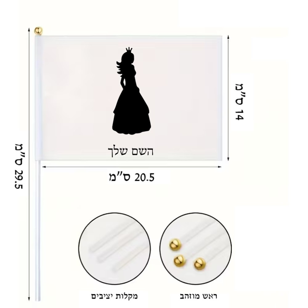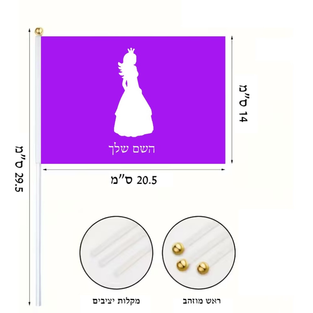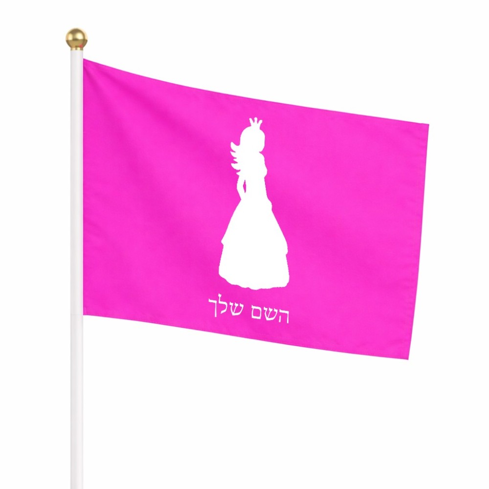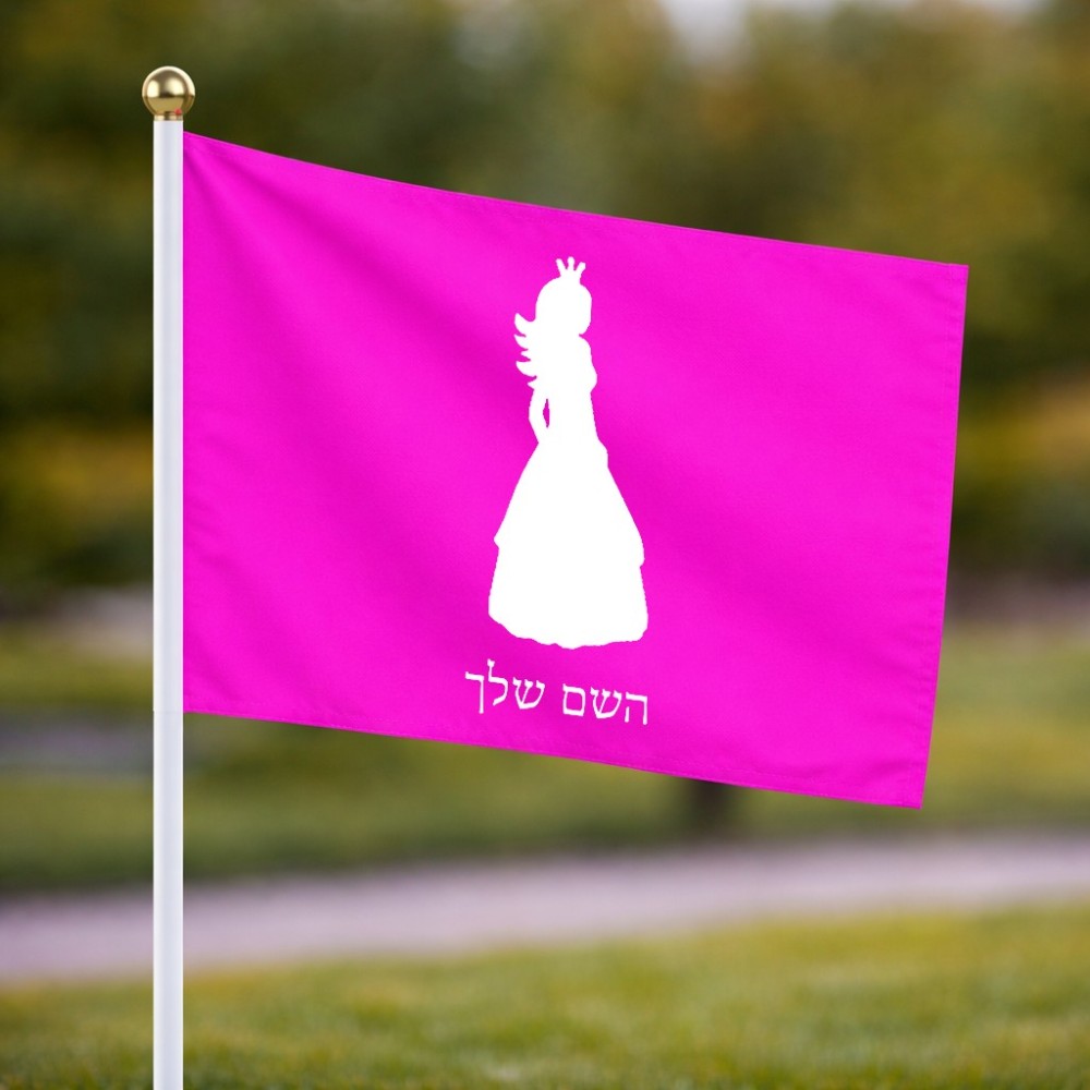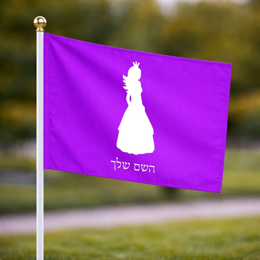 דיגלון בעיצוב אישי עם השם שלך בעיצוב נסיכה גודל הדיגלון 20.5 × 14 ס"מ, ההדפסה מתבצעת בשני צידי הדגל, את השם המבוקש ניתן לציין בהזמנה, אם לא צויין אנחנו ניצור קשר לבירור.