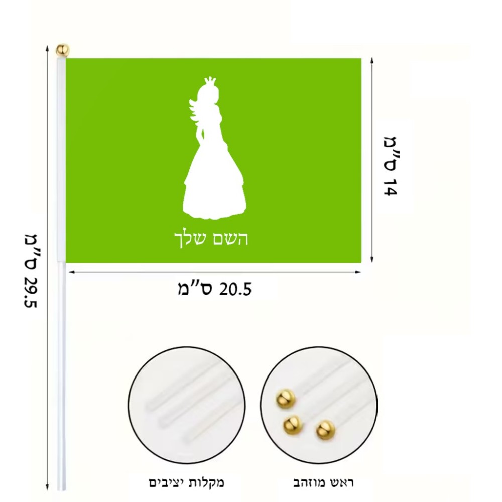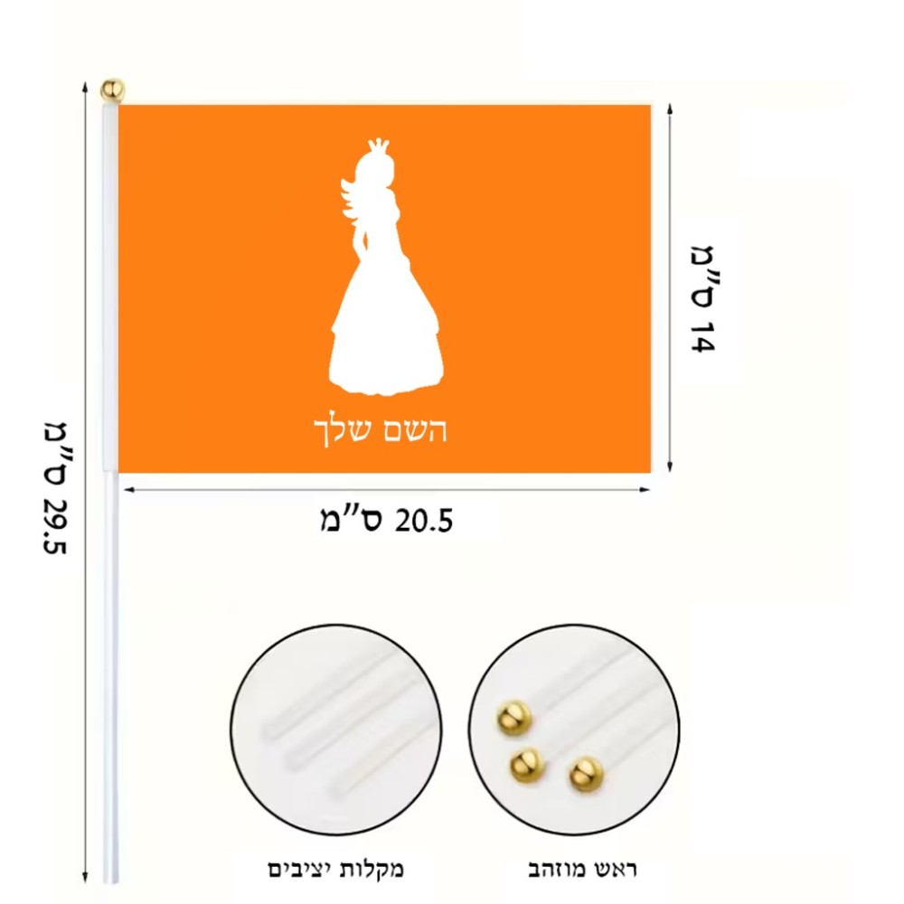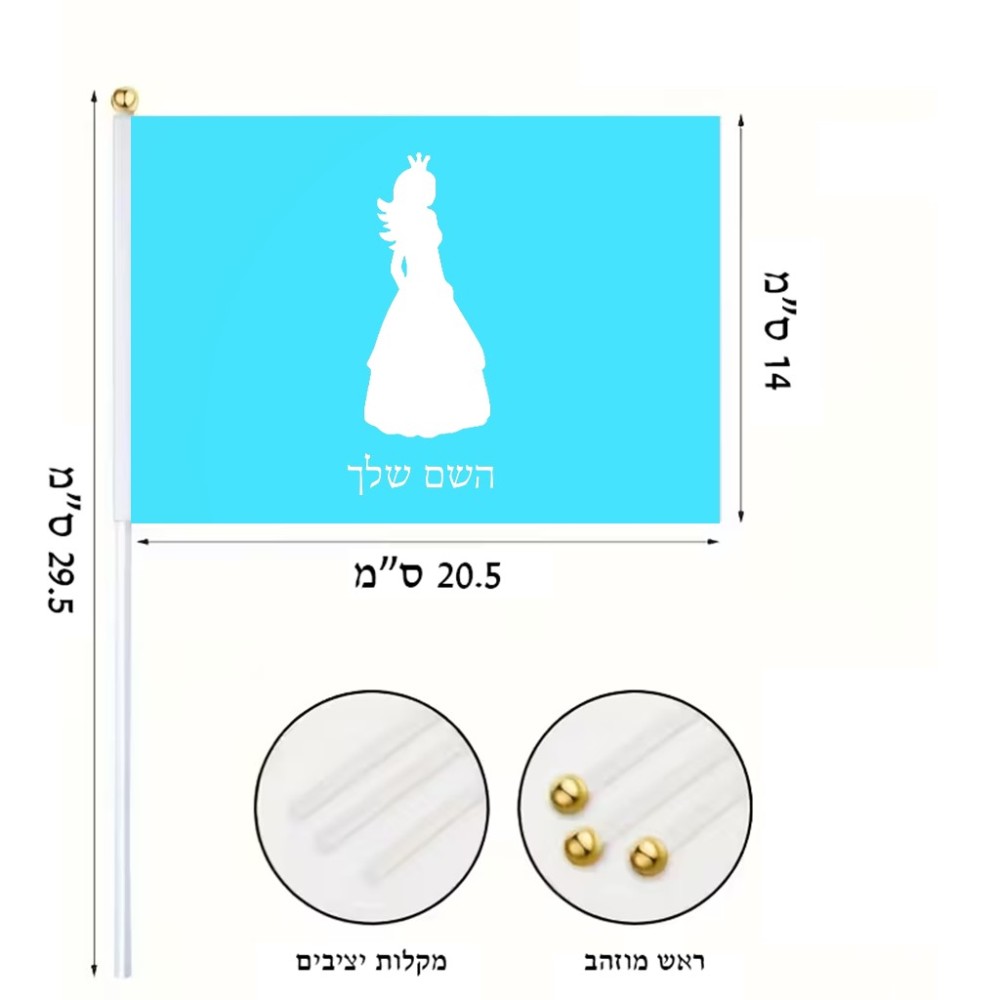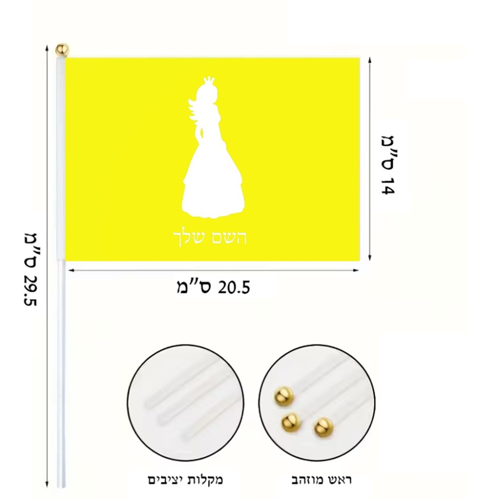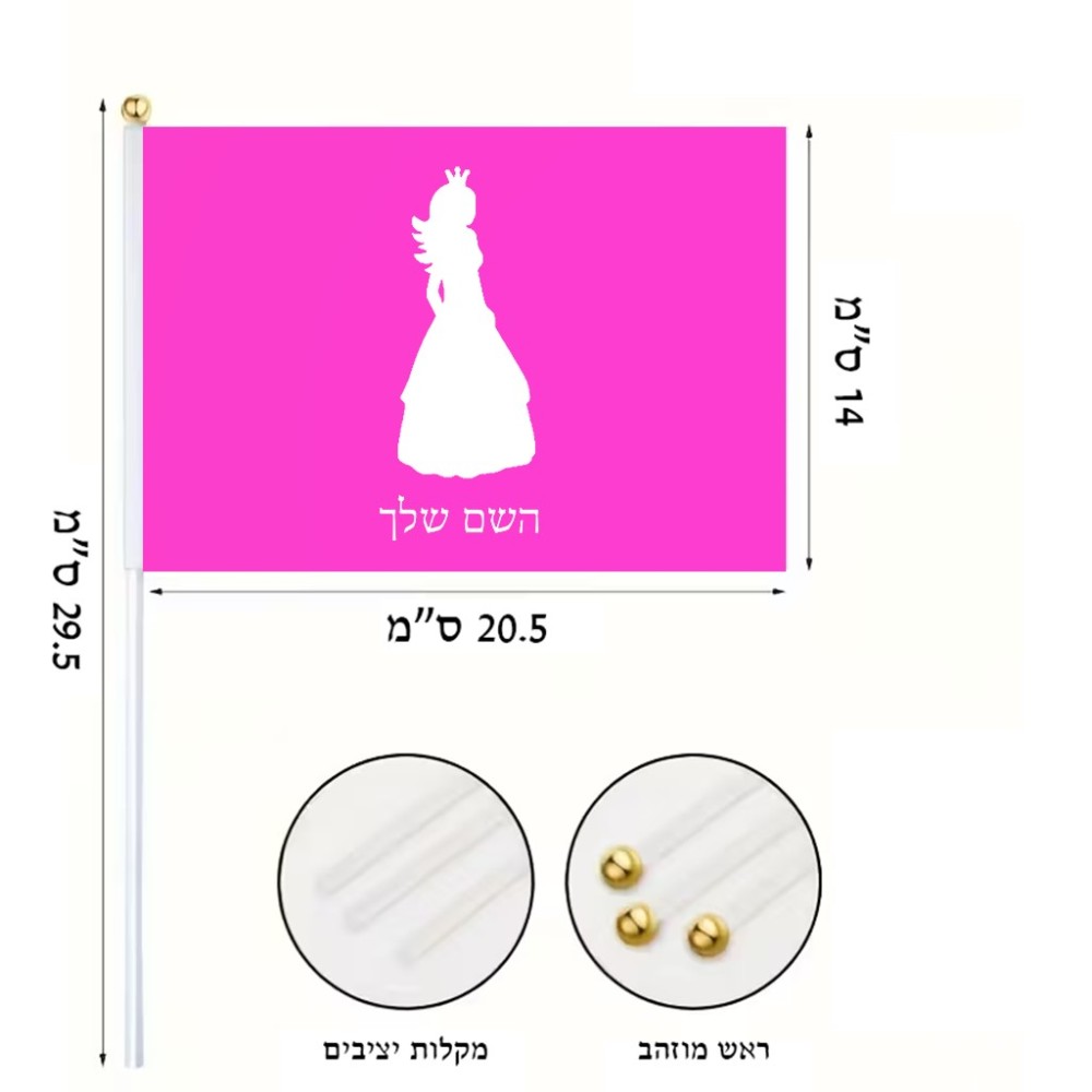 דיגלון בעיצוב אישי עם השם שלך בעיצוב נסיכה גודל הדיגלון 20.5 × 14 ס"מ, ההדפסה מתבצעת בשני צידי הדגל, את השם המבוקש ניתן לציין בהזמנה, אם לא צויין אנחנו ניצור קשר לבירור.