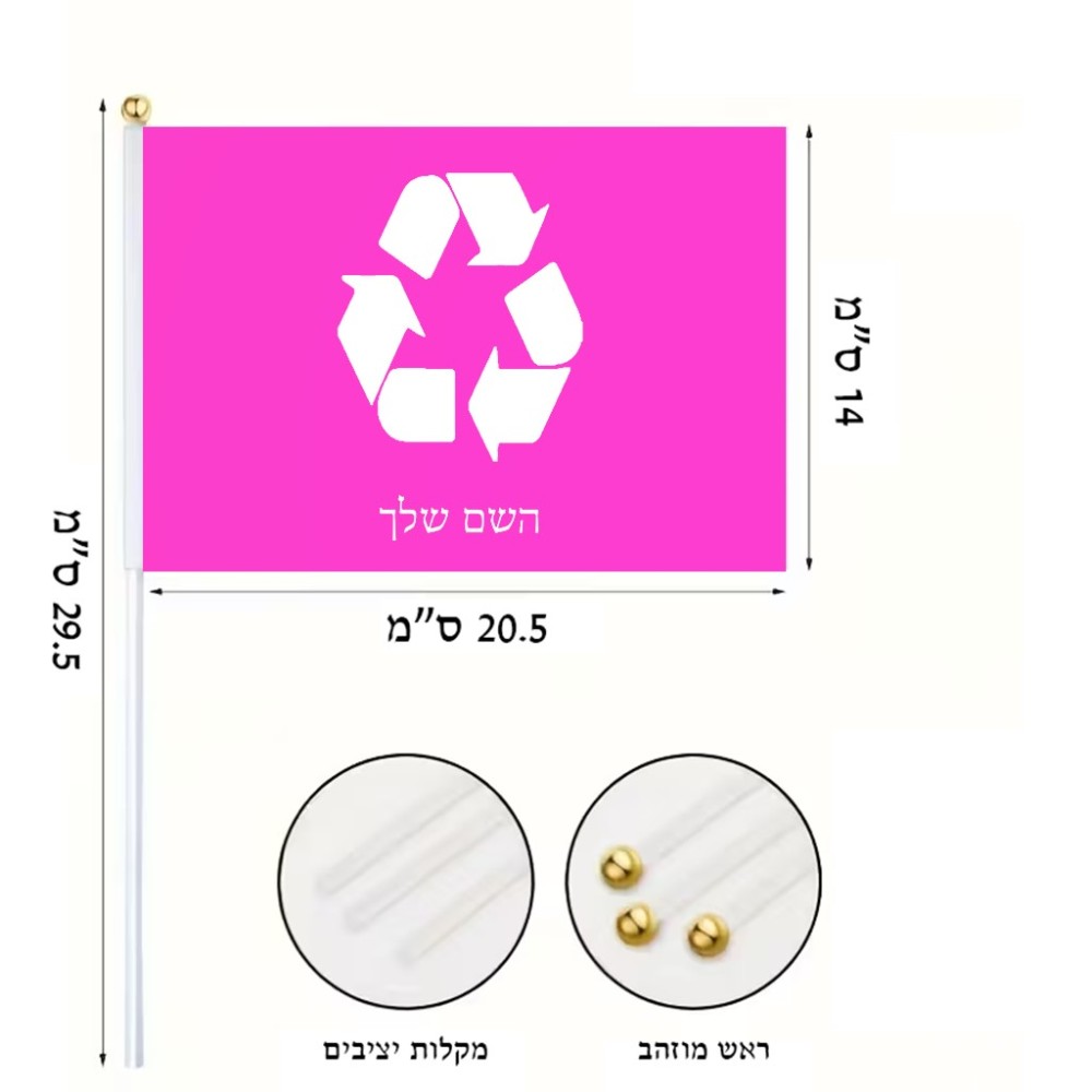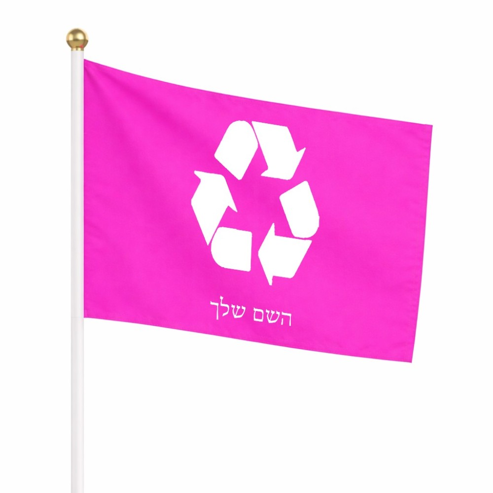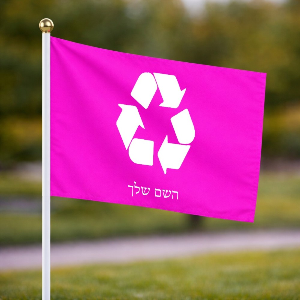 דיגלון בעיצוב אישי עם השם שלך בעיצוב למחזר גודל הדיגלון 20.5 × 14 ס"מ, ההדפסה מתבצעת בשני צידי הדגל, את השם המבוקש ניתן לציין בהזמנה, אם לא צויין אנחנו ניצור קשר לבירור.