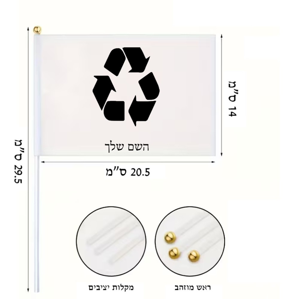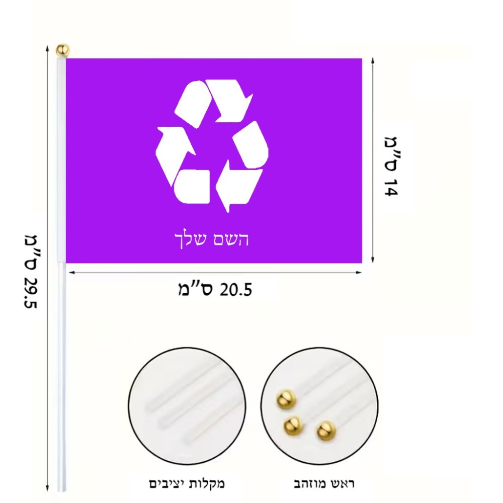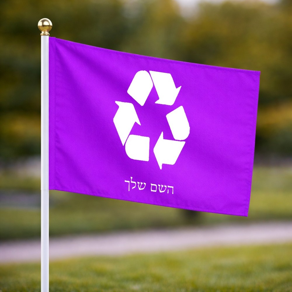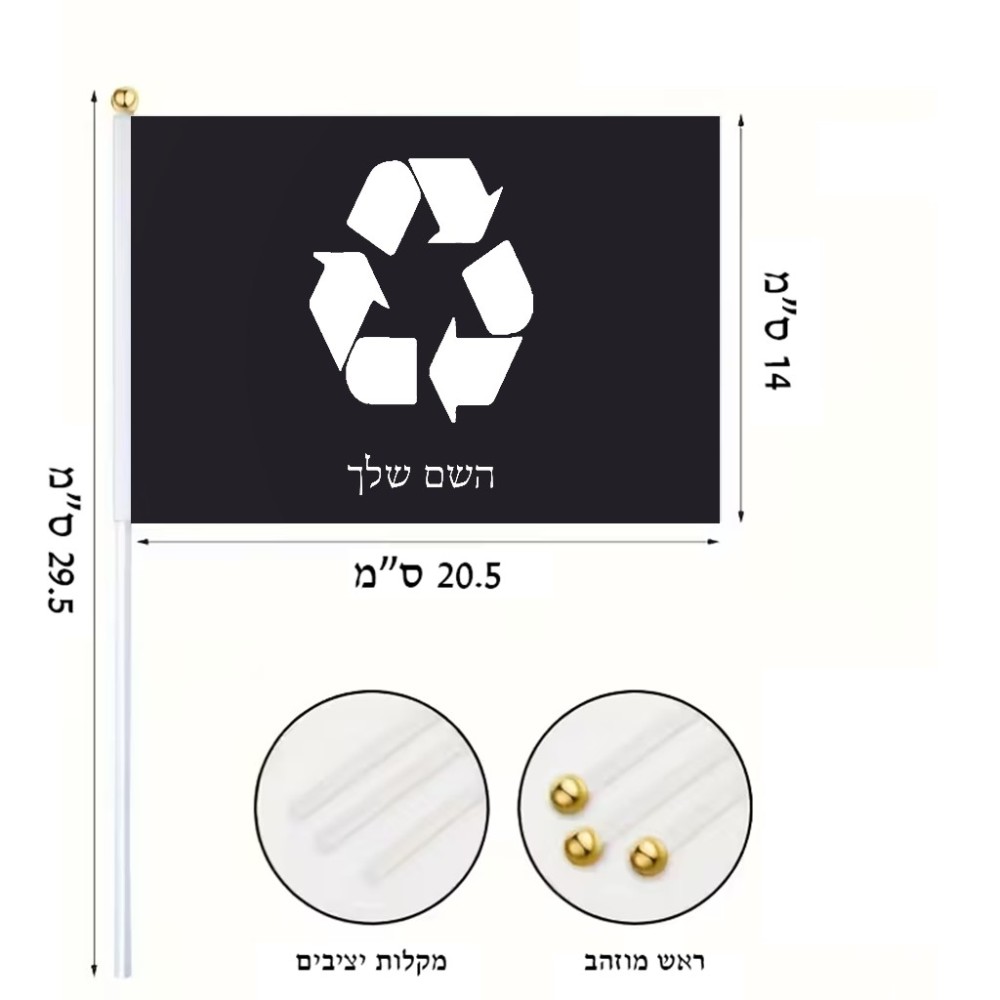 דיגלון בעיצוב אישי עם השם שלך בעיצוב למחזר גודל הדיגלון 20.5 × 14 ס"מ, ההדפסה מתבצעת בשני צידי הדגל, את השם המבוקש ניתן לציין בהזמנה, אם לא צויין אנחנו ניצור קשר לבירור.