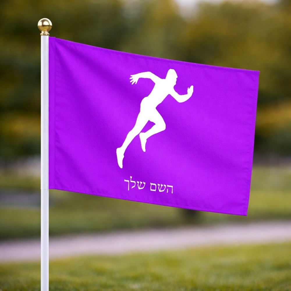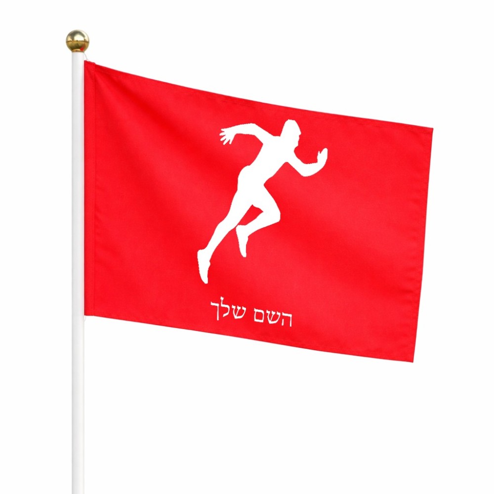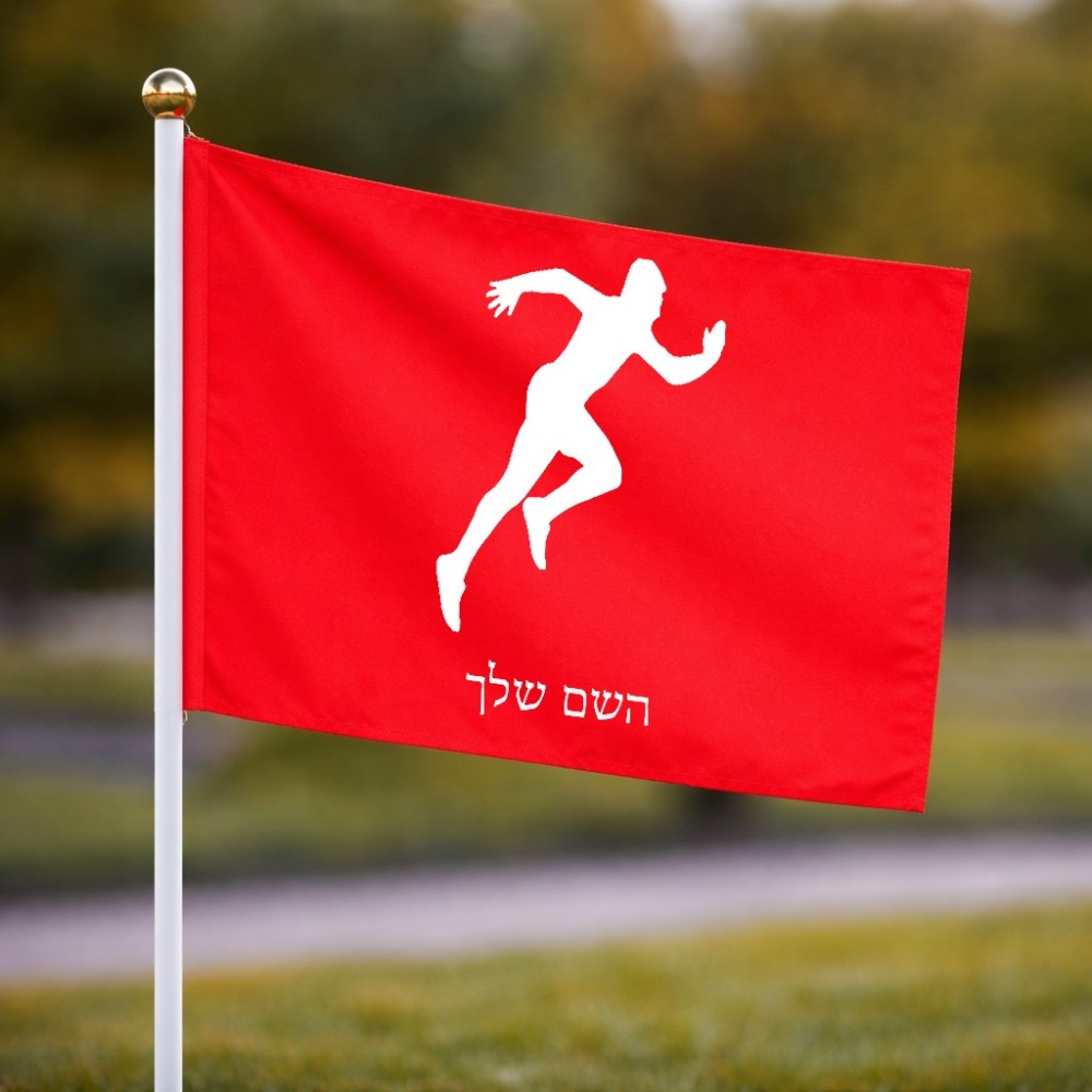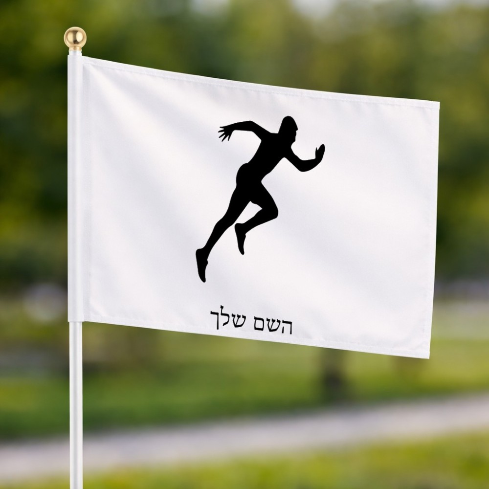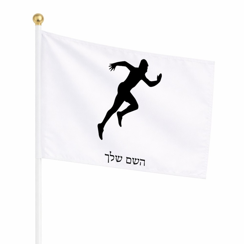 דיגלון בעיצוב אישי עם השם שלך בעיצוב רץ גודל הדיגלון 20.5 × 14 ס"מ, ההדפסה מתבצעת בשני צידי הדגל, את השם המבוקש ניתן לציין בהזמנה, אם לא צויין אנחנו ניצור קשר לבירור.
