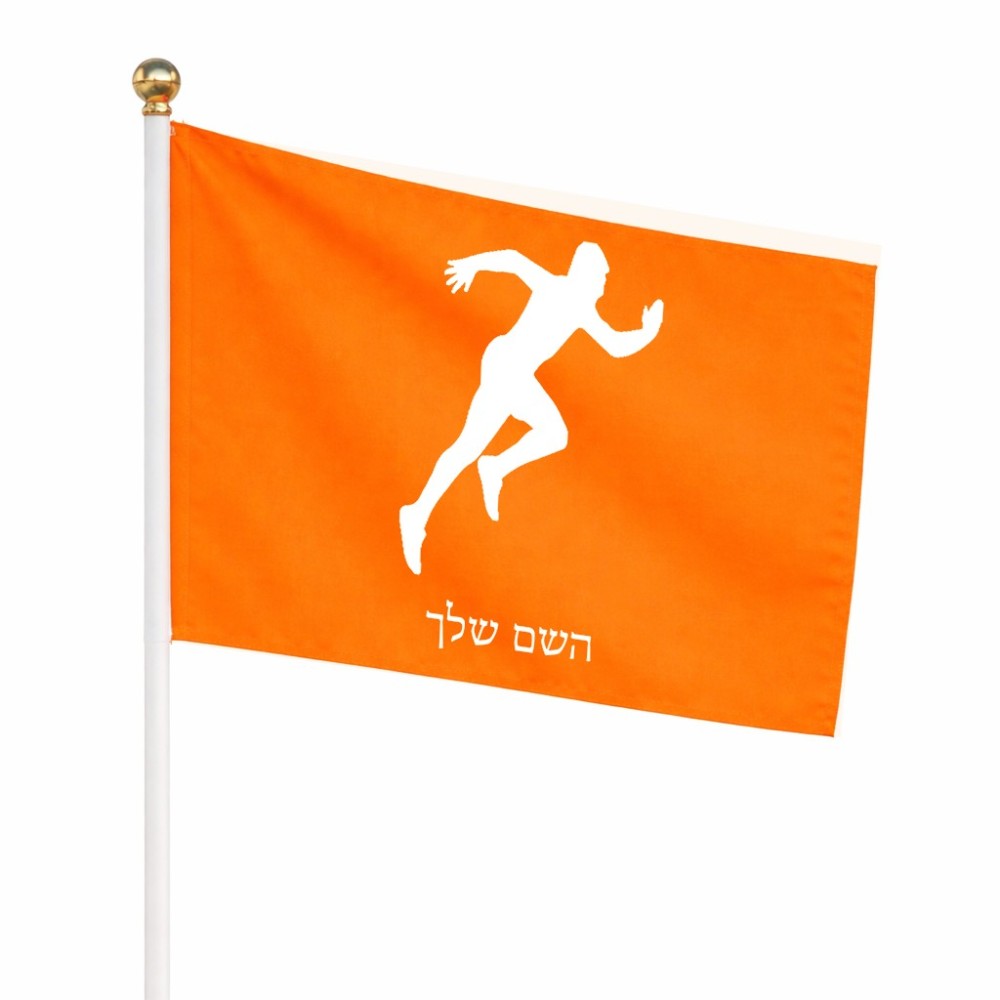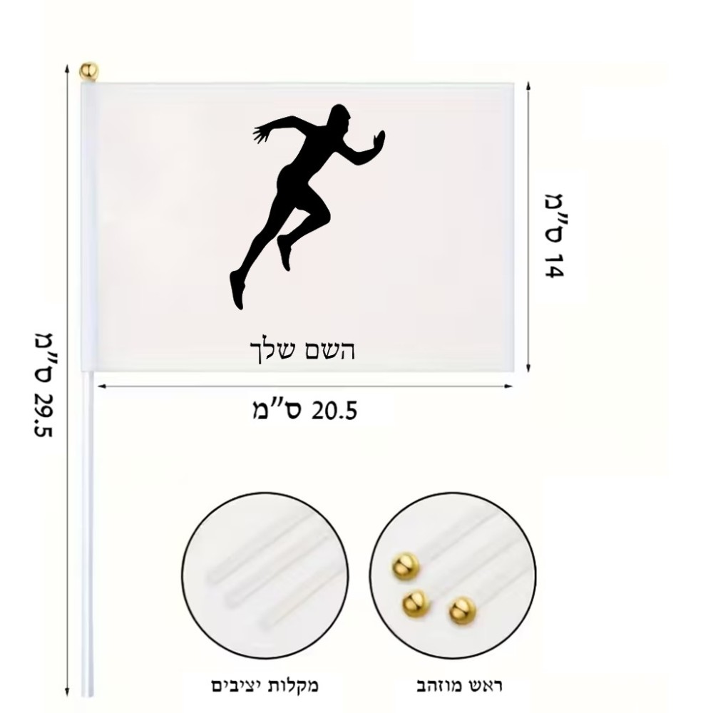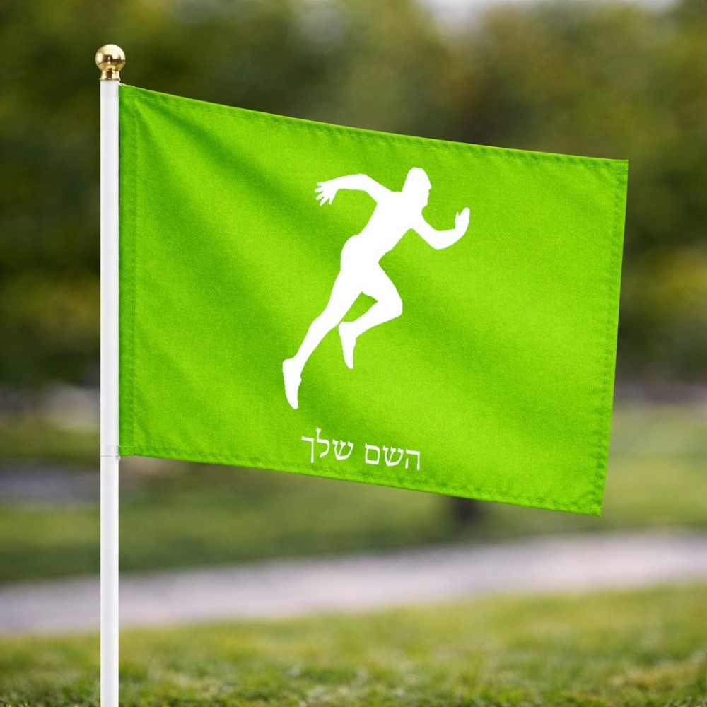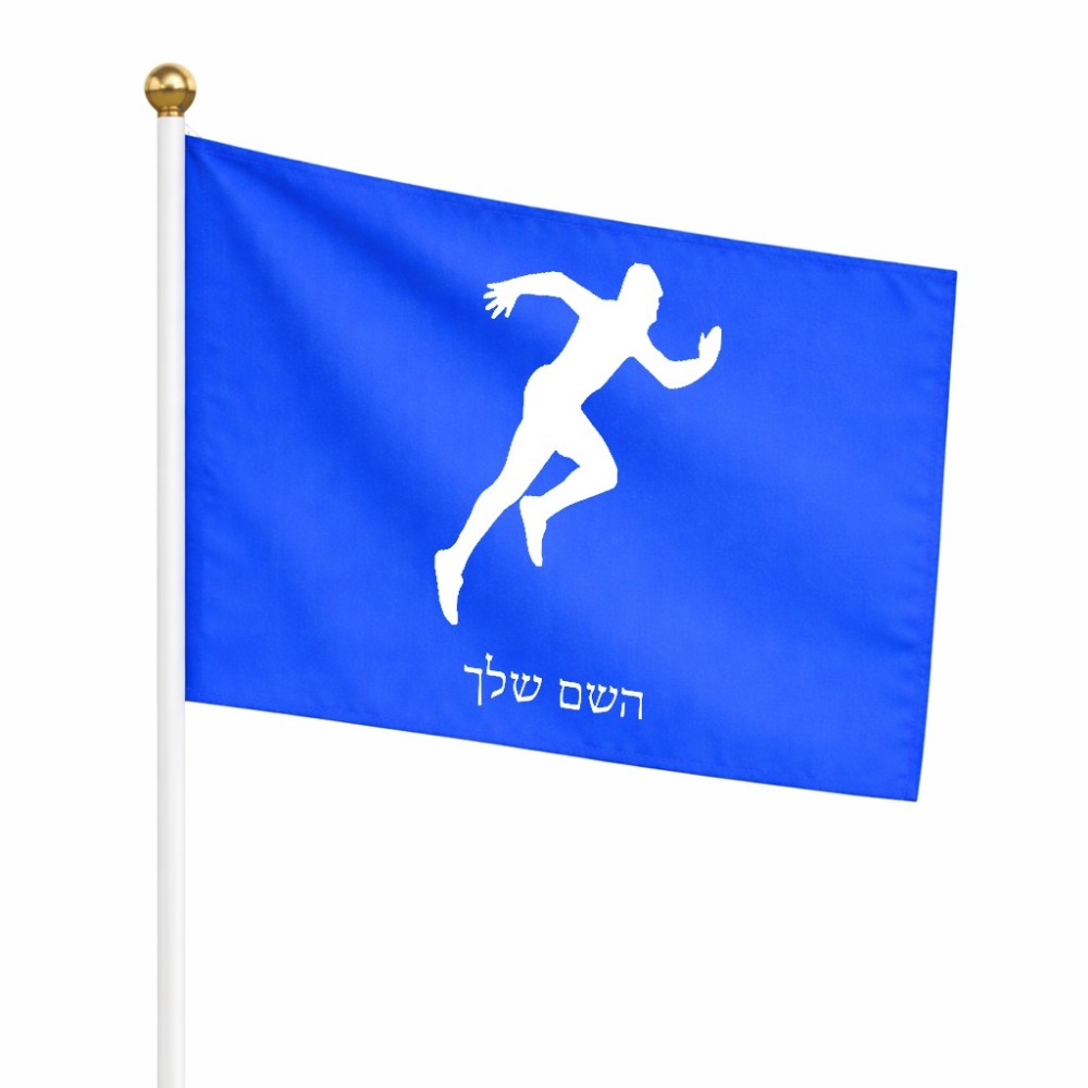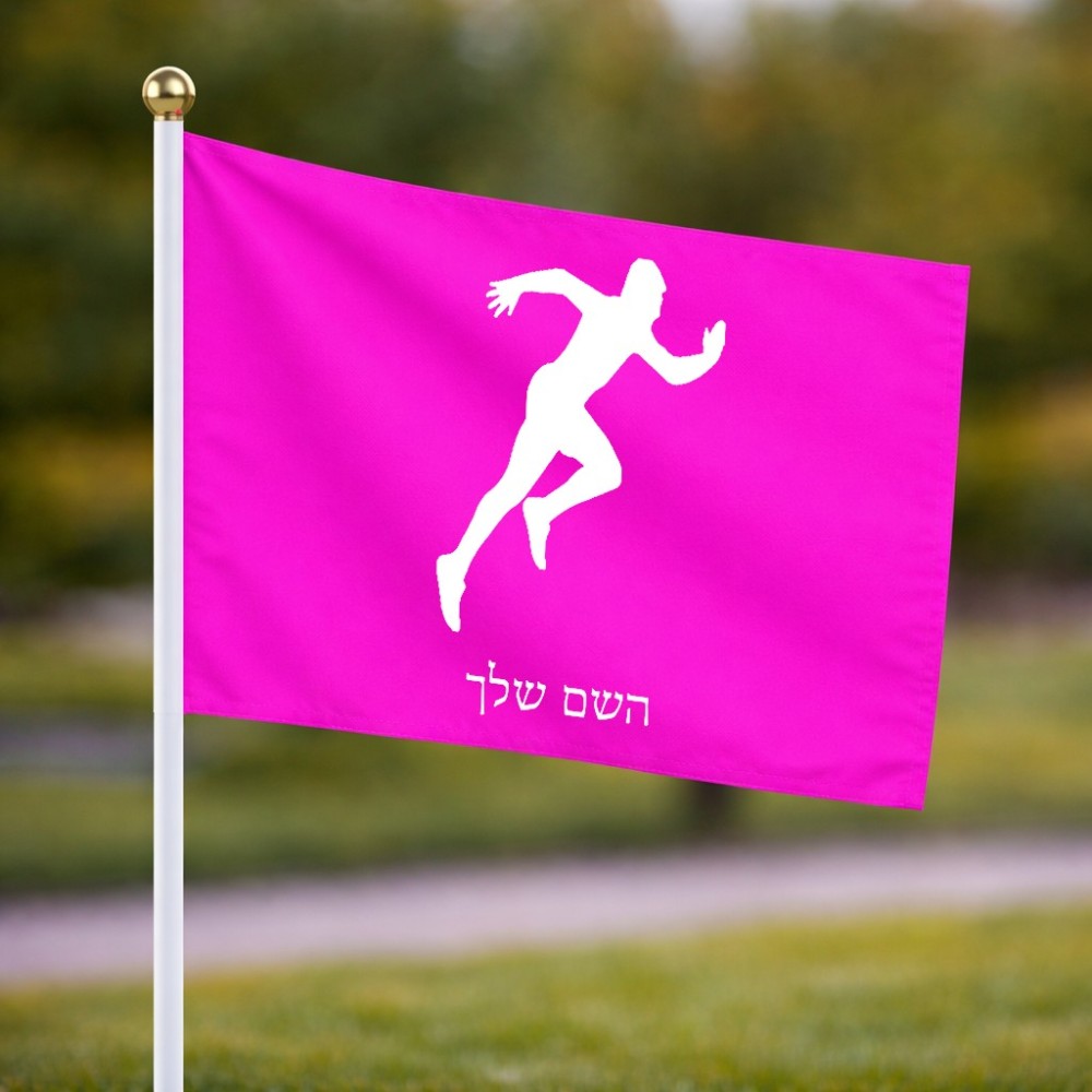 דיגלון בעיצוב אישי עם השם שלך בעיצוב רץ גודל הדיגלון 20.5 × 14 ס"מ, ההדפסה מתבצעת בשני צידי הדגל, את השם המבוקש ניתן לציין בהזמנה, אם לא צויין אנחנו ניצור קשר לבירור.