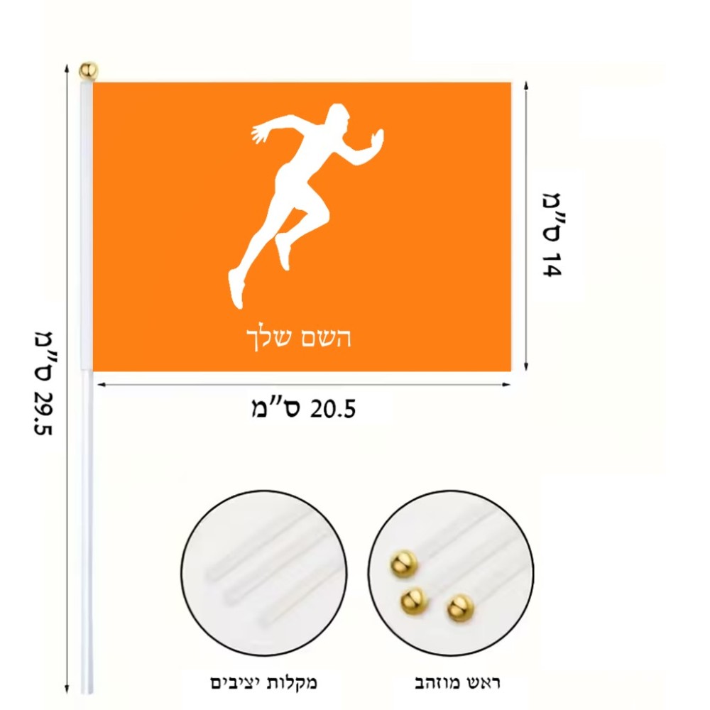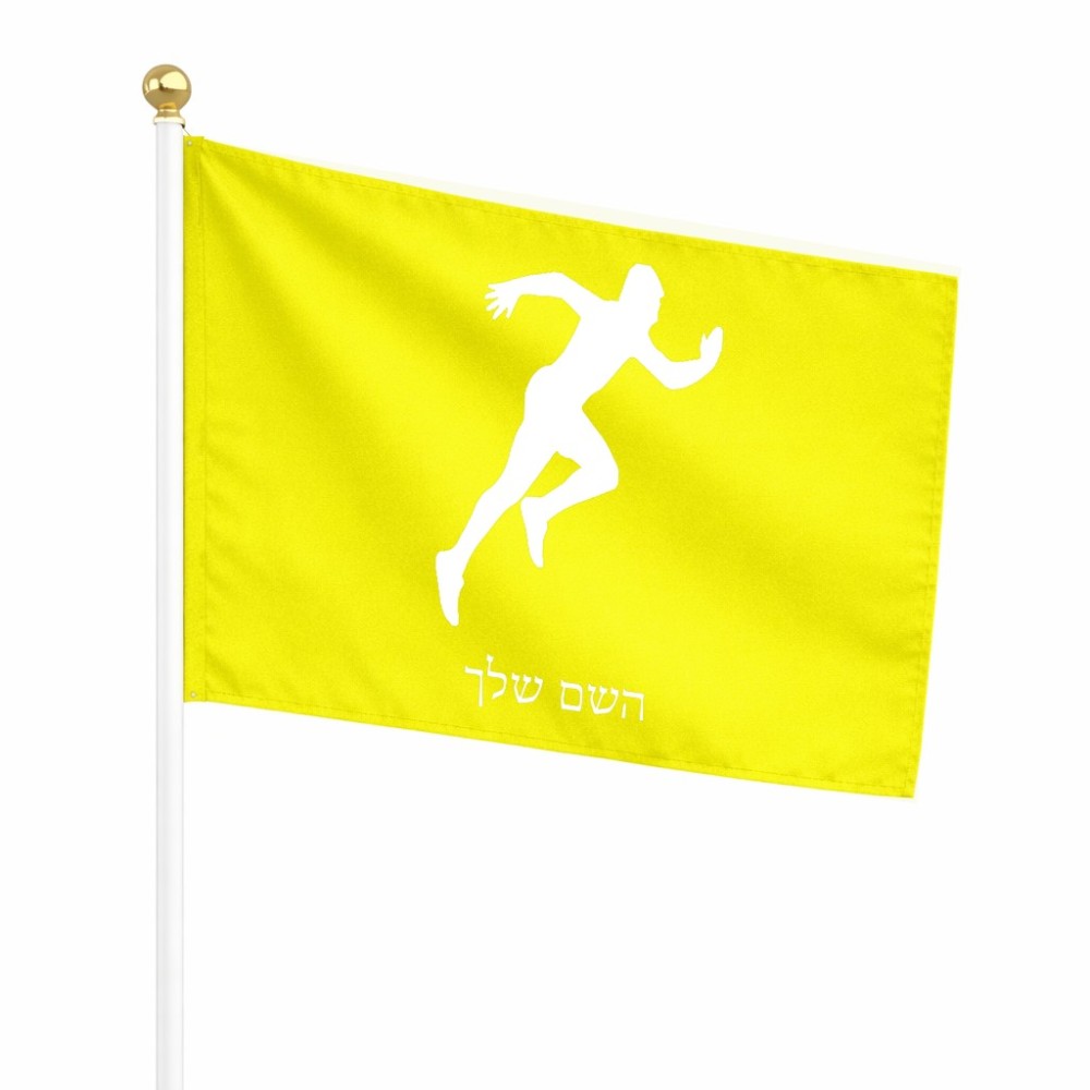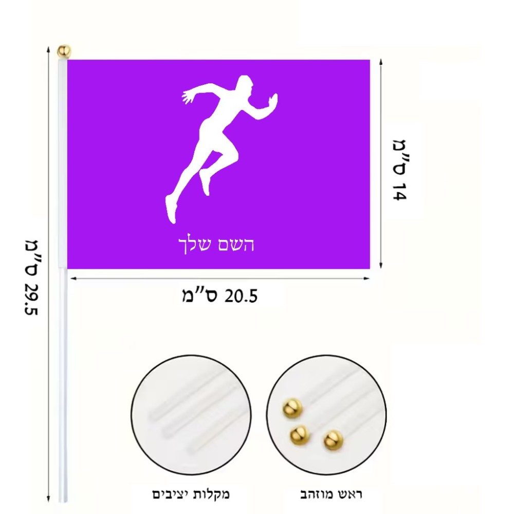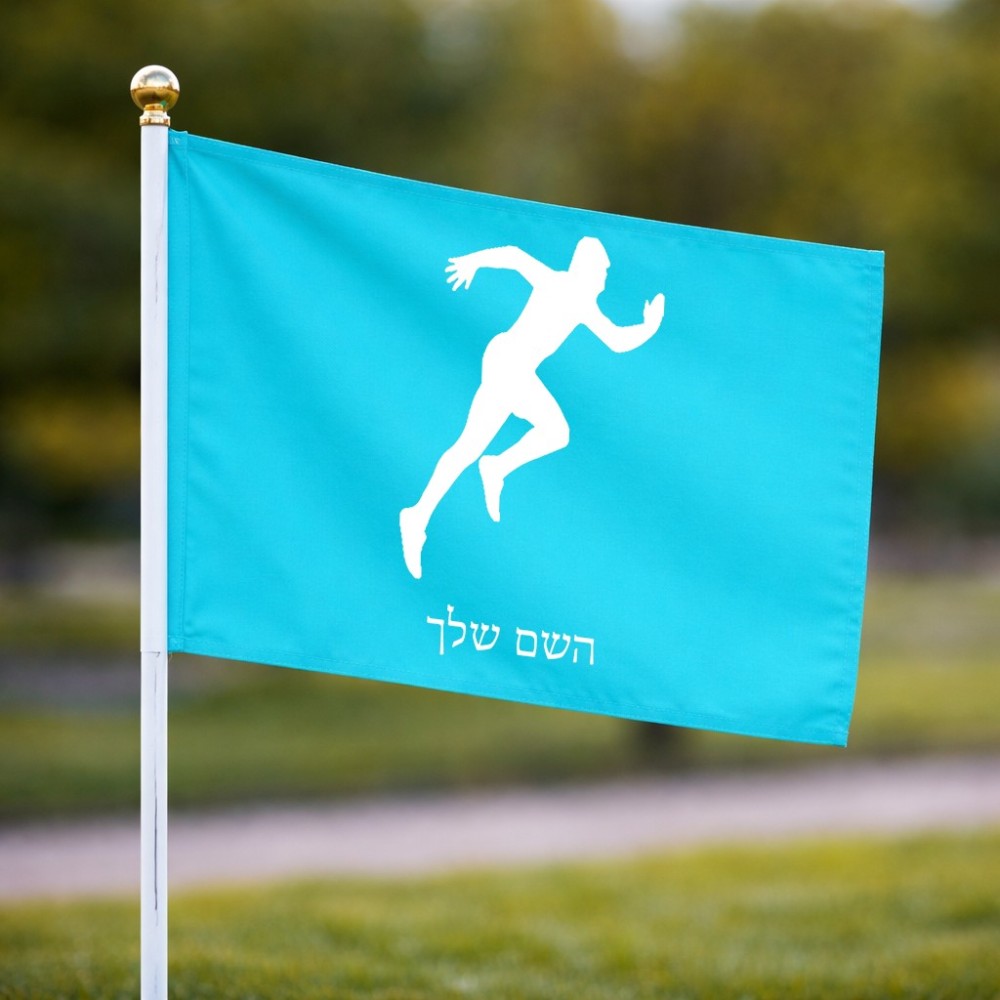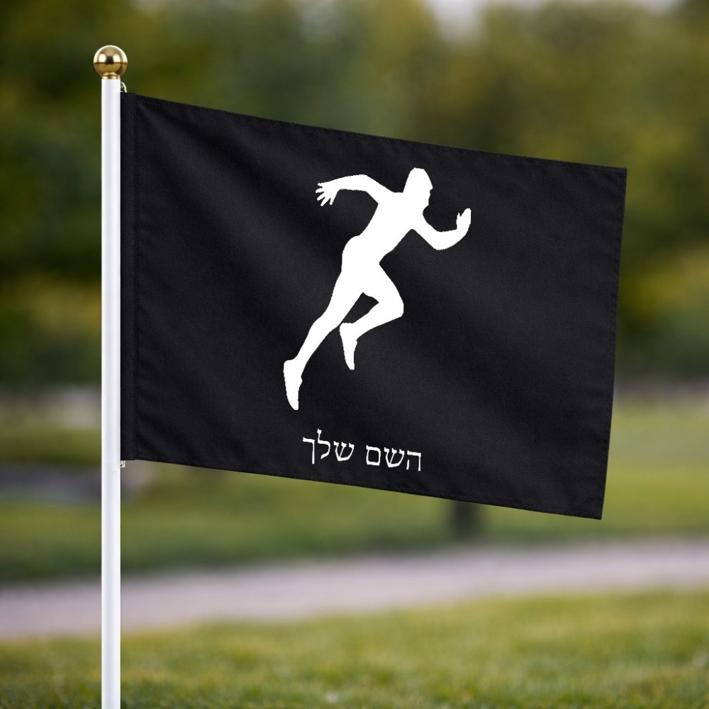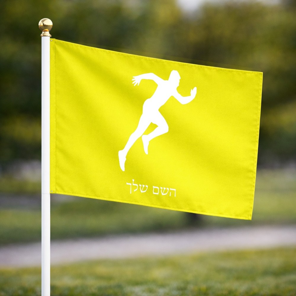 דיגלון בעיצוב אישי עם השם שלך בעיצוב רץ גודל הדיגלון 20.5 × 14 ס"מ, ההדפסה מתבצעת בשני צידי הדגל, את השם המבוקש ניתן לציין בהזמנה, אם לא צויין אנחנו ניצור קשר לבירור.